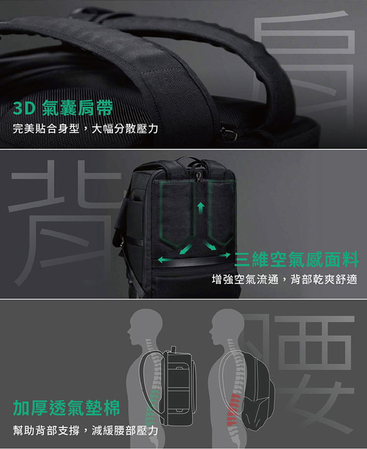 ◆ 舒適背負:加厚背墊,3D氣囊肩背帶