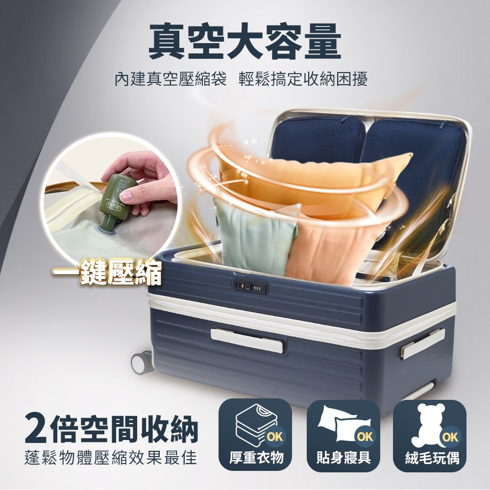【Deseno 笛森諾】特洛伊PRO 29.5吋真空壓縮|前開式煞車行李箱(特仕版_泰晤士藍_不含真空壓縮機)
