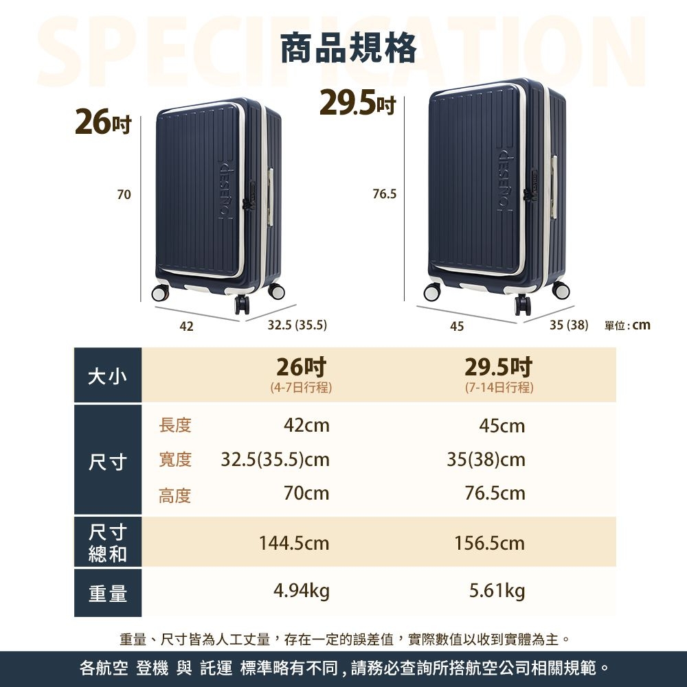 【Deseno 笛森諾】特洛伊PRO 26吋真空壓縮|前開式煞車行李箱(特仕版_泰晤士藍_不含真空壓縮機)