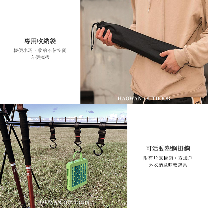 • 可滑動掛鉤 - 簡易安裝和拆卸,可置掛一些戶外用品