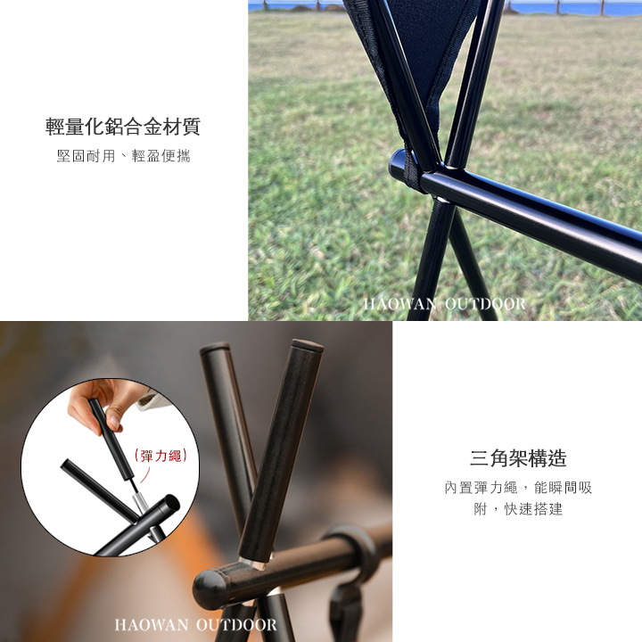 • 快速搭建 - 三腳架結構,內置彈力繩,能瞬間吸附,快速搭建