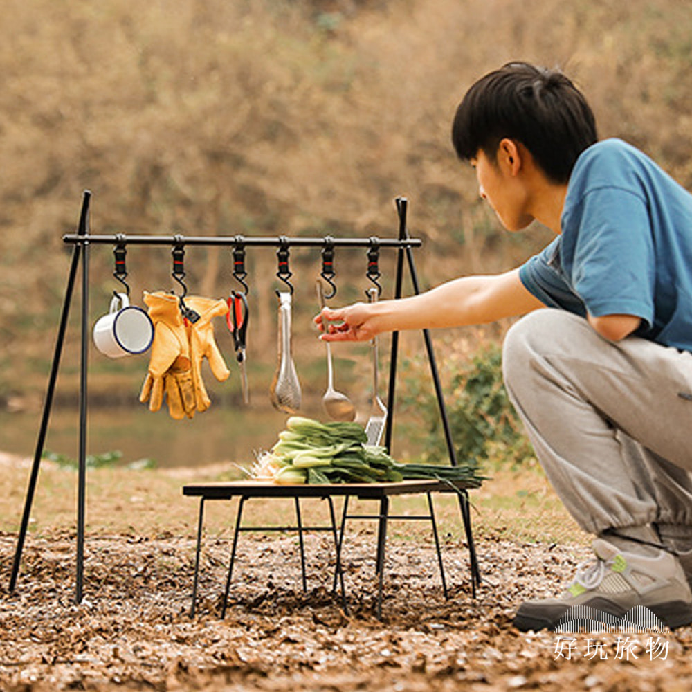 單層_鋁合金戶外露營折疊收納三角置物露營架 (附掛勾)