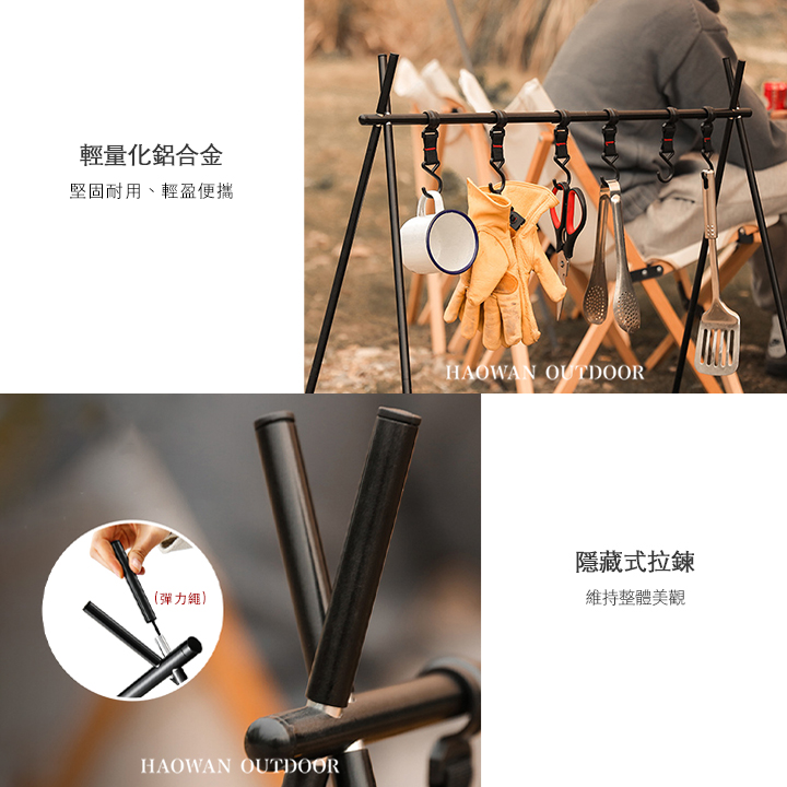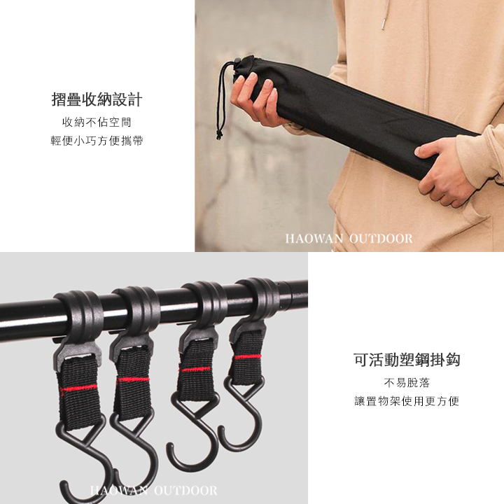 • 可滑動掛鉤 - 簡易安裝和拆卸,可置掛一些戶外用品