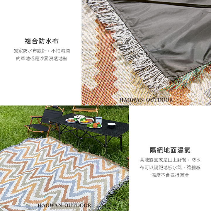• 複合防水布-獨家防水布設計,不怕濕潤的草地或是沙灘浸透地墊