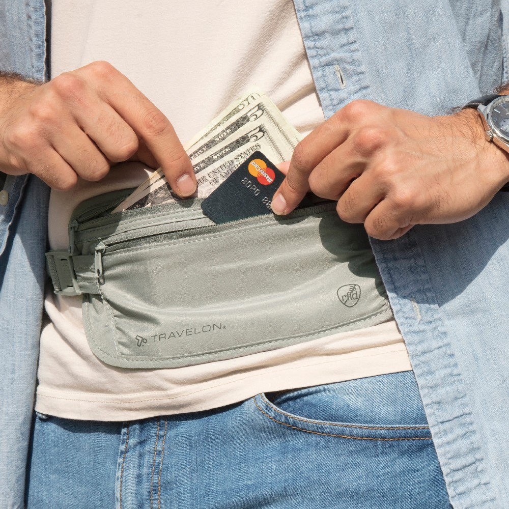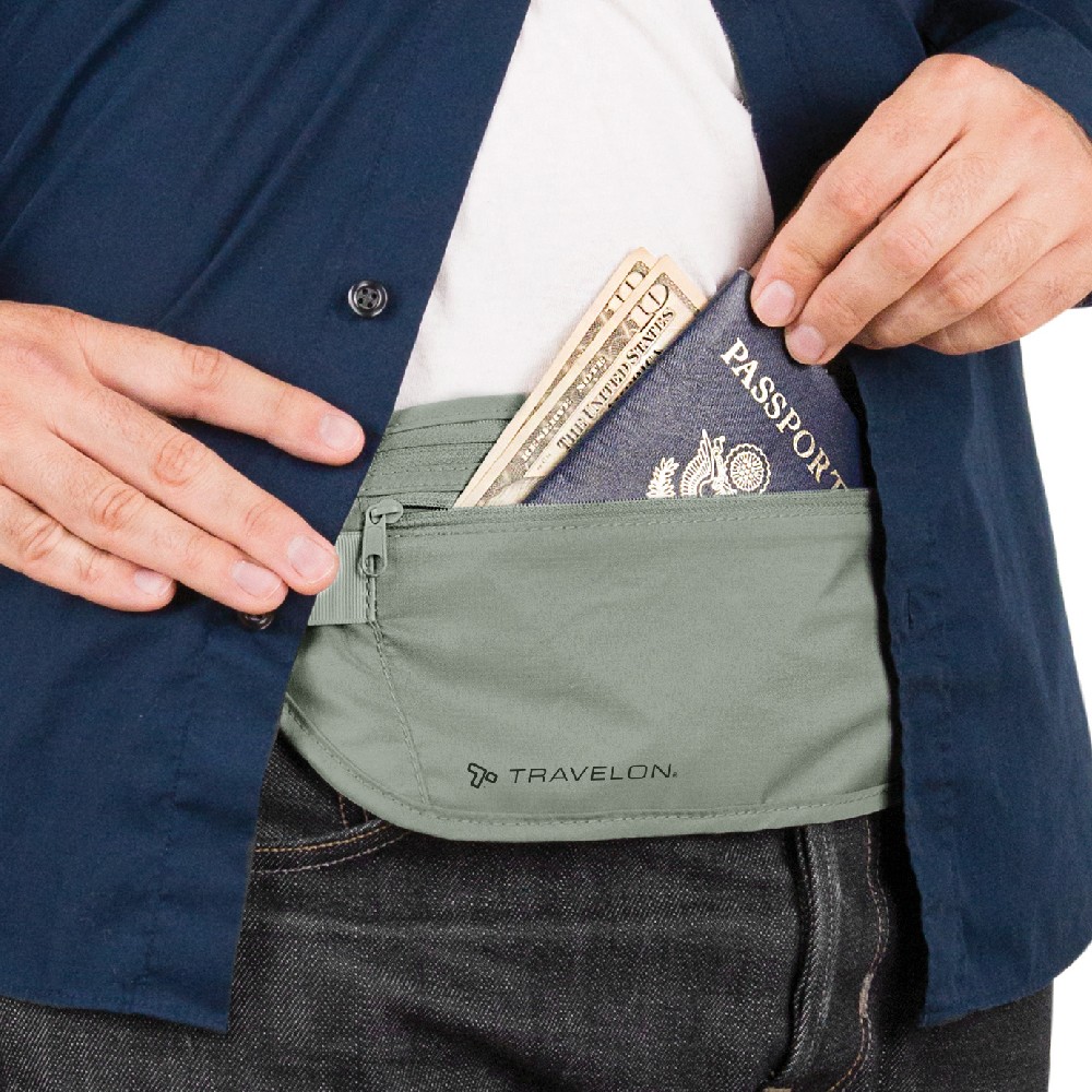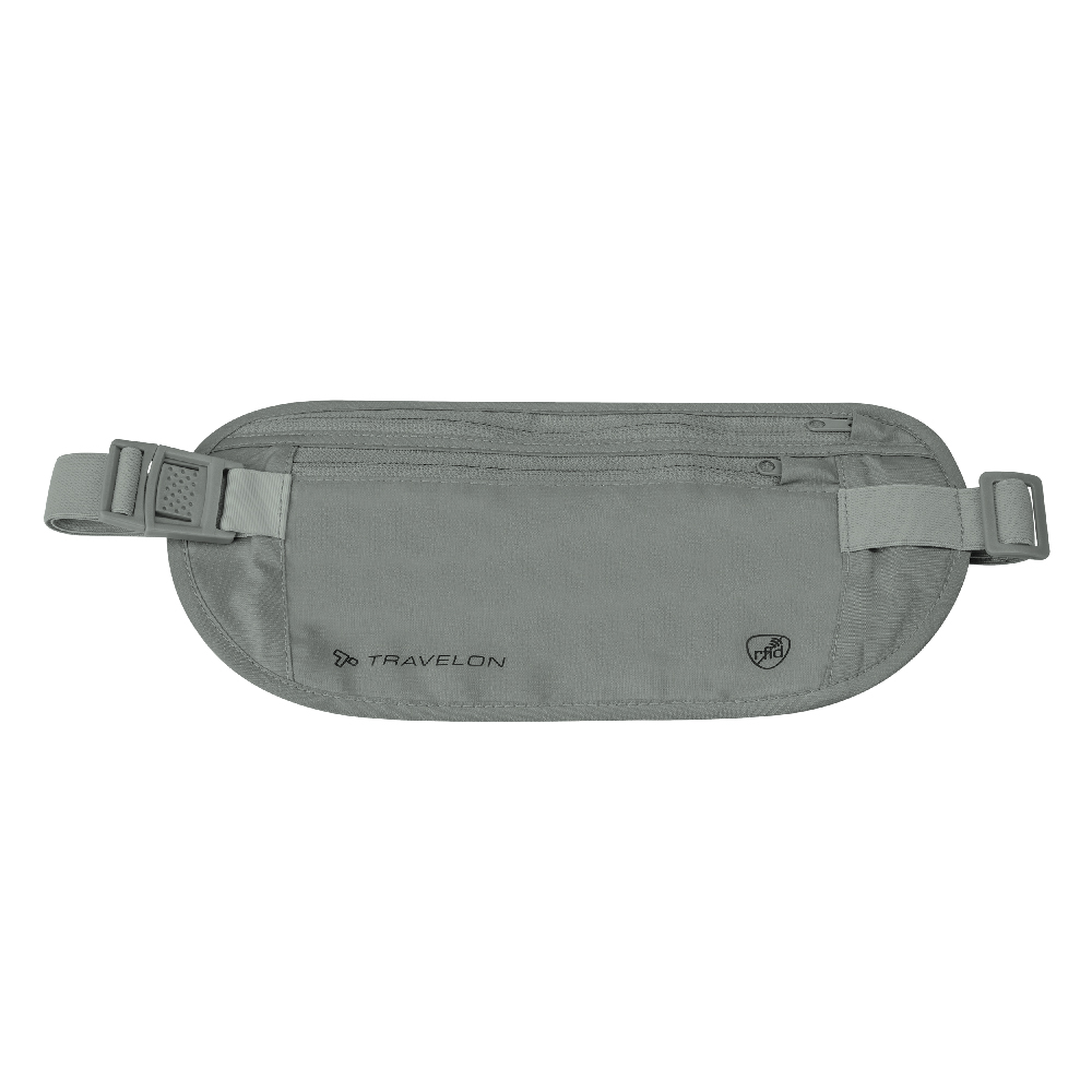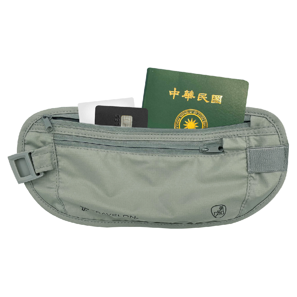 美國 TRAVELON - 雙層防盜貼身腰包(灰) / RFID 防盜包 隨身包 貼身包 隱形包 防搶包