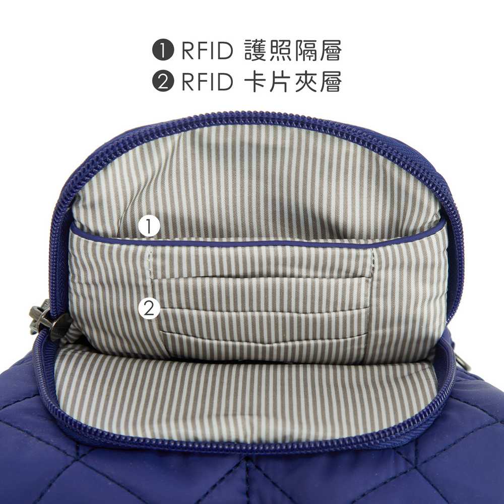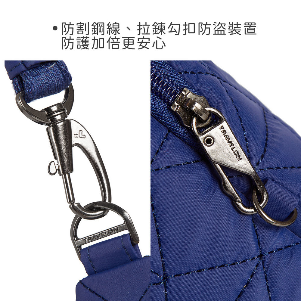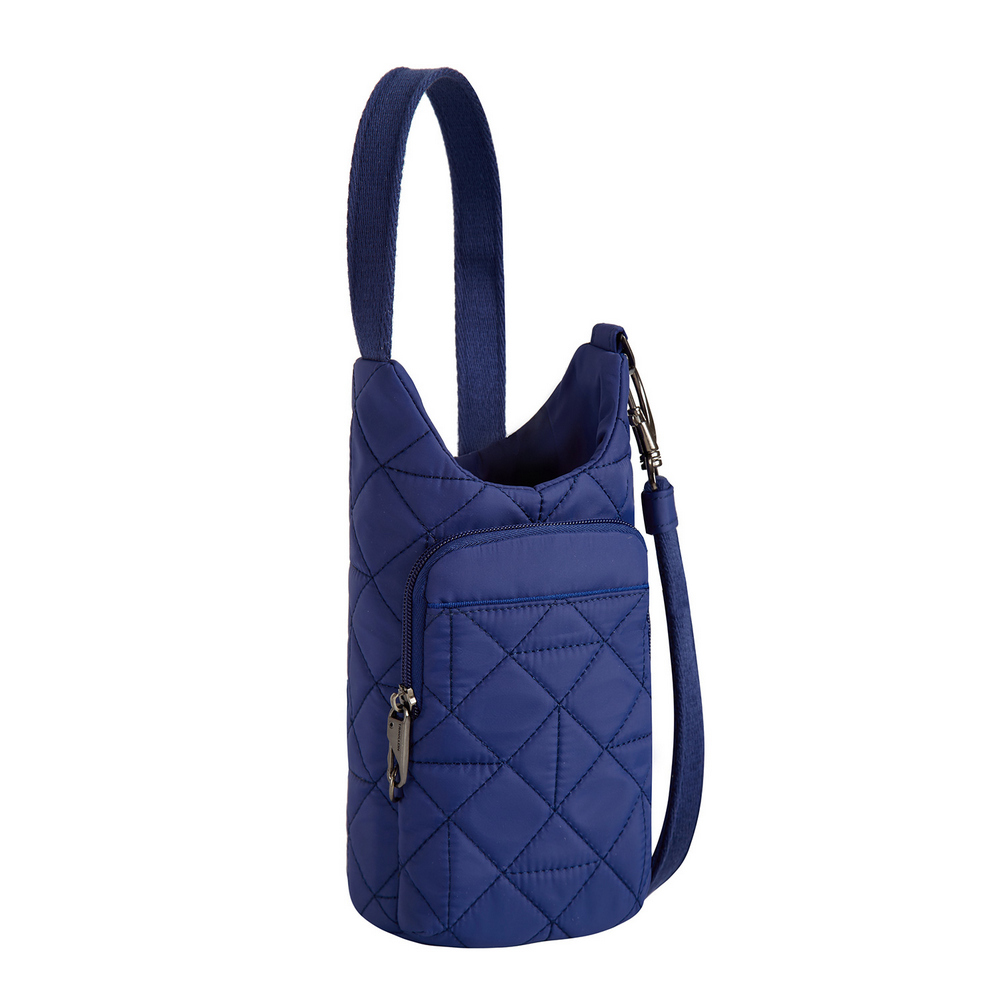 美國 TRAVELON - Boho多功能防盜水壺袋(格紋藍) / 水瓶包 水壺包 旅行飲料袋