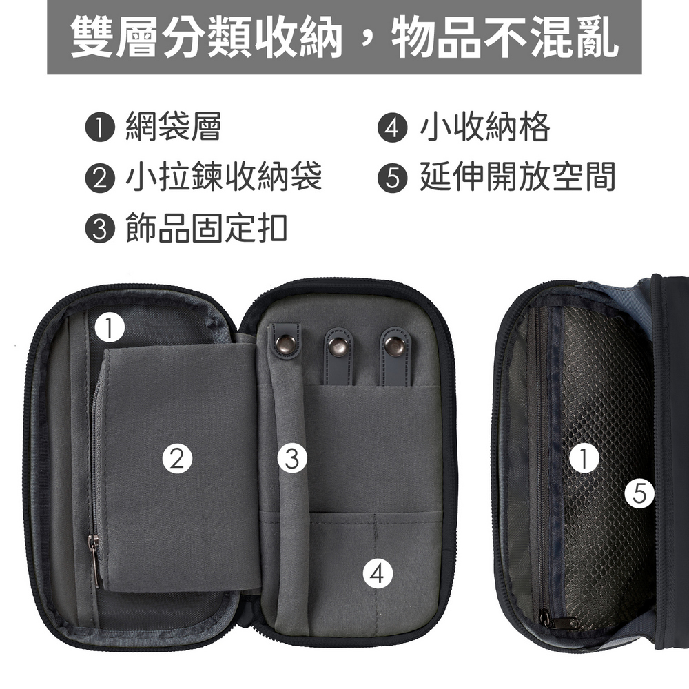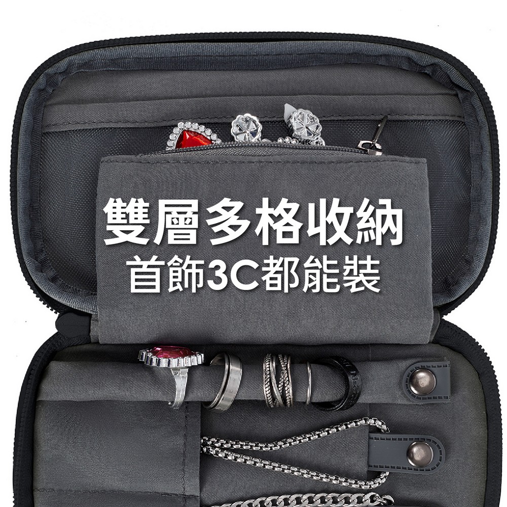 美國 TRAVELON - 雙層3C配件收納包(深墨黑) / 線材收納包 隨身收納包 旅遊包