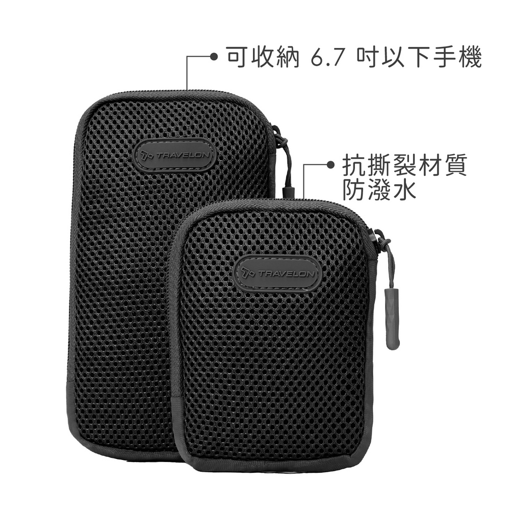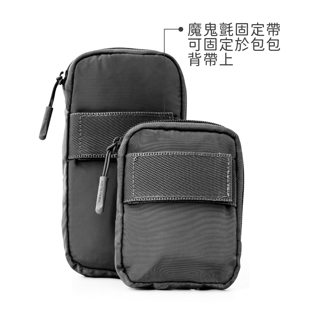 美國 TRAVELON - Pi輕便收納背帶包2件(質感黑) / MOLLE小包 手機包 魔鬼氈收納小包