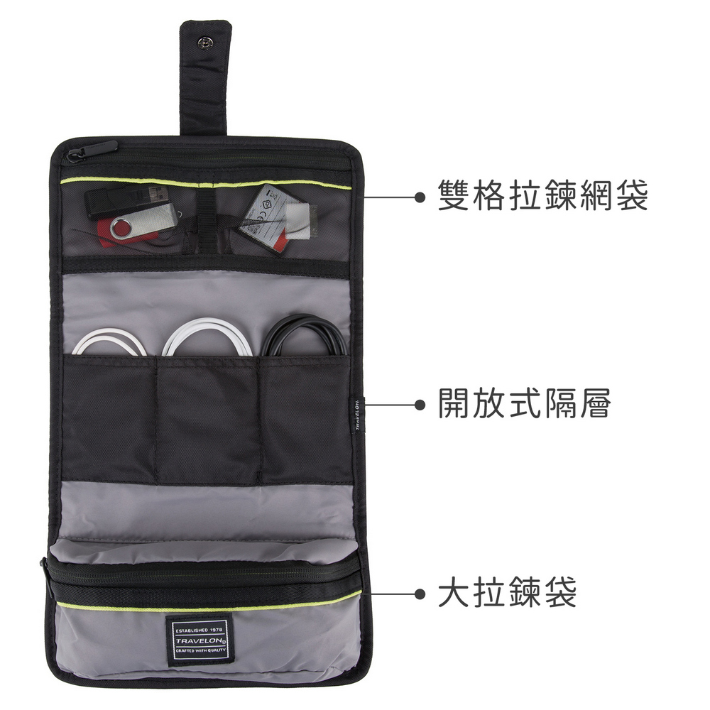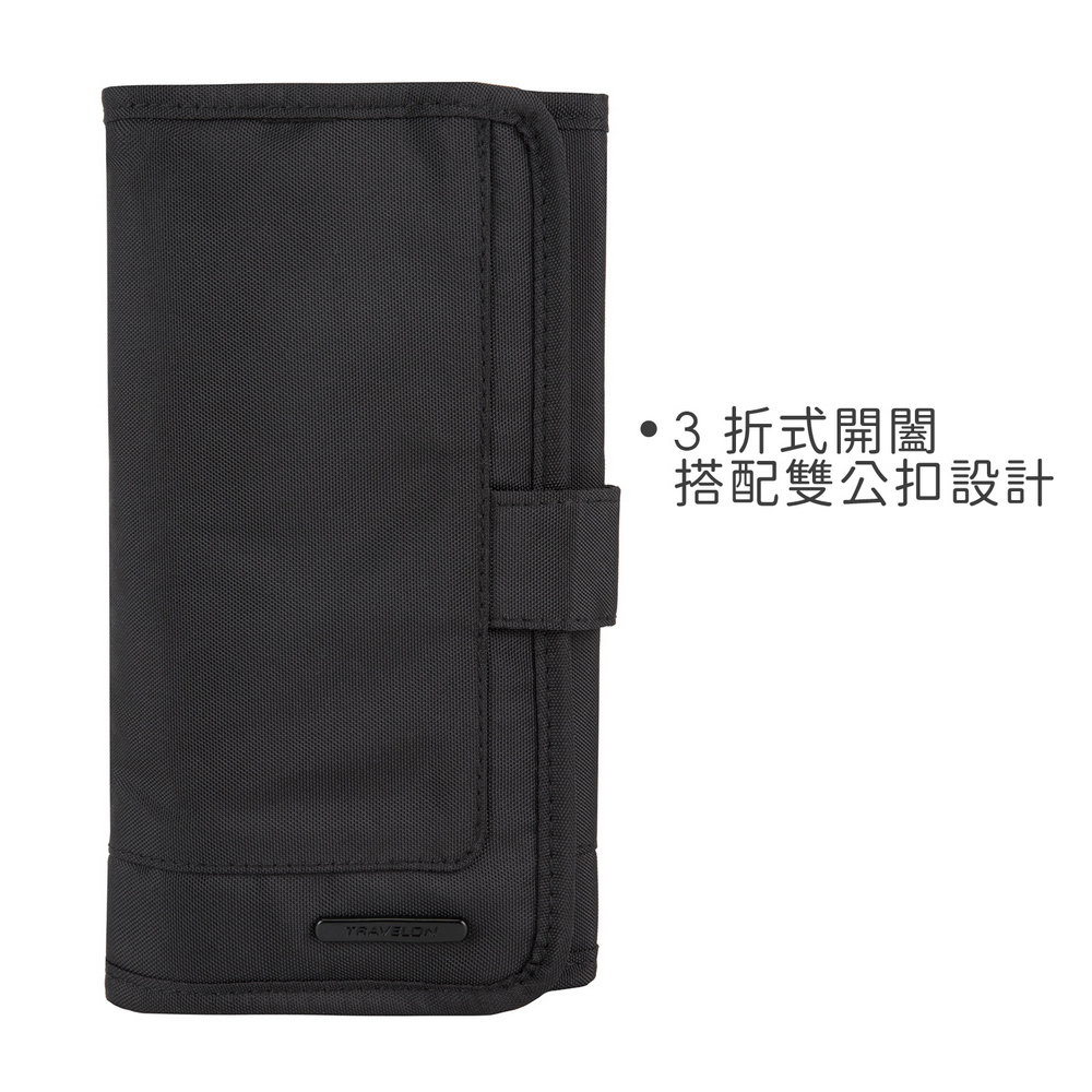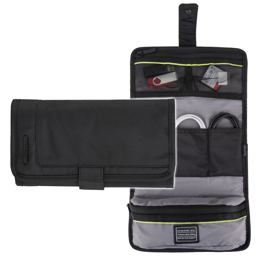美國 TRAVELON - Deluxe 3折3C收納包(石墨黑) / 充電器 行動電源 首飾收納袋