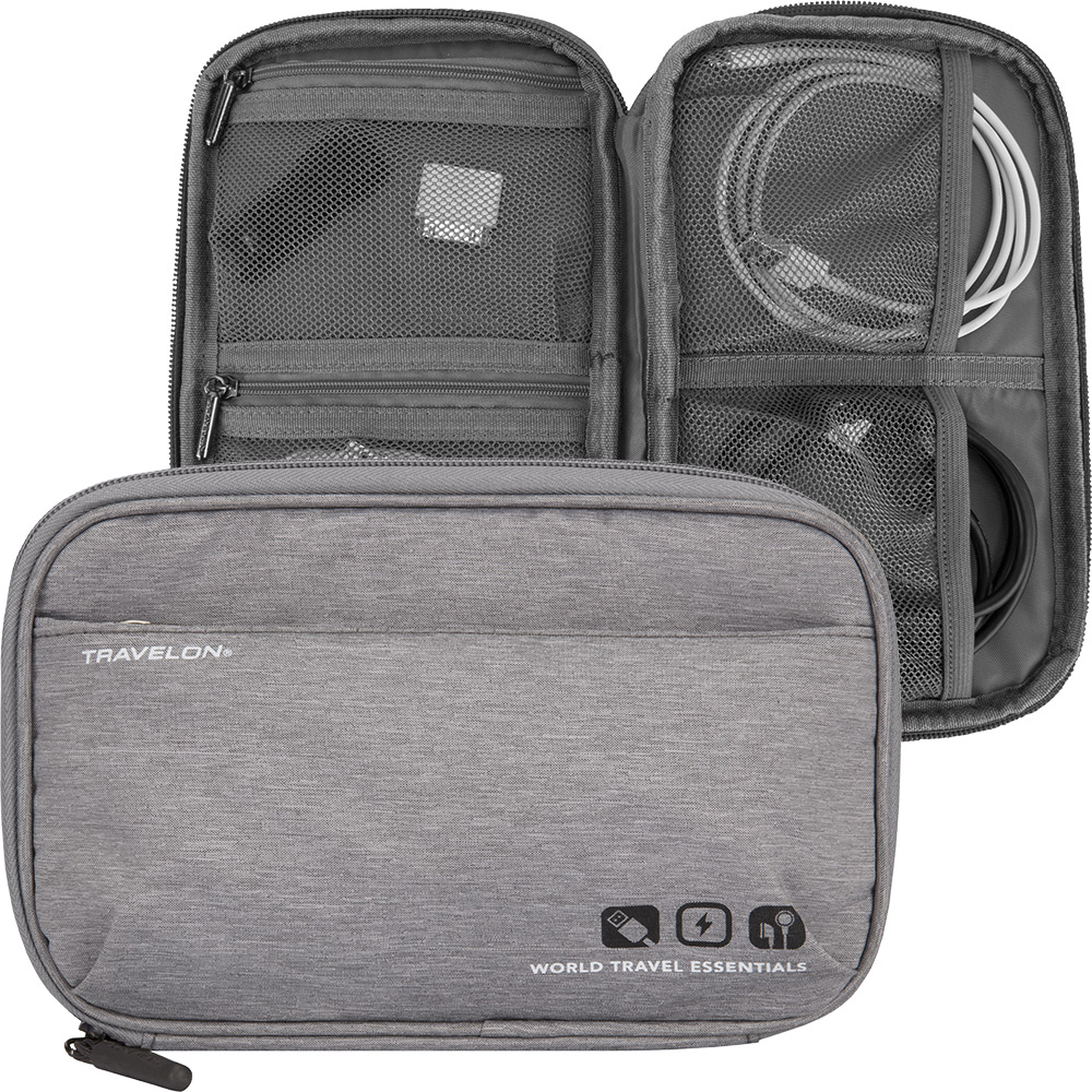 美國 TRAVELON - 3C線材收納包(灰) / 旅遊 電子用品 零錢小物 收納袋