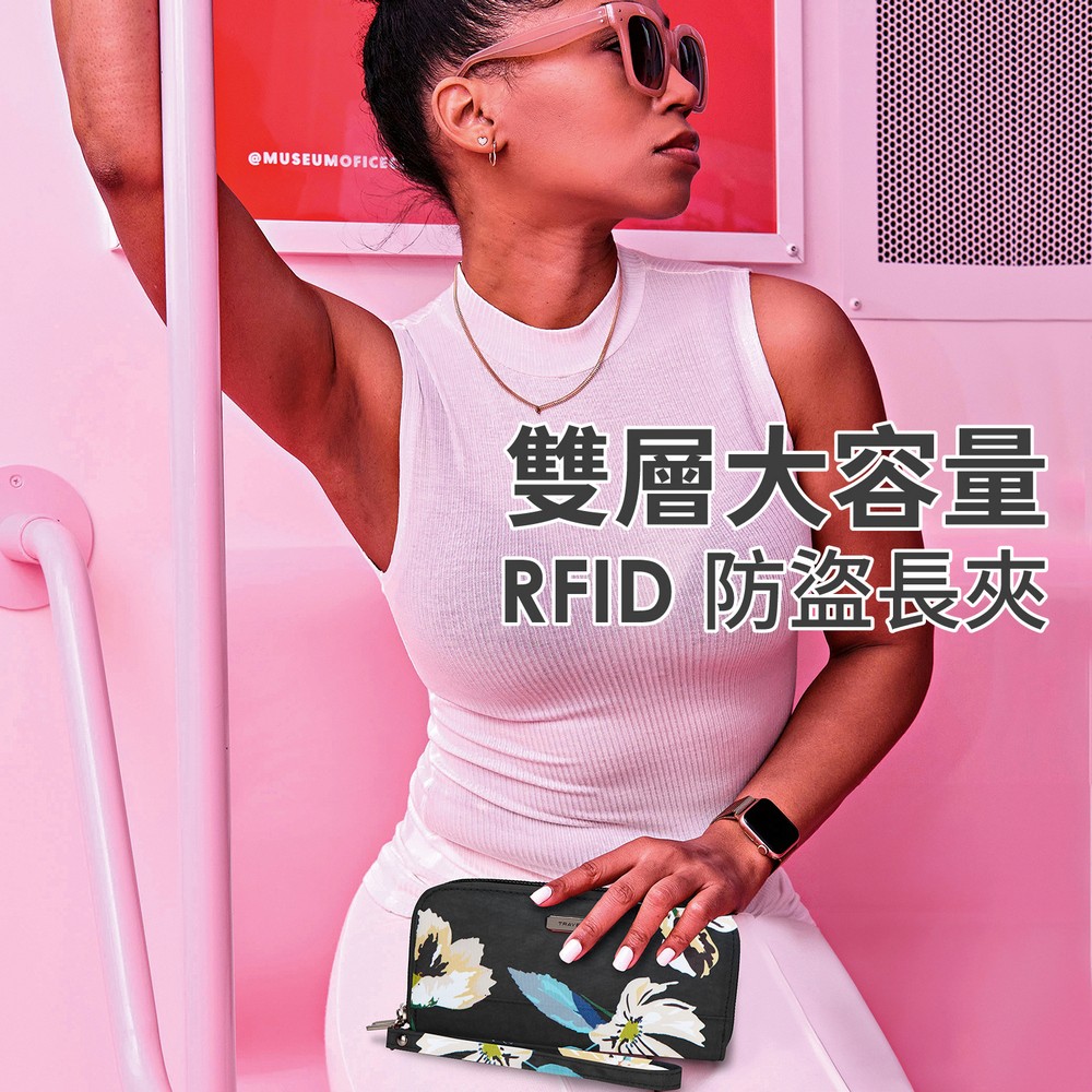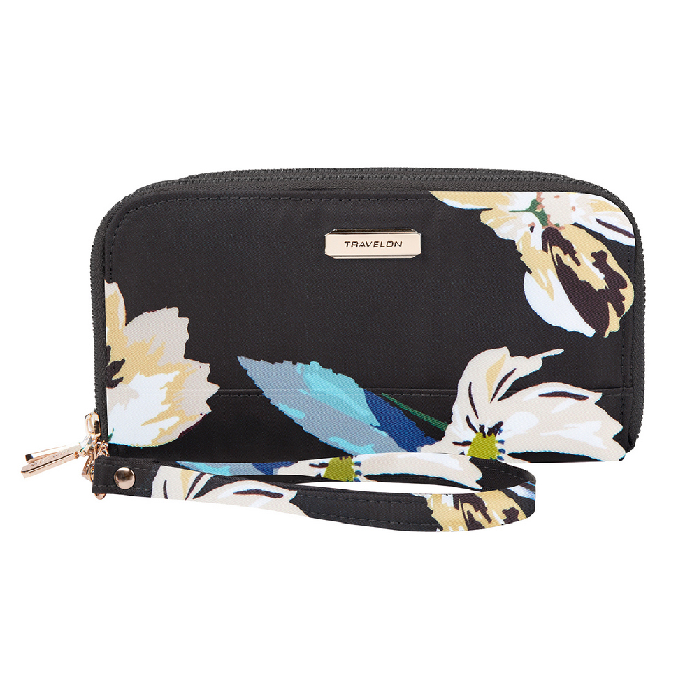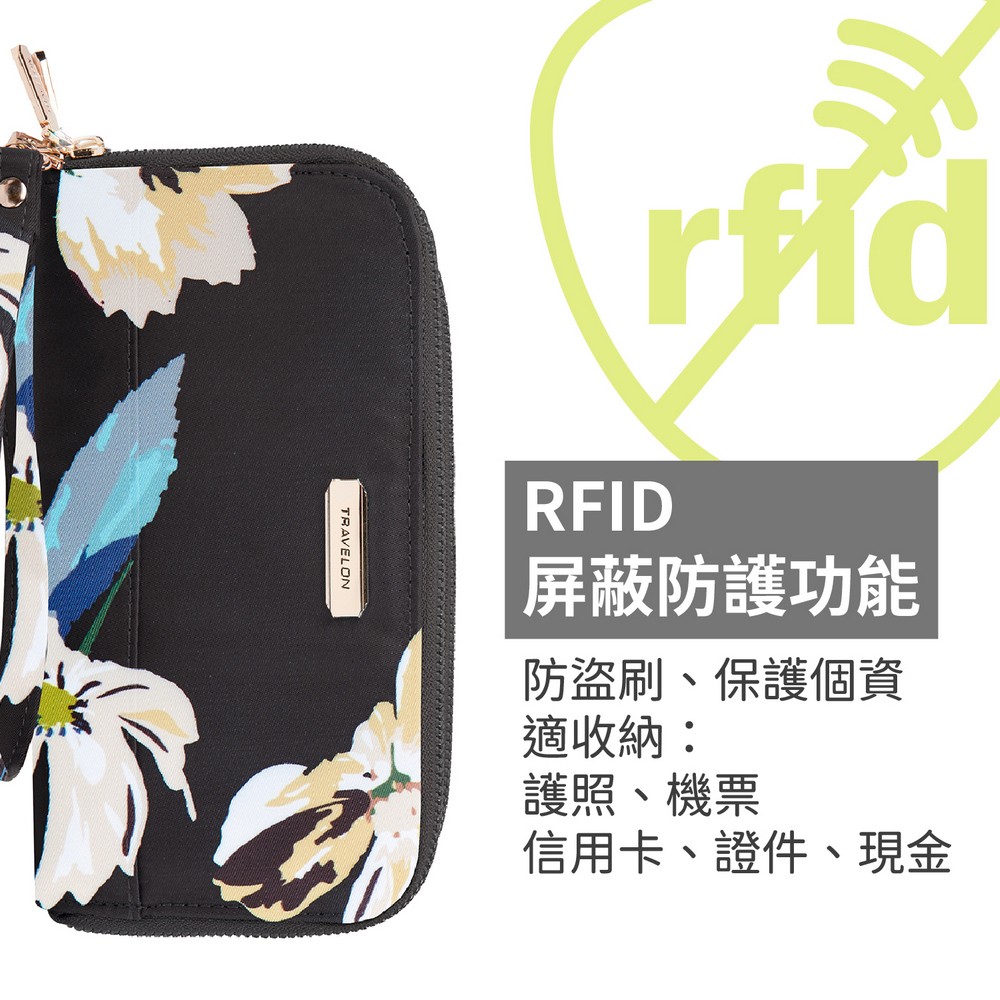 美國 TRAVELON - 雙層拉鍊防盜長夾(花卉) / RFID防盜包 手拿包