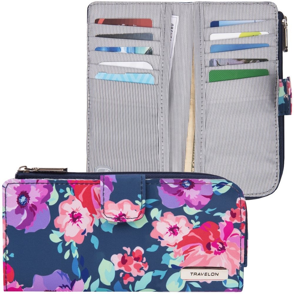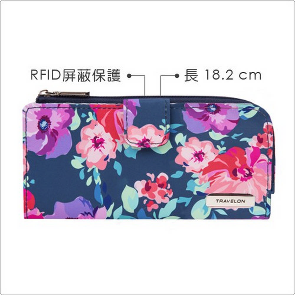 美國 TRAVELON - 卡片拉鍊長夾(花卉) / 手拿包 手拿錢包 手機包 皮包