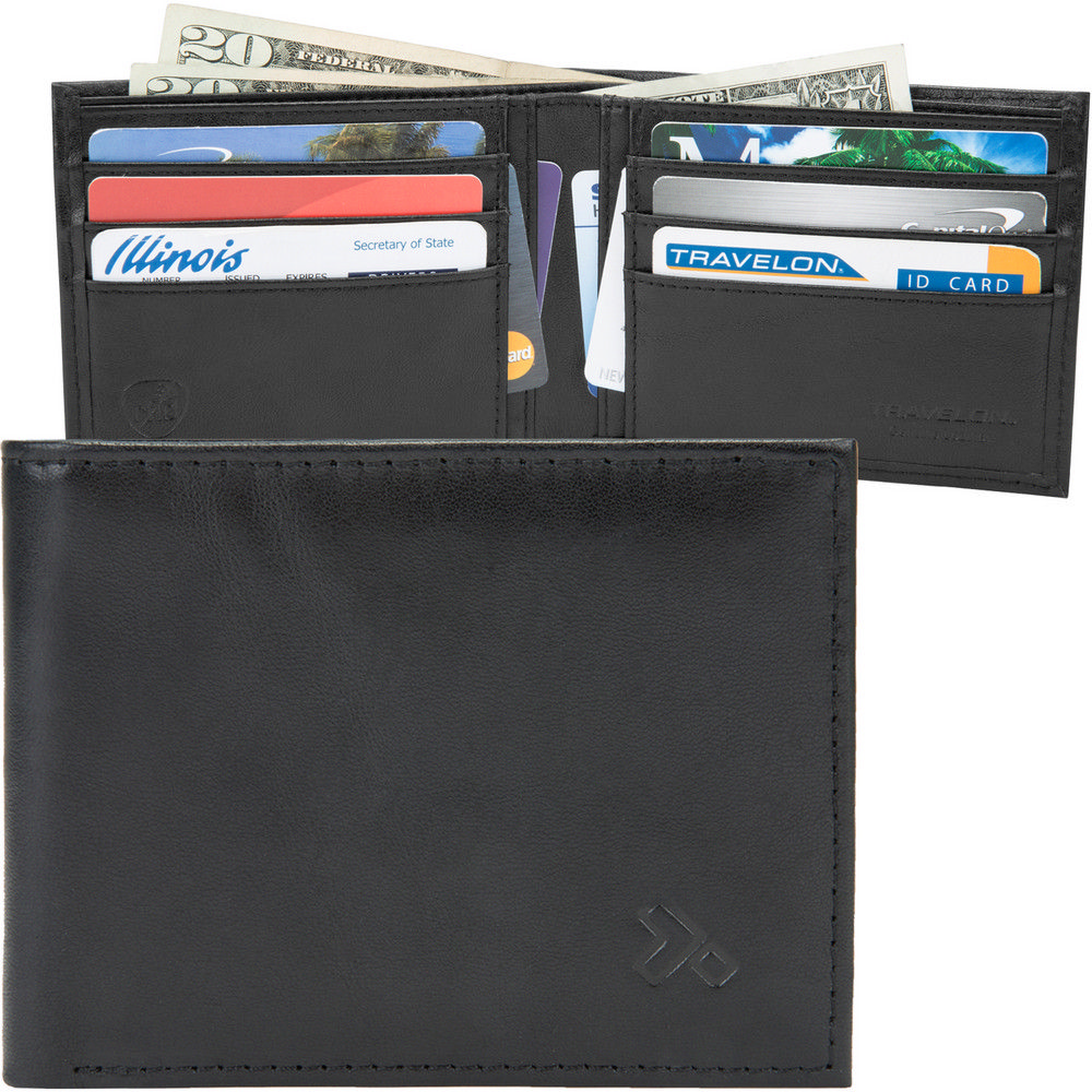 美國 TRAVELON - RFID真皮雙鈔票層短夾(黑) / 中夾錢包 短夾錢包 皮包 零錢包