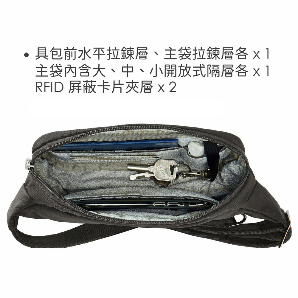美國 TRAVELON - 雙層防盜腰包(灰) / 隨身包 貼身包