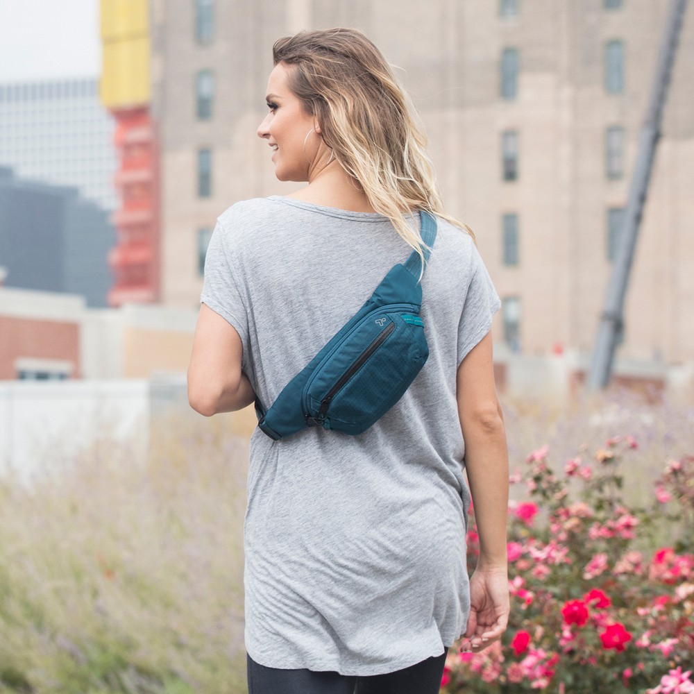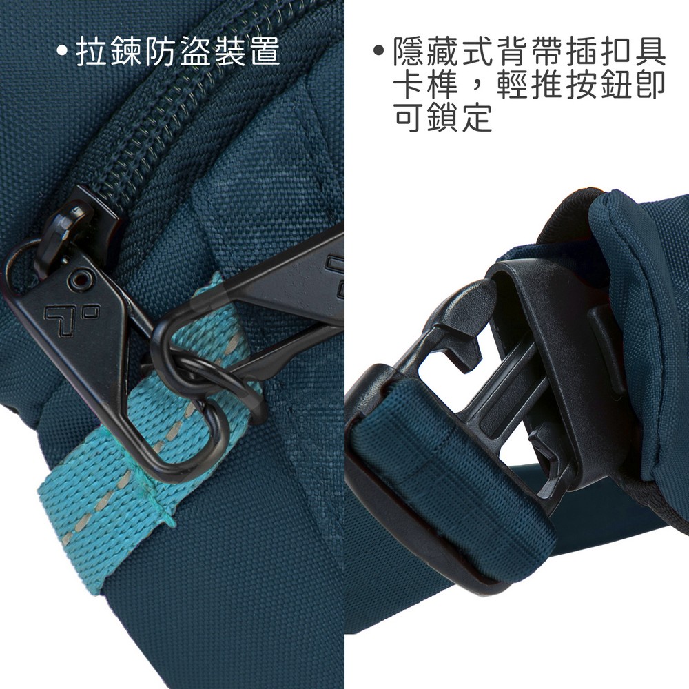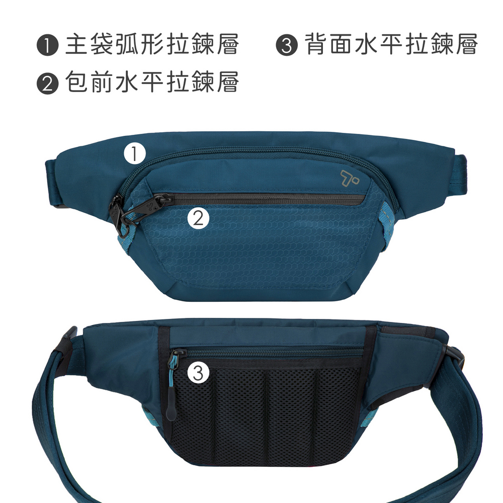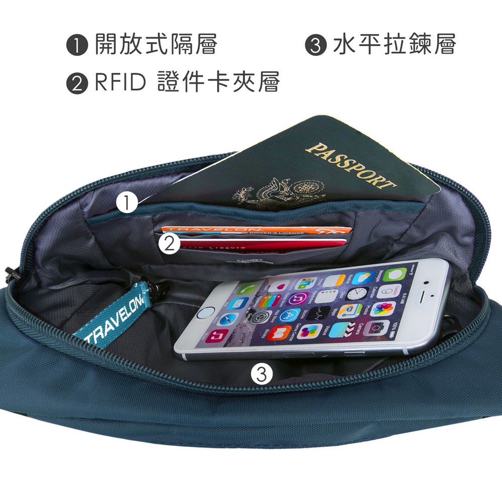 美國 TRAVELON - Active三層防盜腰包(藍) / 隨身包 貼身包