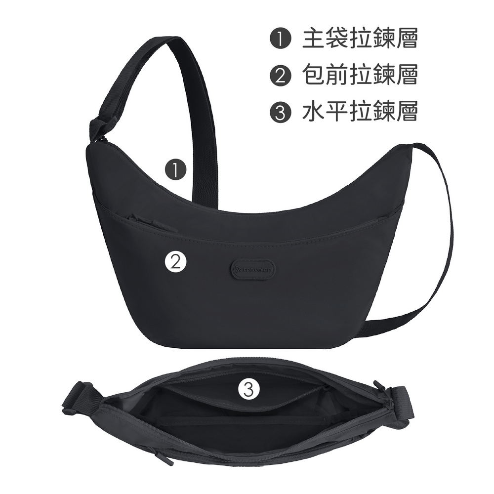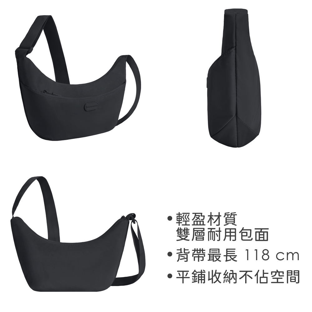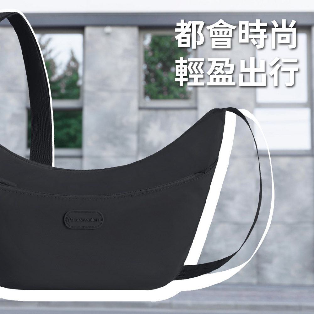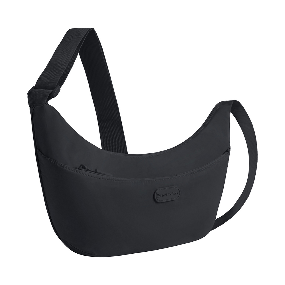 美國 TRAVELON - 輕便雙層斜背彎月包(深墨黑) / 側背包 肩背包