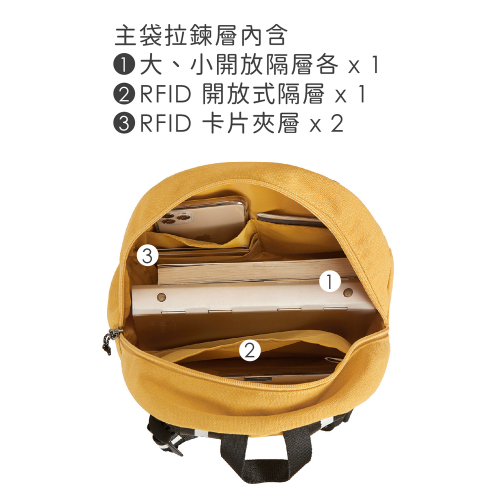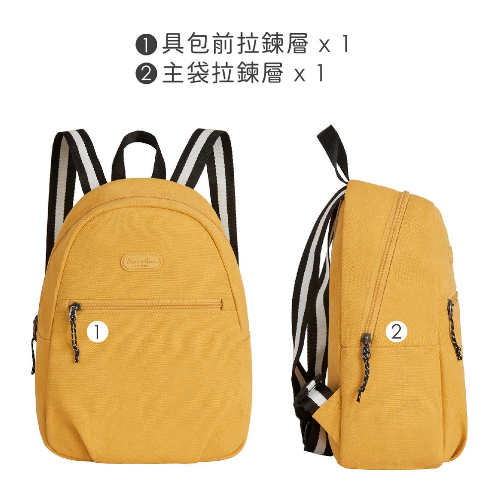美國 TRAVELON - Coastal帆布雙層後背包(芥末黃S) / 雙肩包 學生包 旅行包