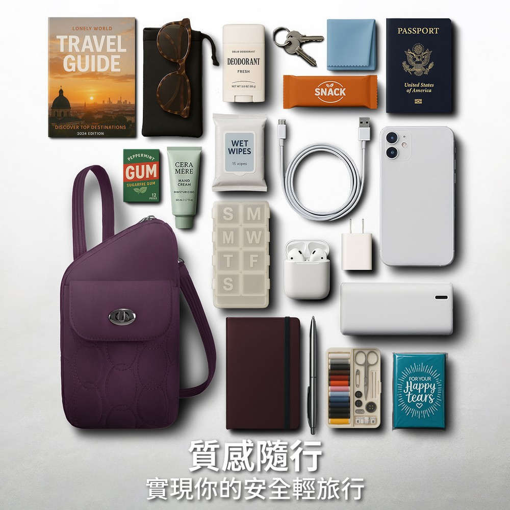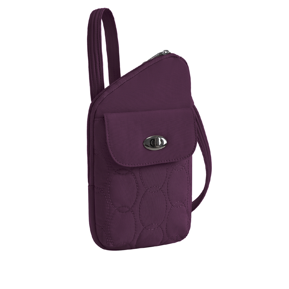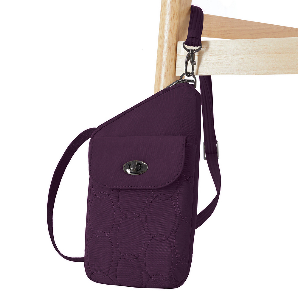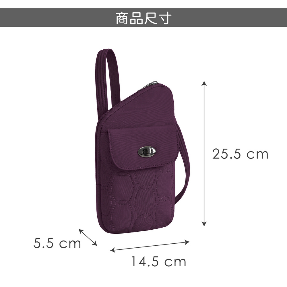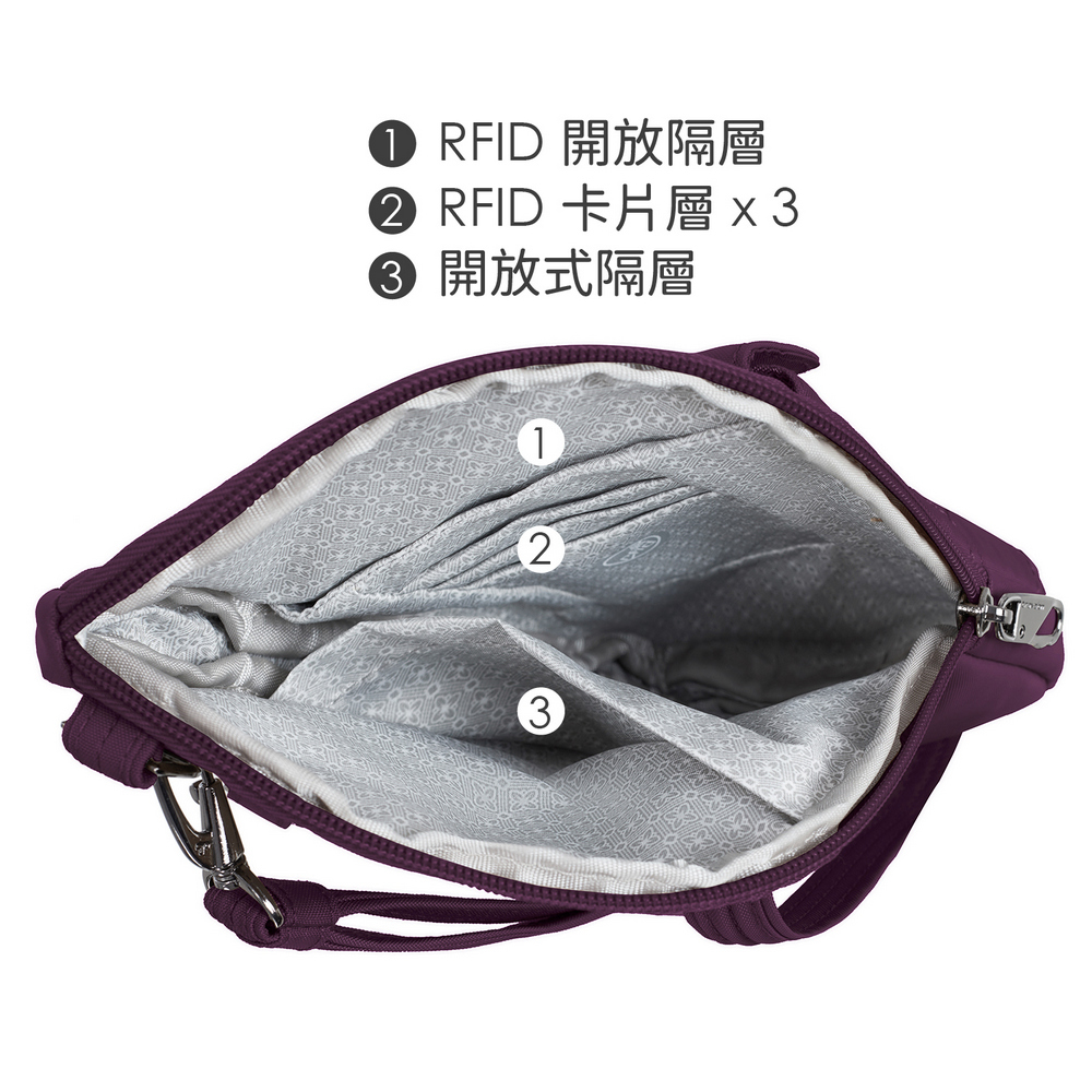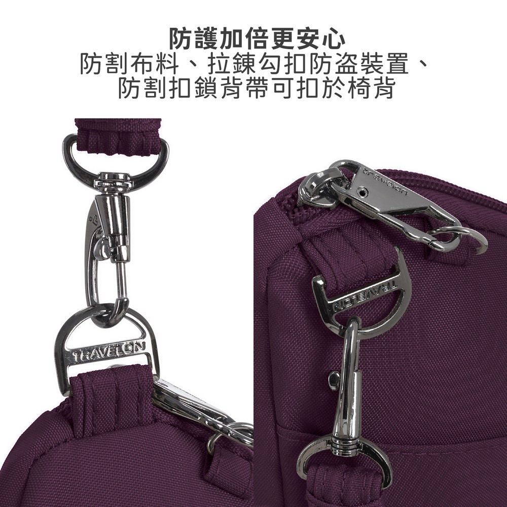 美國 TRAVELON - Runways 3層直式防盜斜背包(黑莓紫) / RFID防盜包 斜背包 防割防搶