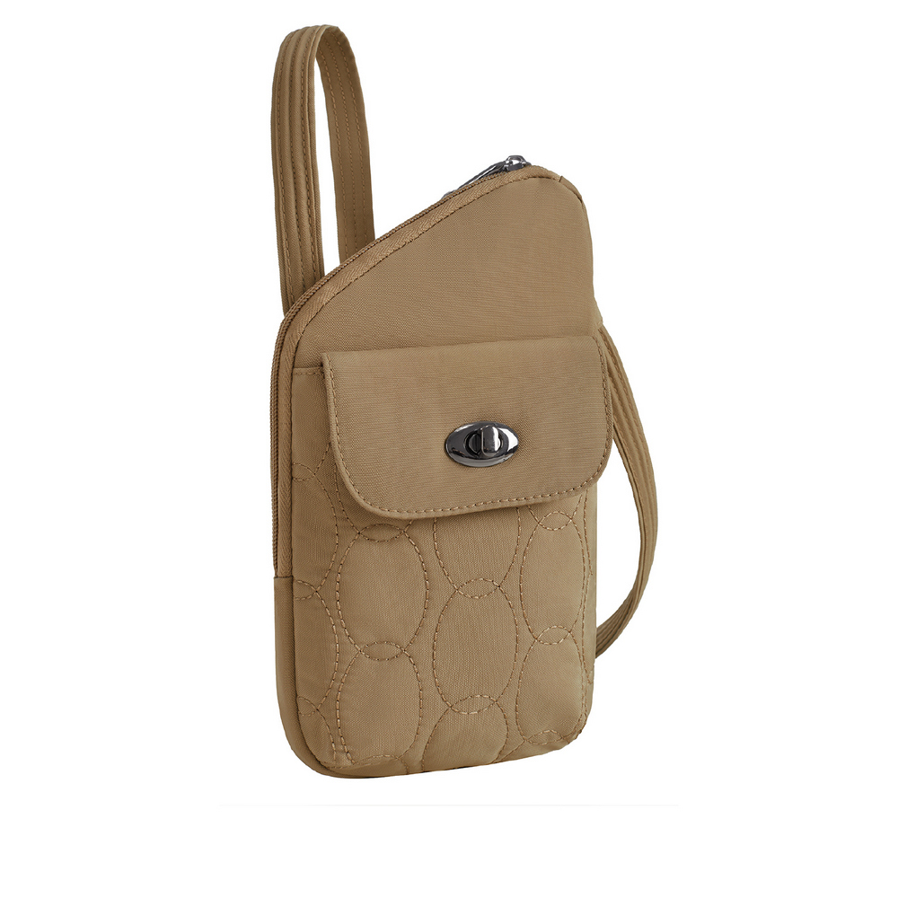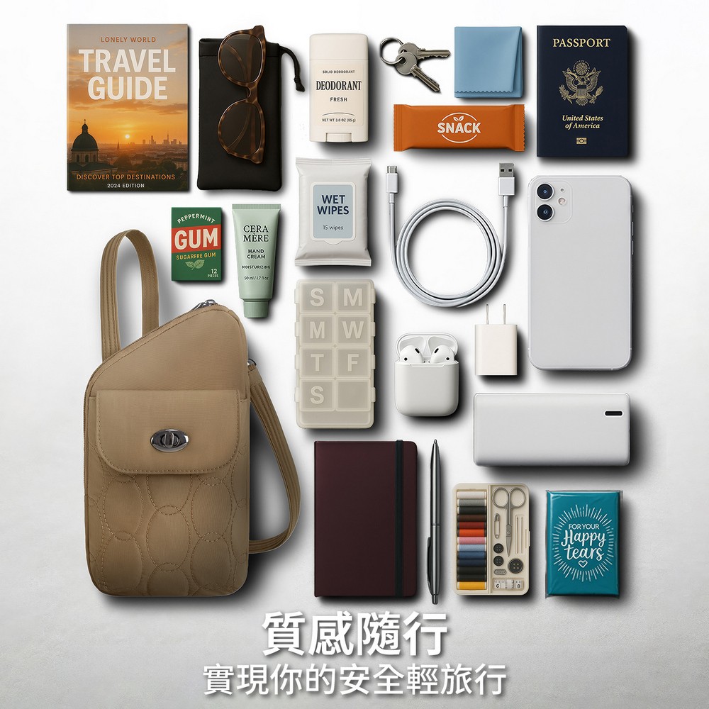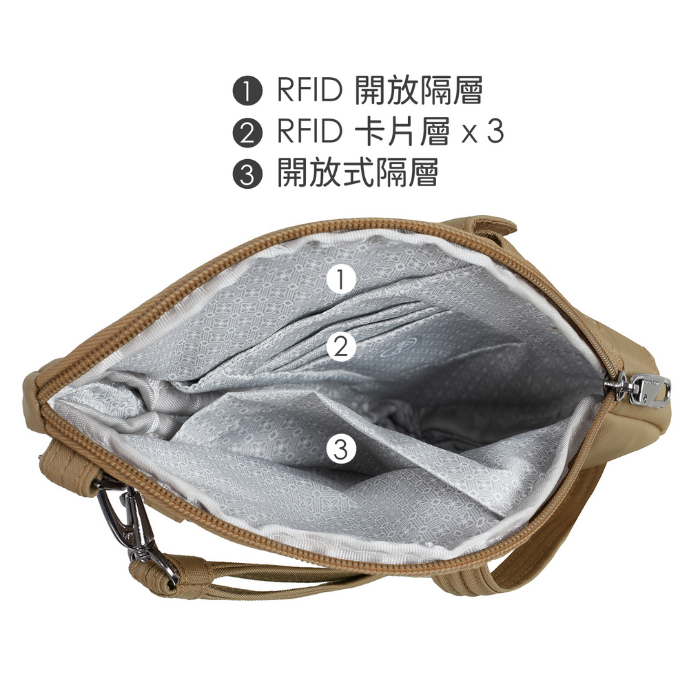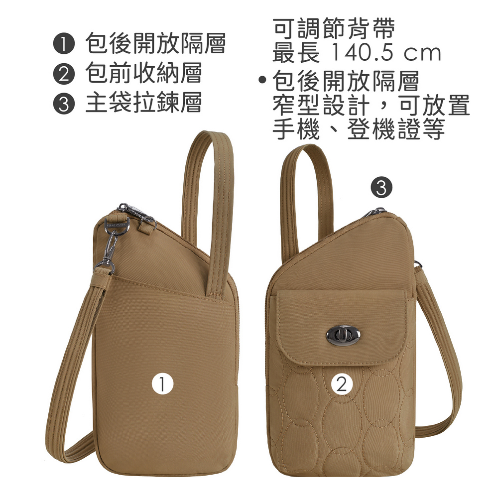 美國 TRAVELON - Runways 3層直式防盜斜背包(拿鐵棕) / RFID防盜包 斜背包 防割防搶