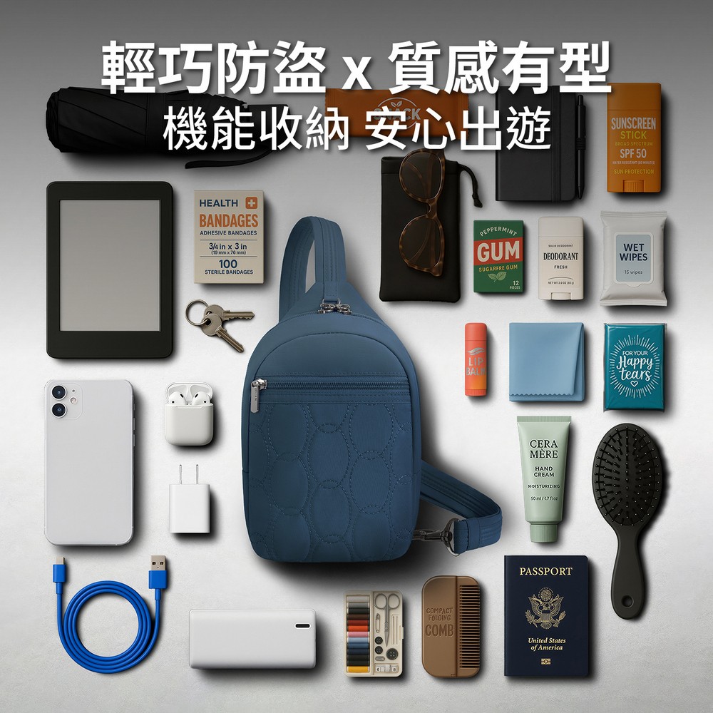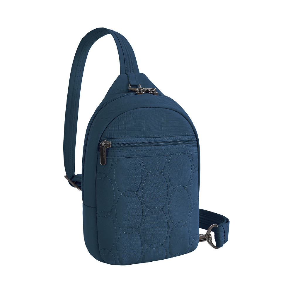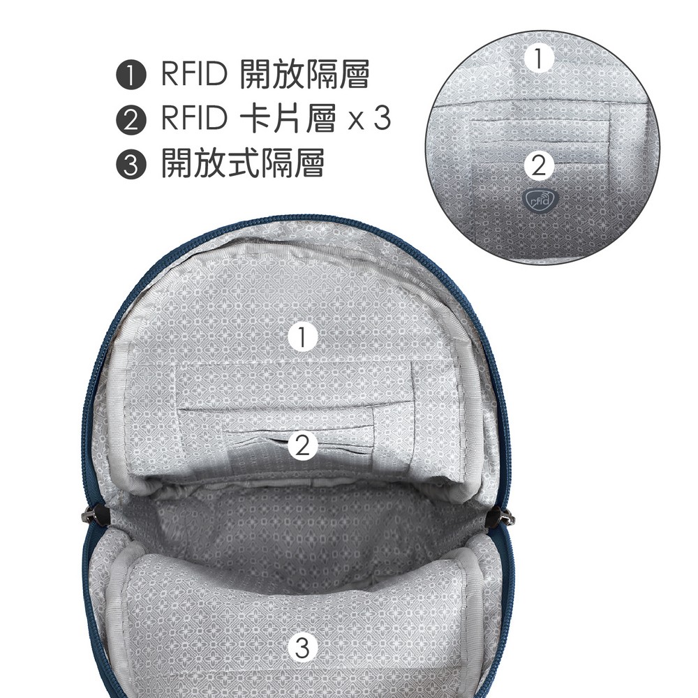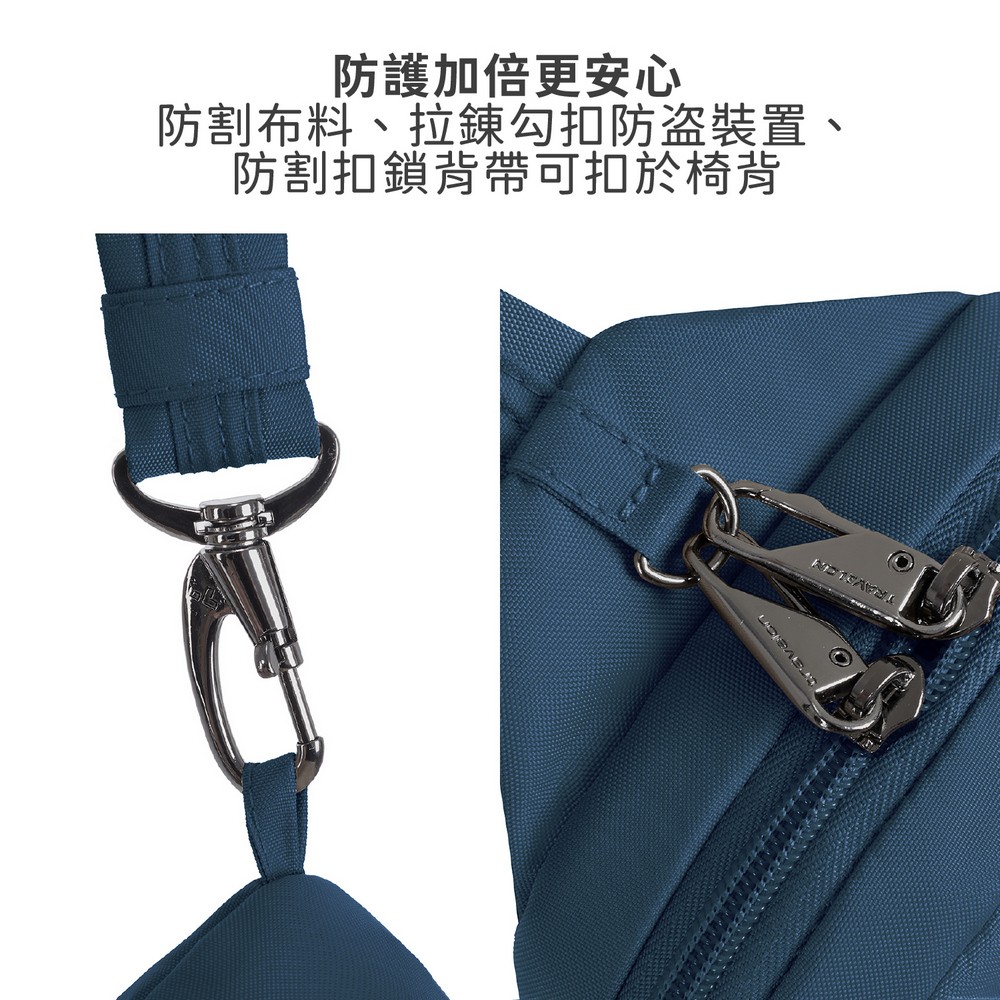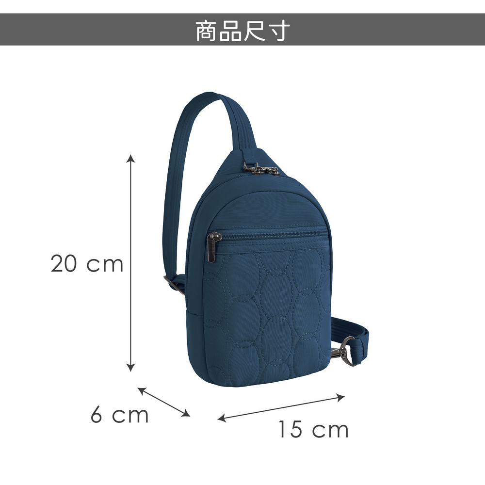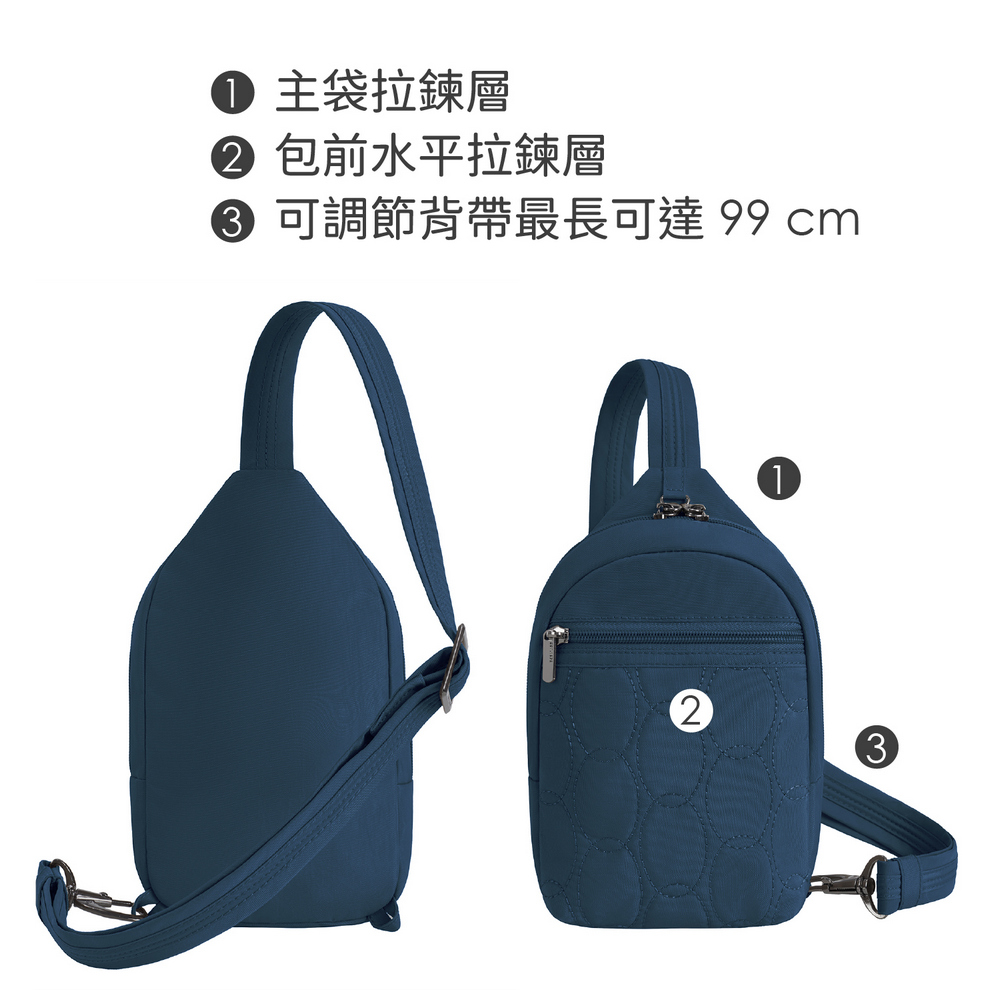 美國 TRAVELON - Runways雙層防盜斜背胸包(蔚藍) / RFID防盜包 斜背包 胸包 防割防搶