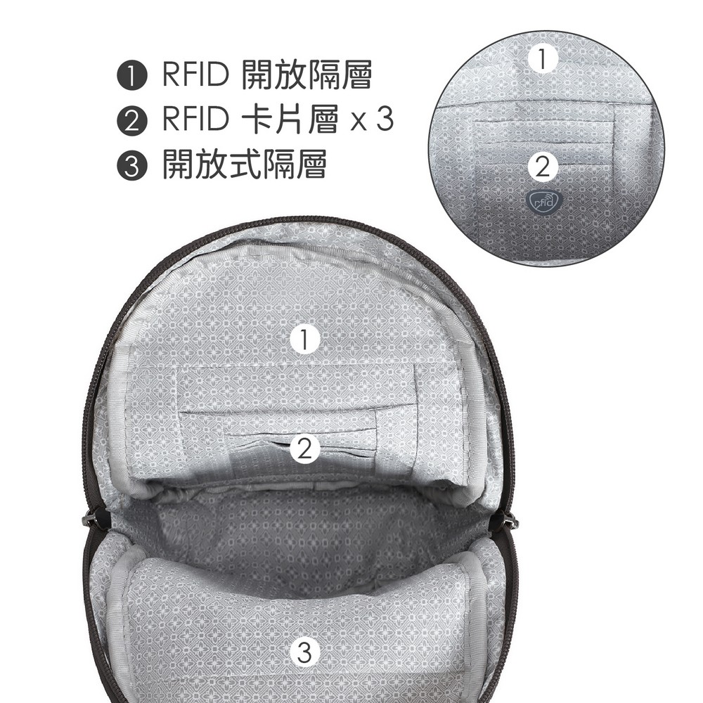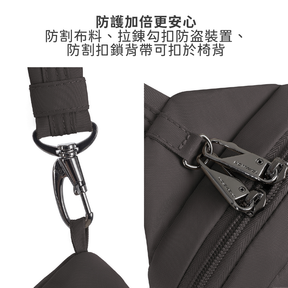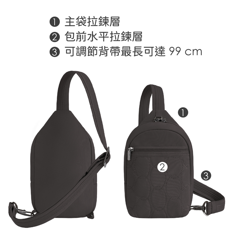 美國 TRAVELON - Runways雙層防盜斜背胸包(月影灰) / RFID防盜包 斜背包 胸包 防割防搶