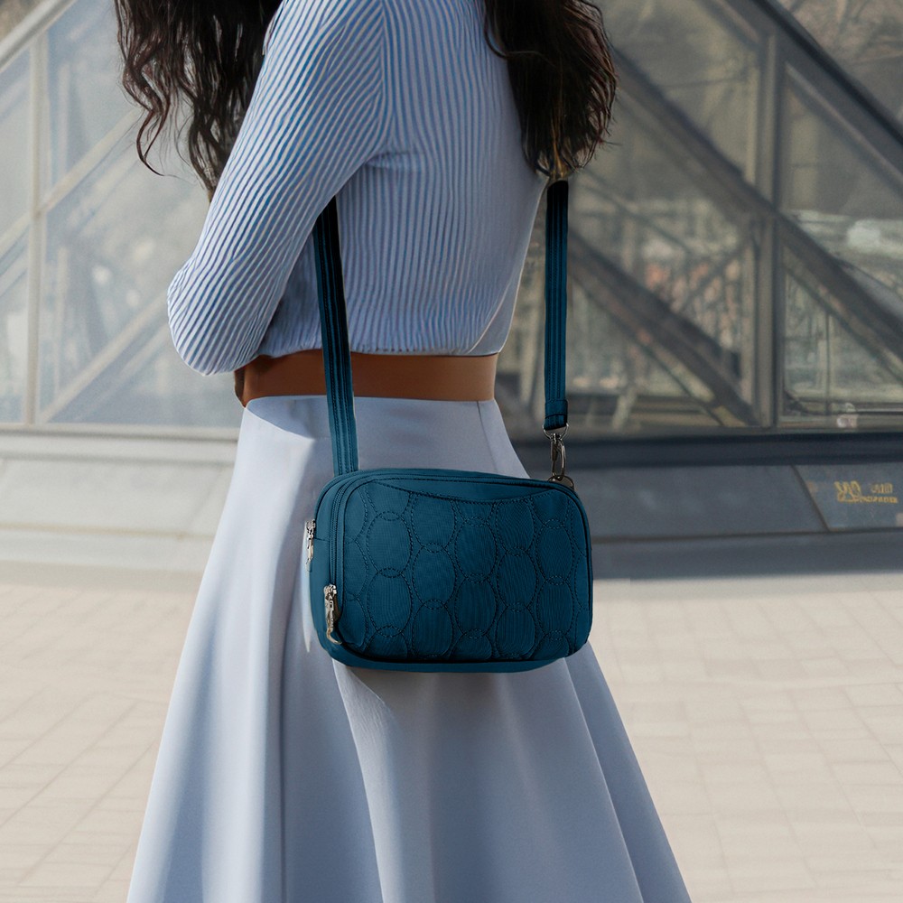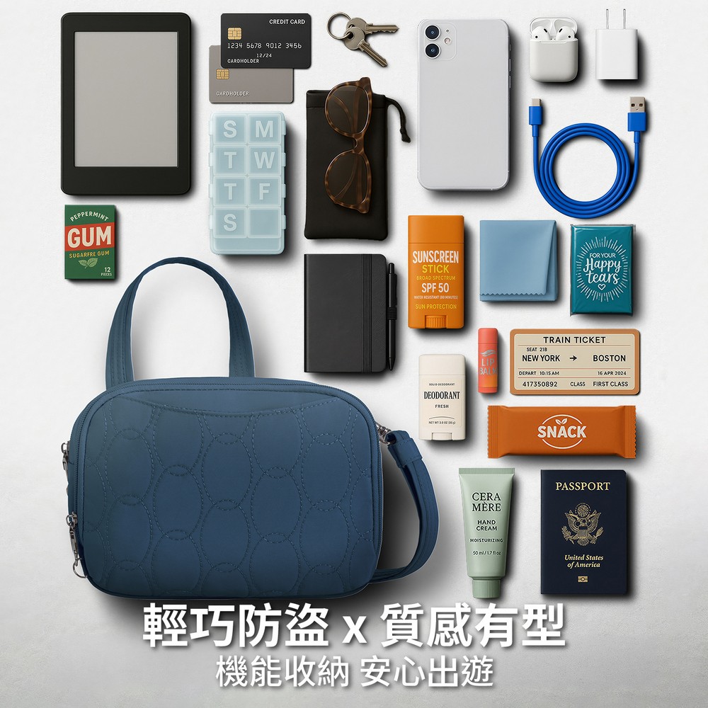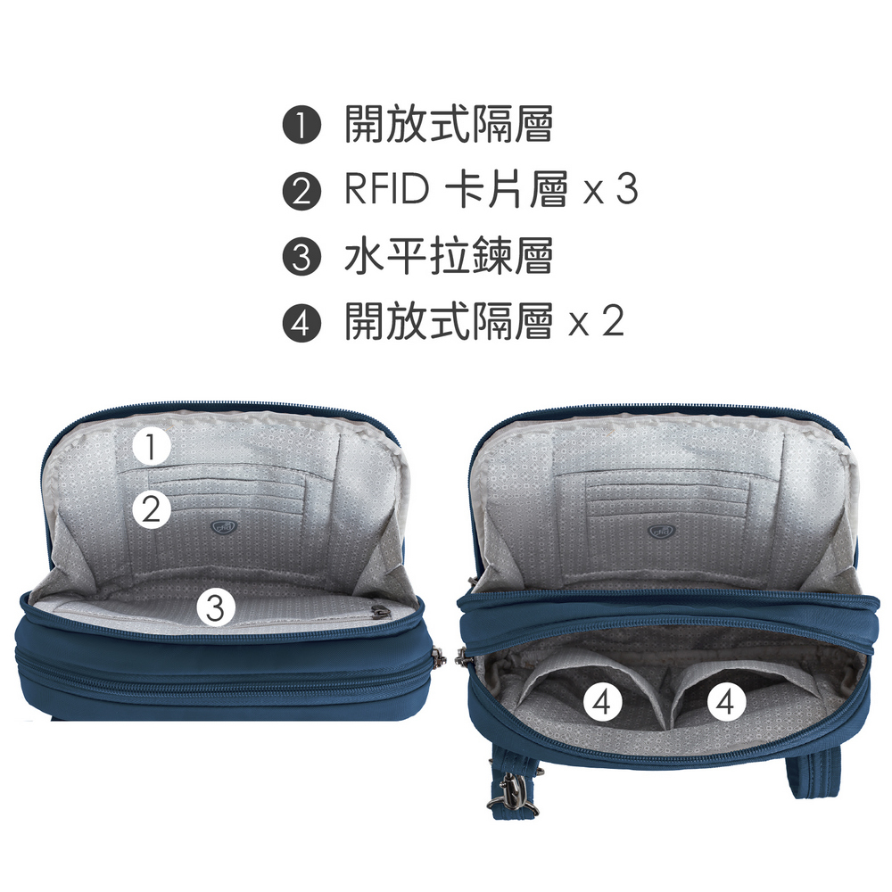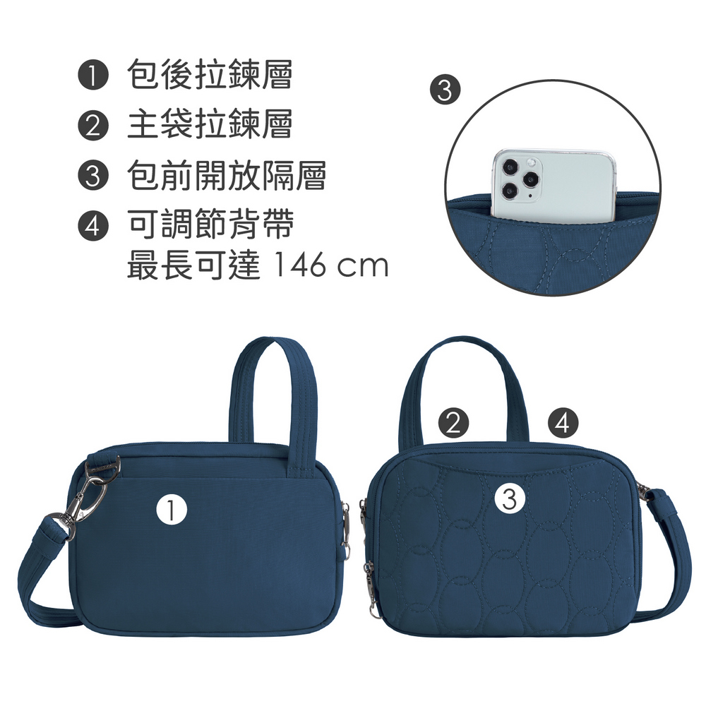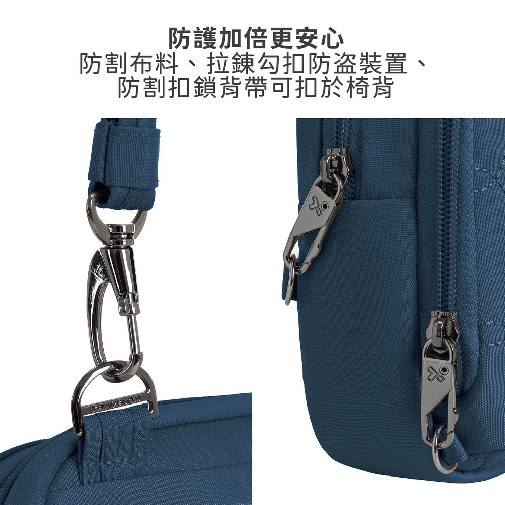 美國 TRAVELON - Runways 3層防盜斜背包(海軍藍) / RFID防盜包 斜背包 側背包 防割防搶