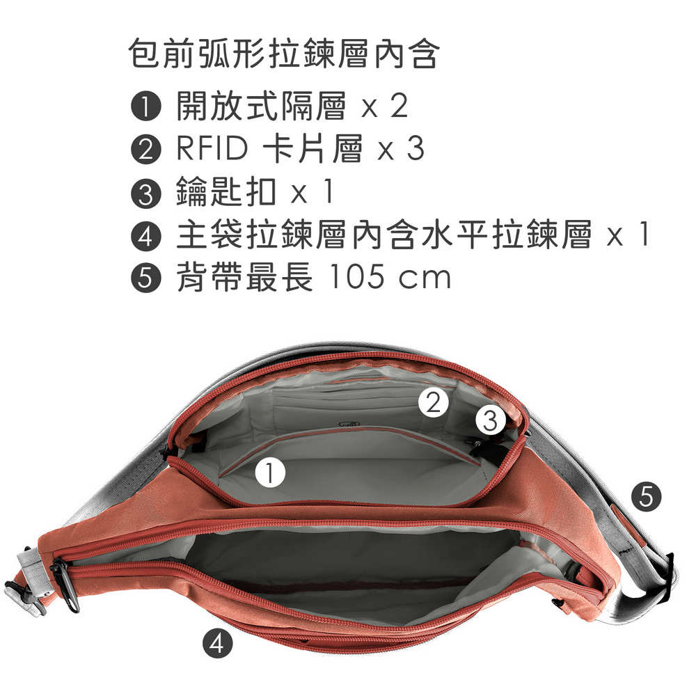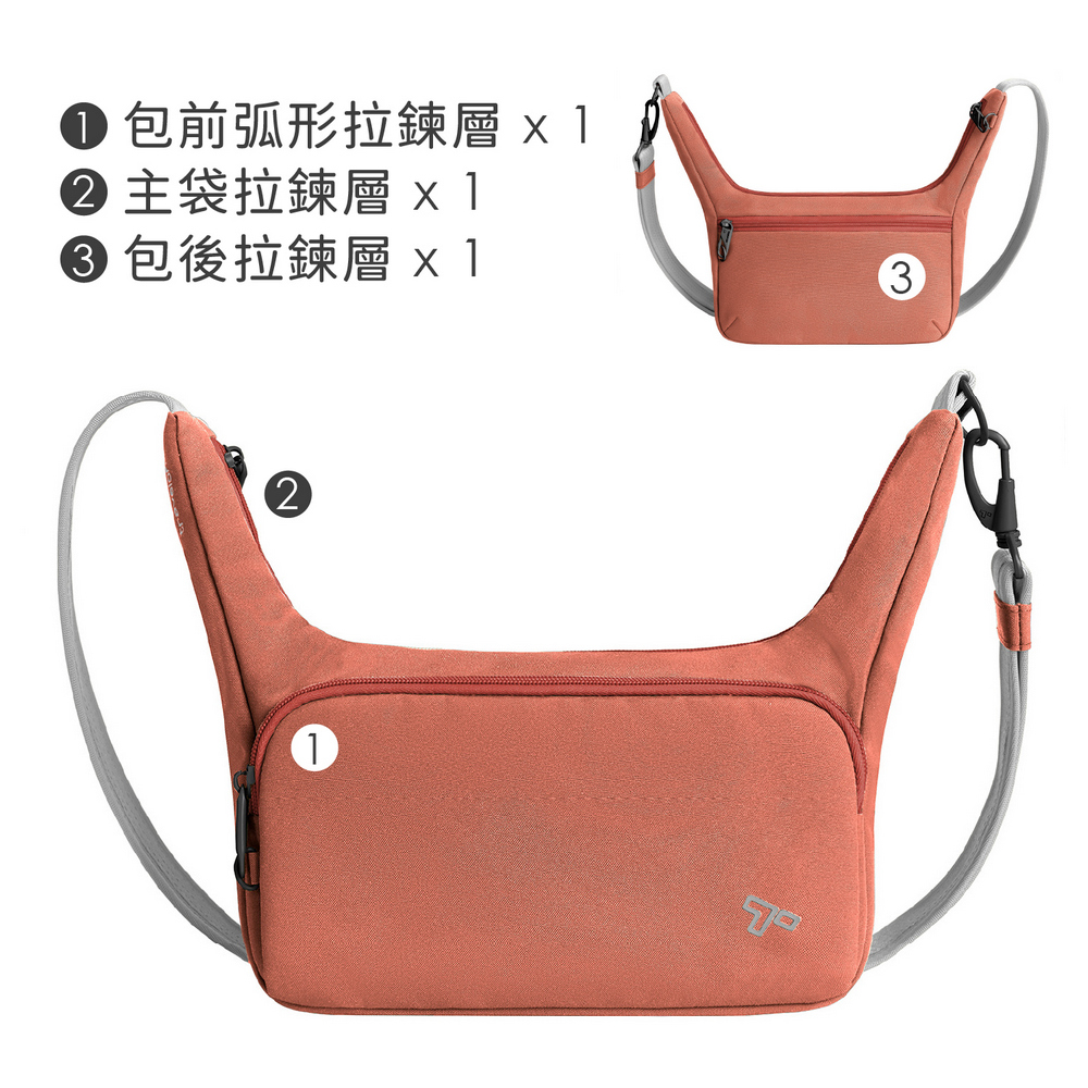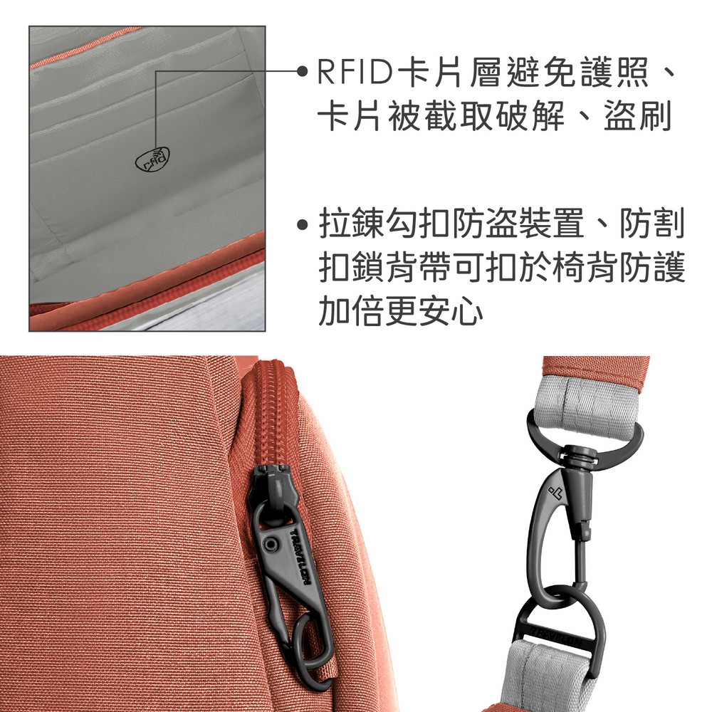 美國 TRAVELON - Voyages 3層防盜船型斜背包(磚紅) / 防盜斜背包