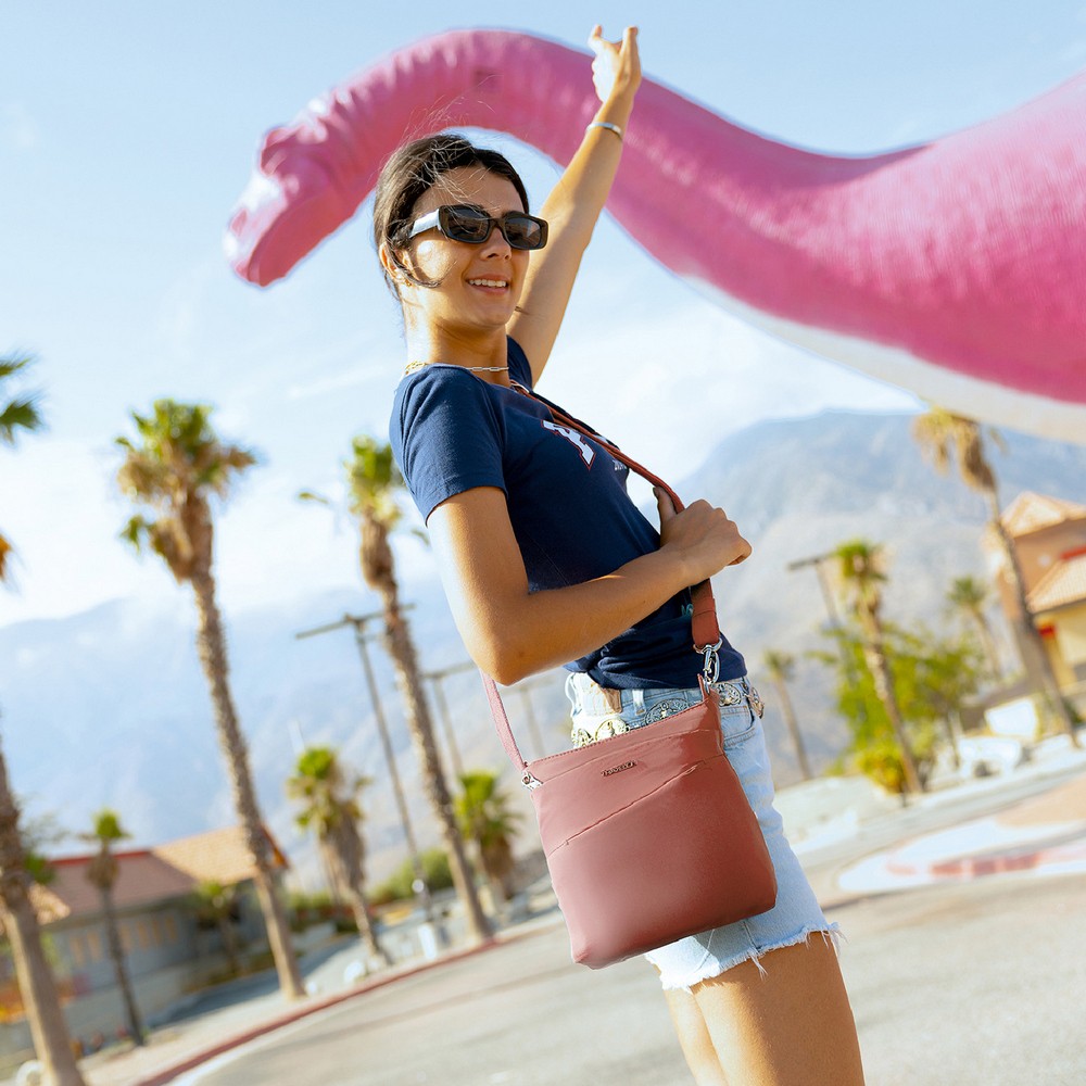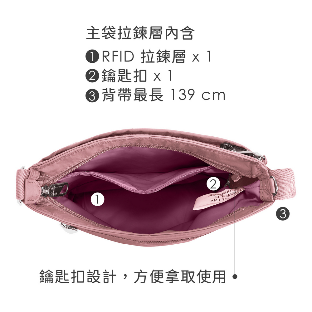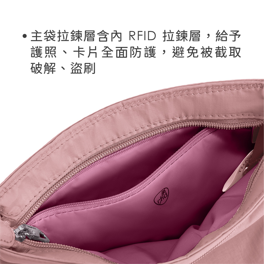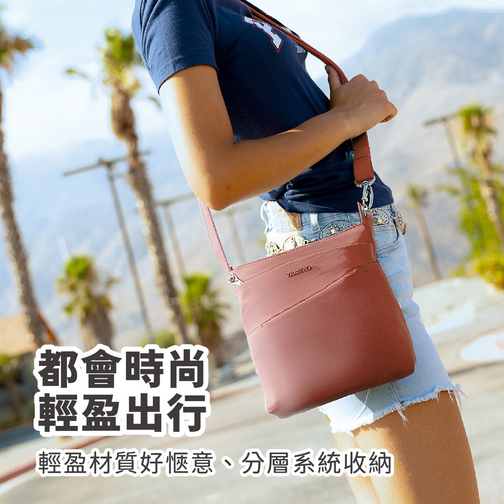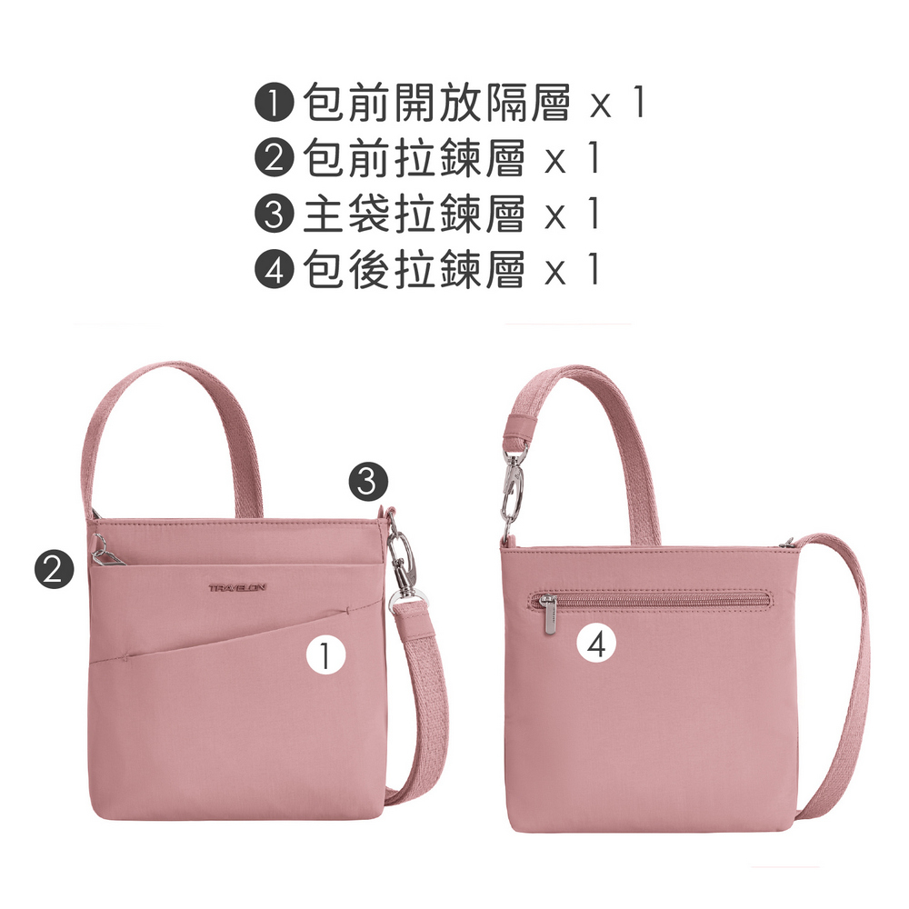 美國 TRAVELON - Roam 4層防盜斜背包(粉莓優格) / 防盜側背包 斜背包