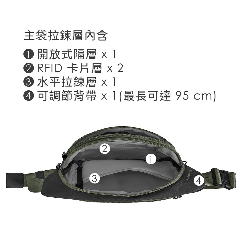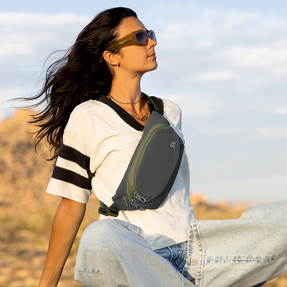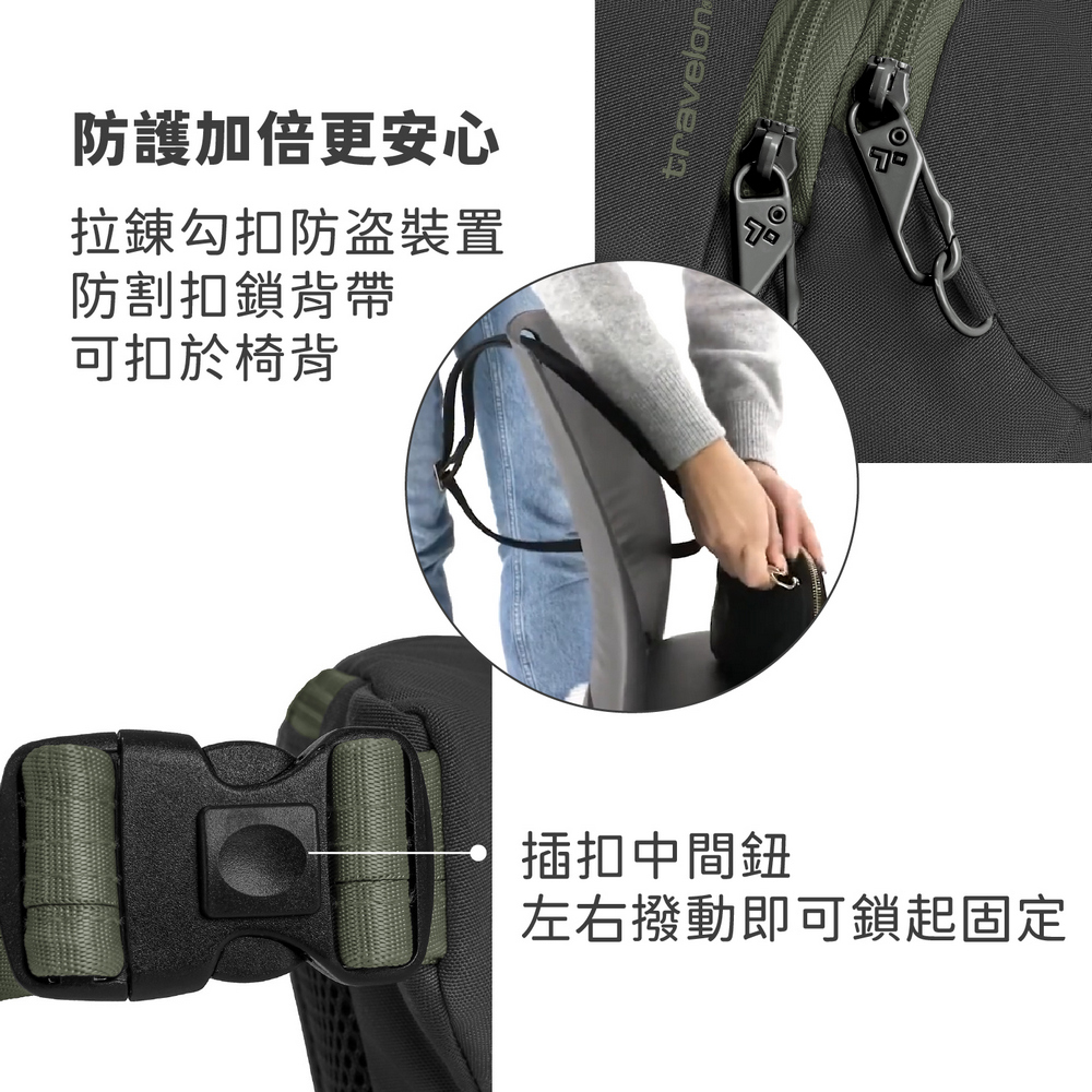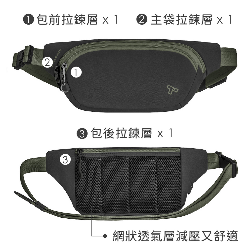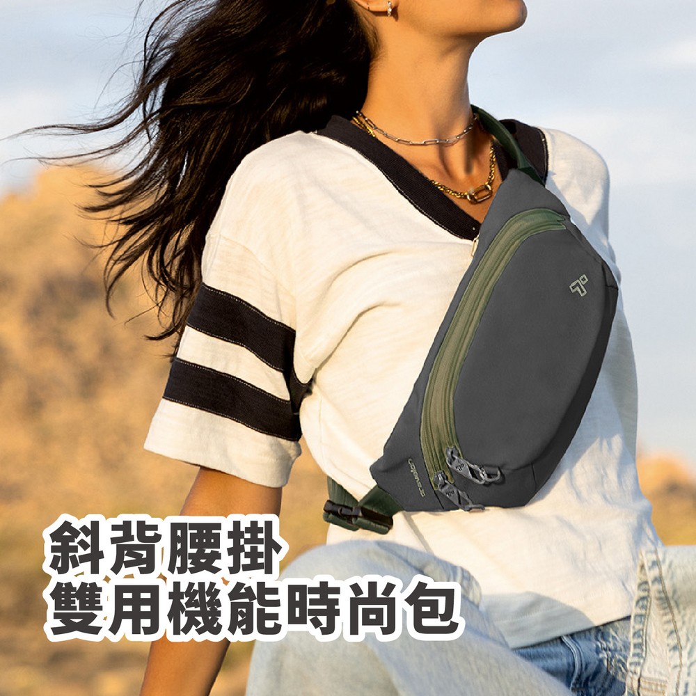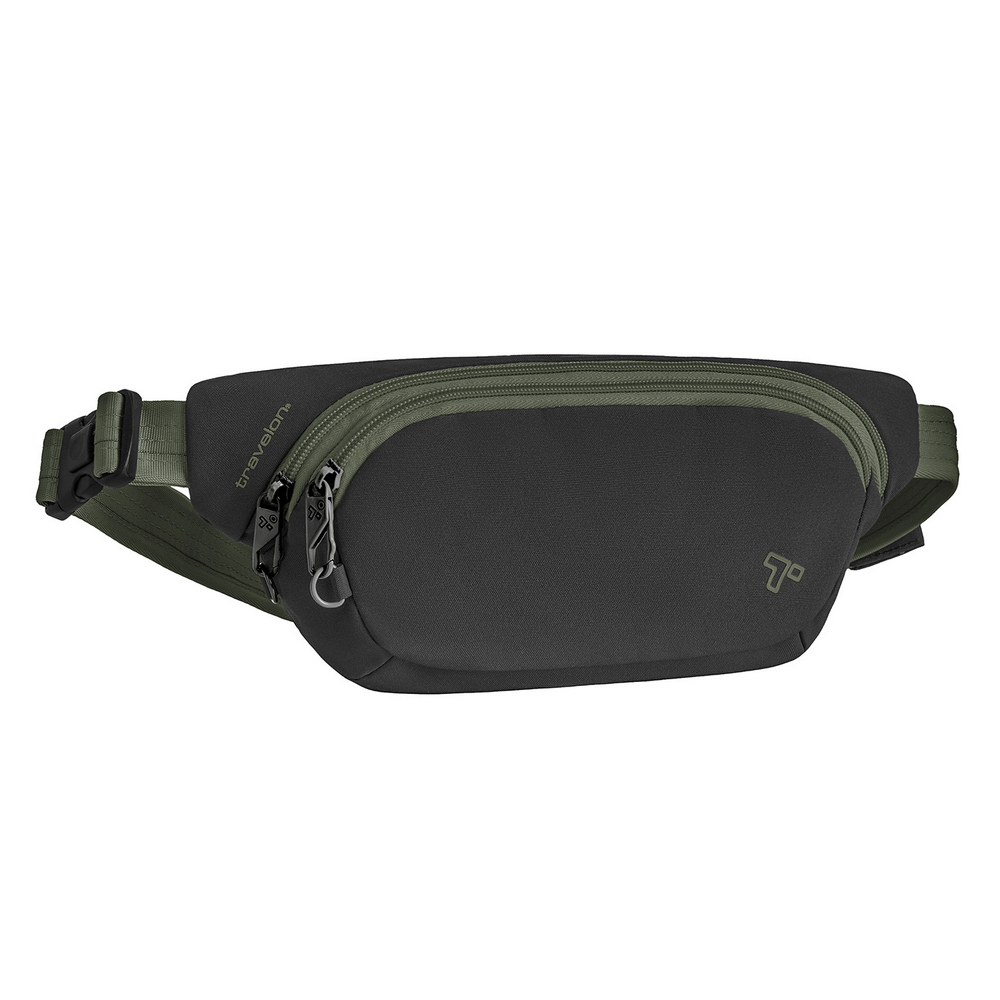 美國 TRAVELON - Voyages 3層防盜斜背腰包(苔黑) / 防盜斜背包 防盜腰包