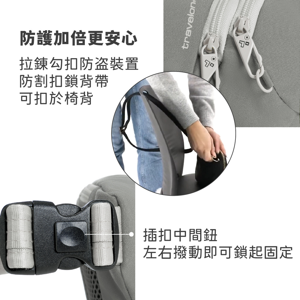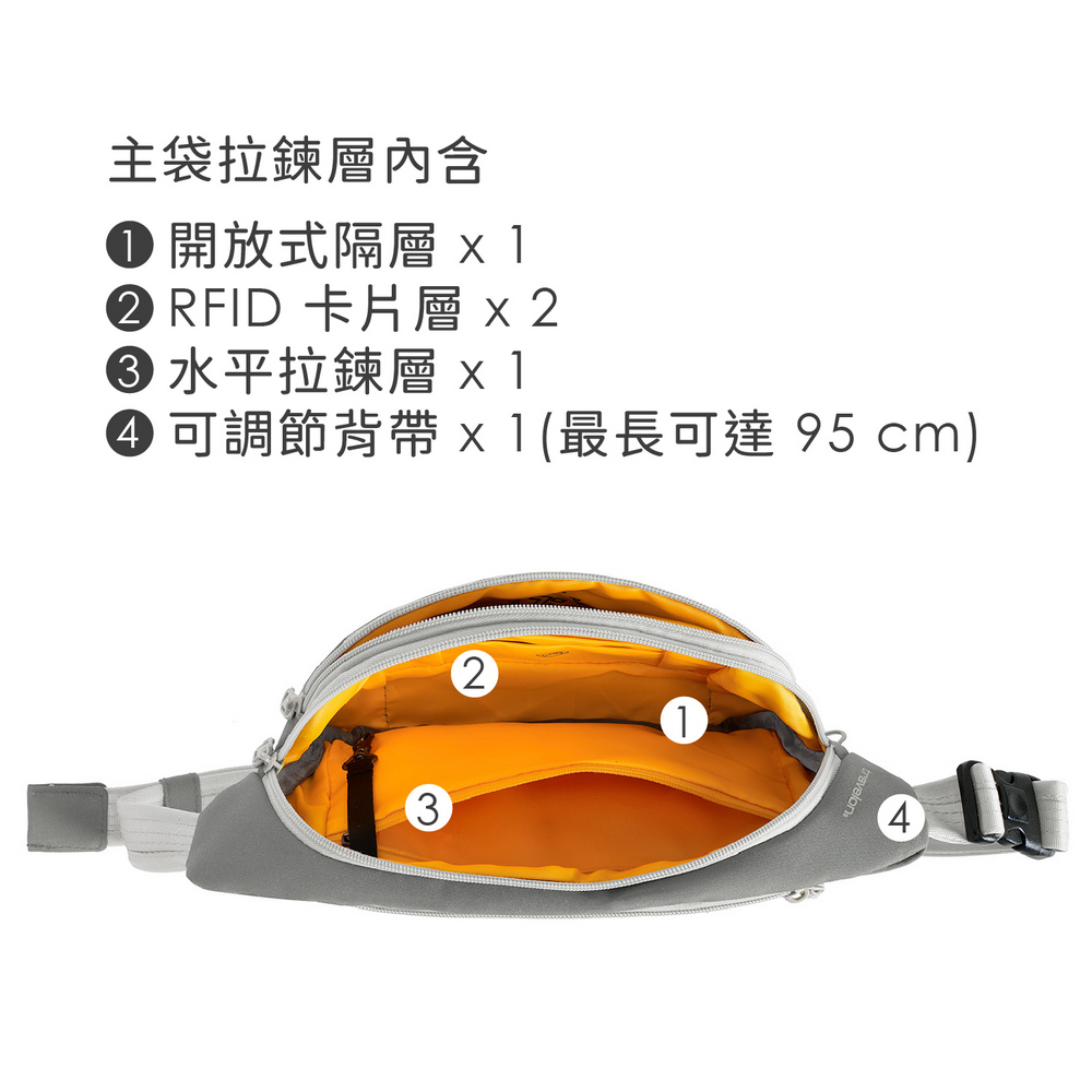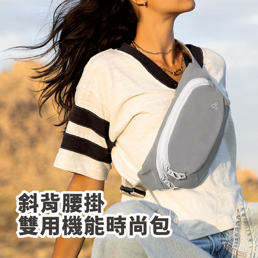 美國 TRAVELON - Voyages 3層防盜斜背腰包(象灰) / 防盜斜背包 防盜腰包
