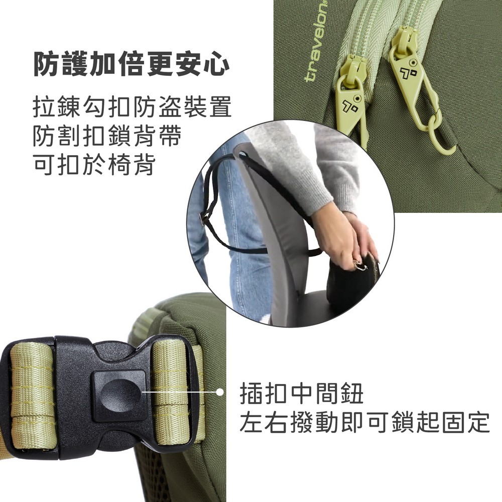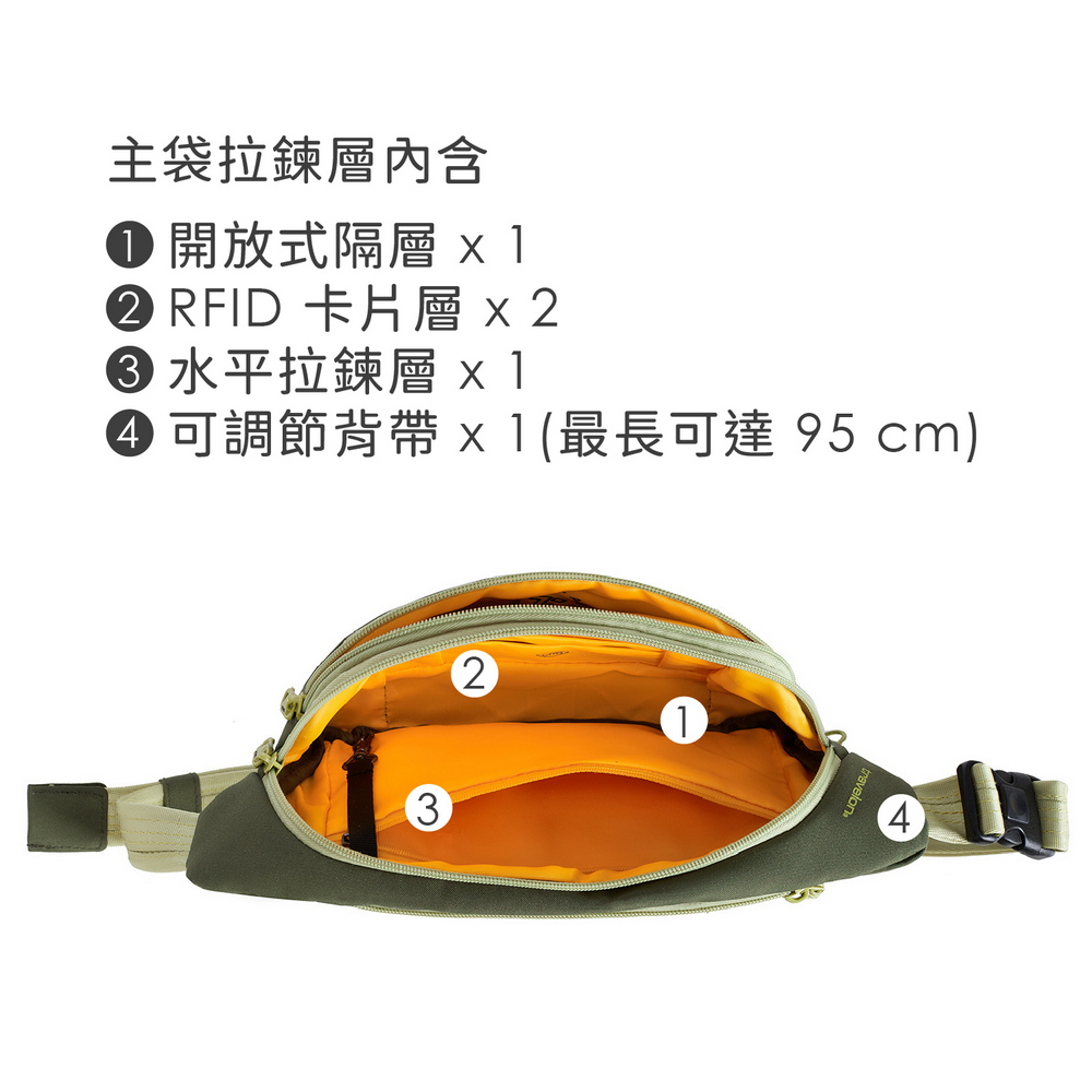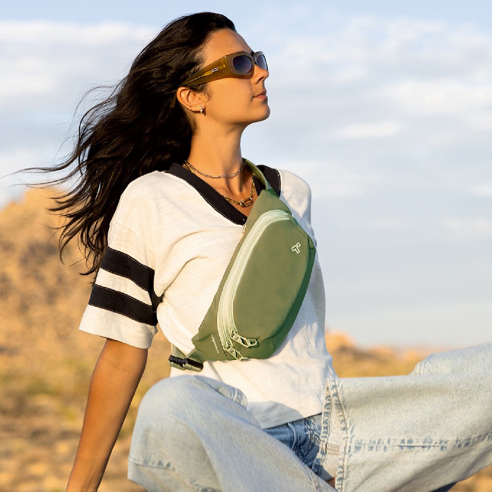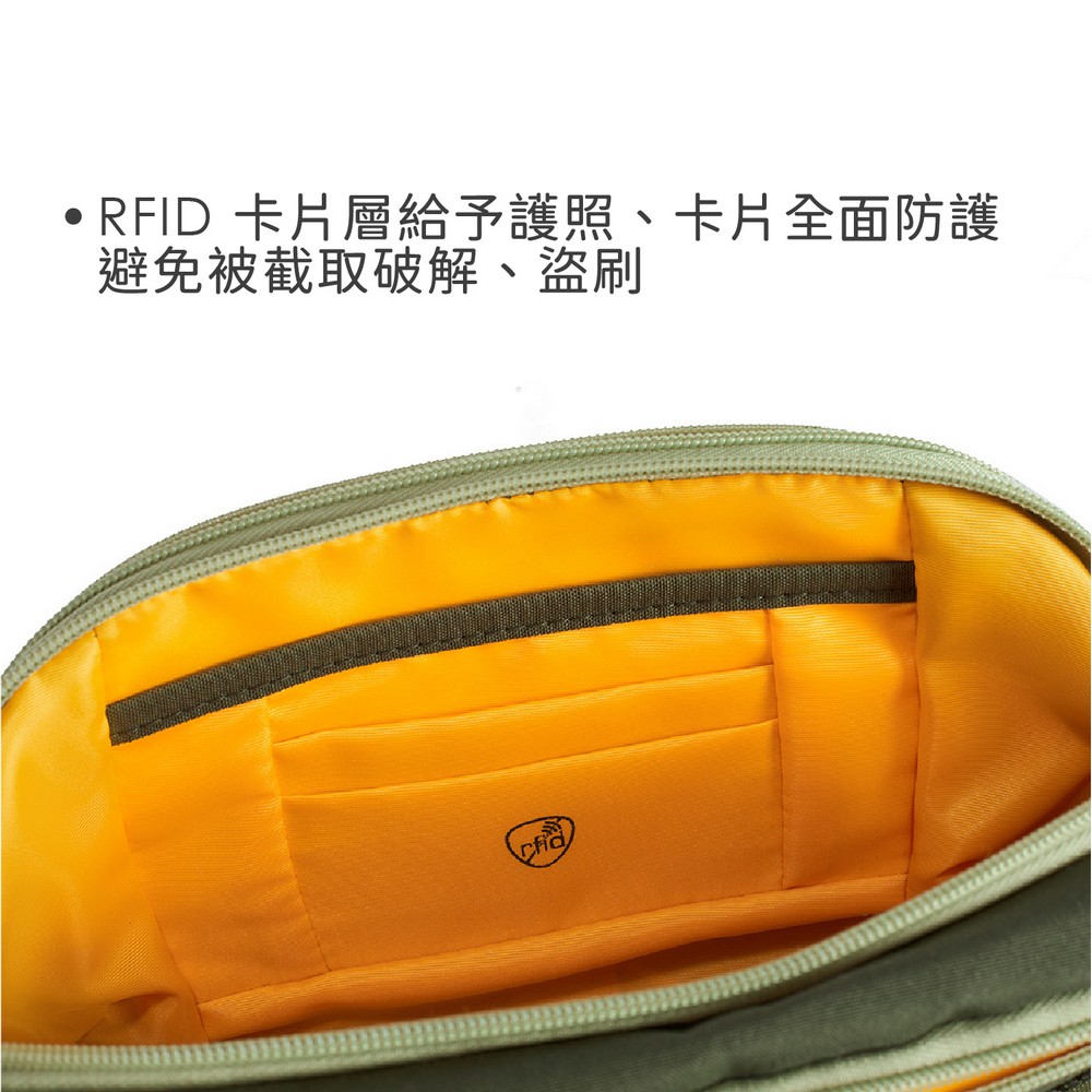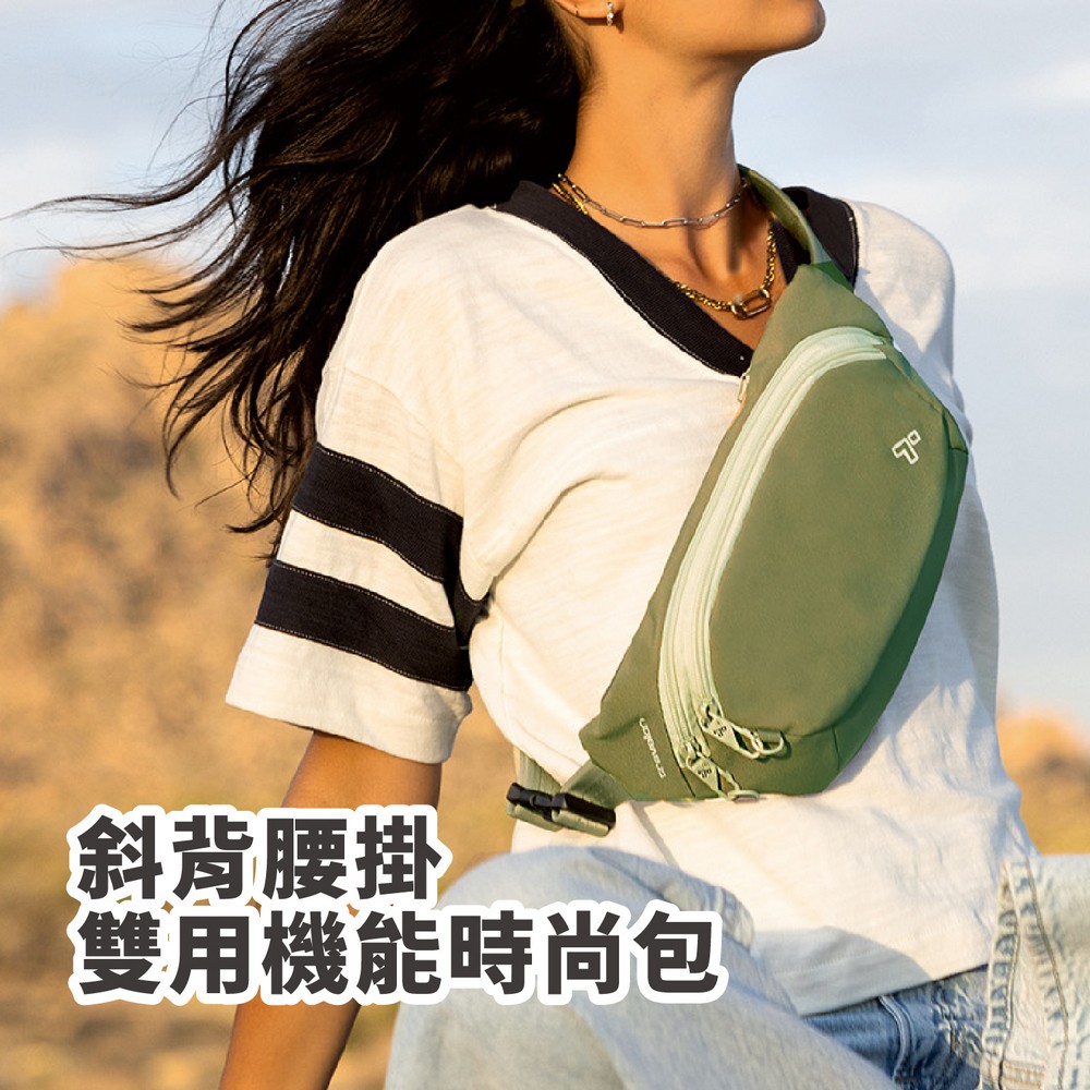 美國 TRAVELON - Voyages 3層防盜斜背腰包(酪梨) / 防盜斜背包 防盜腰包