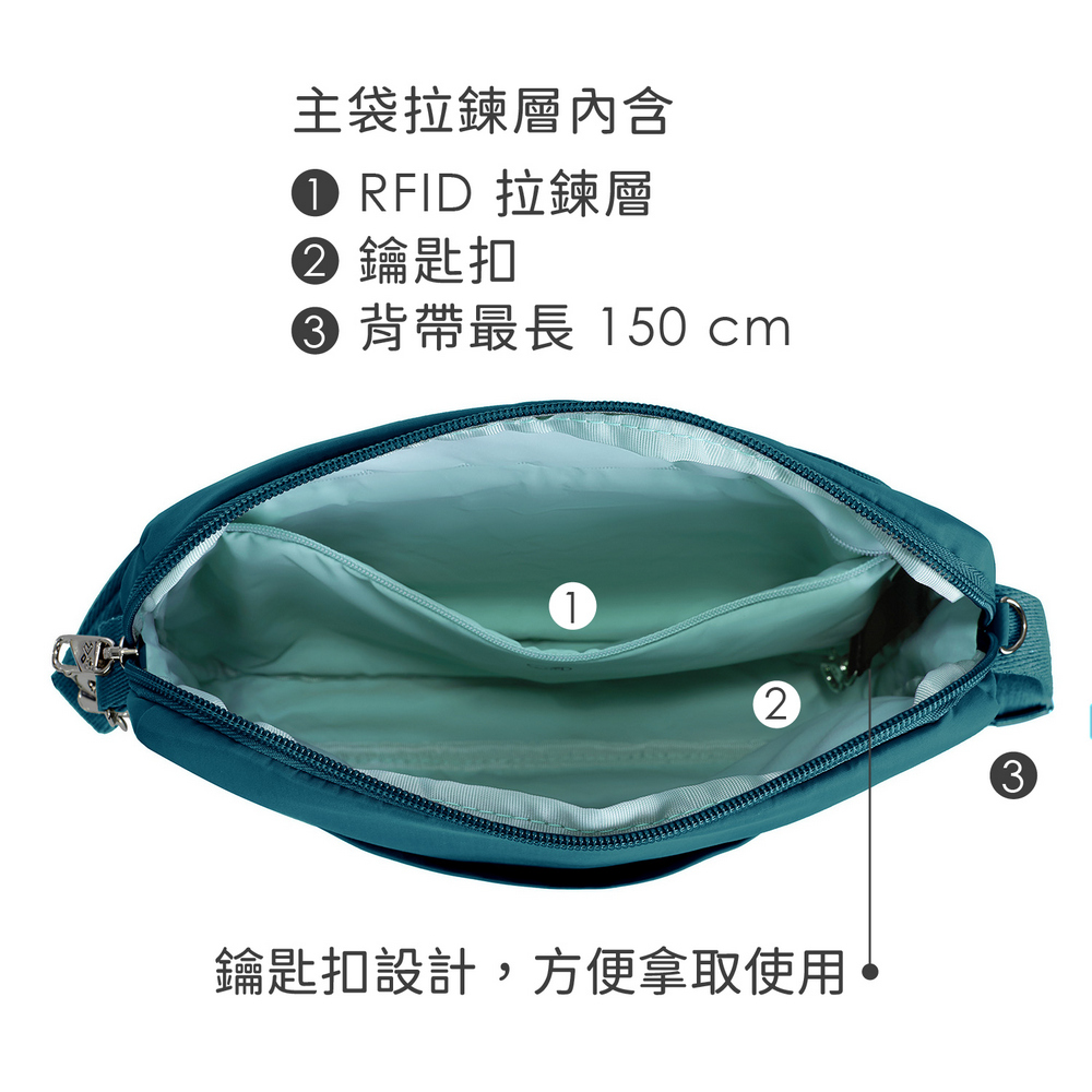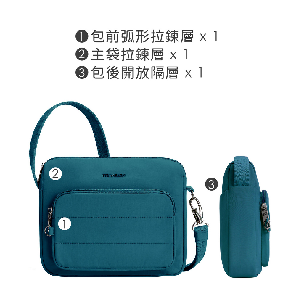 美國 TRAVELON - Roam 3層防盜斜背包(蔚藍) / 防盜側背包