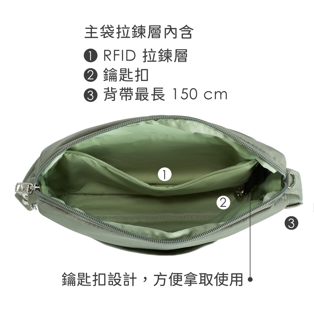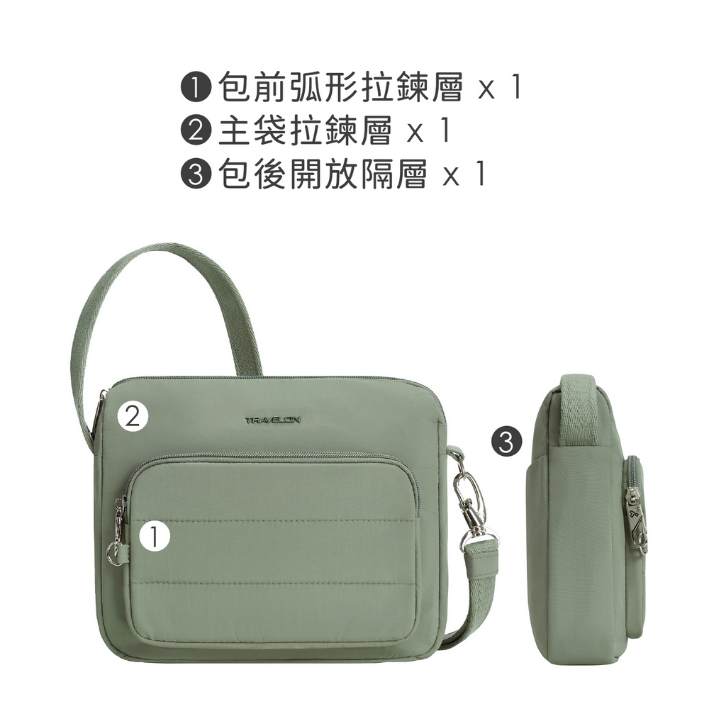 美國 TRAVELON - Roam 3層防盜斜背包(抹茶拿鐵) / 防盜側背包