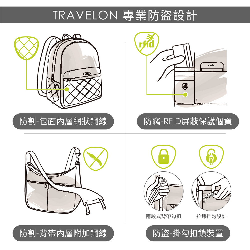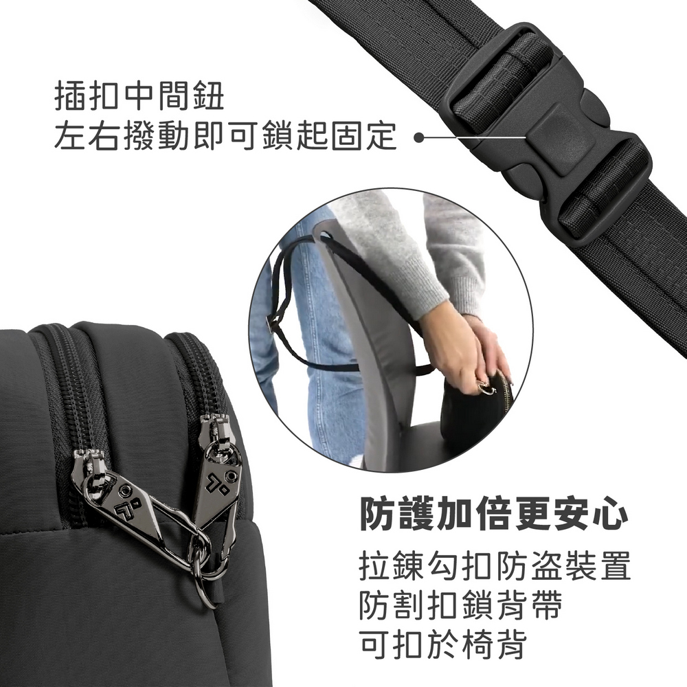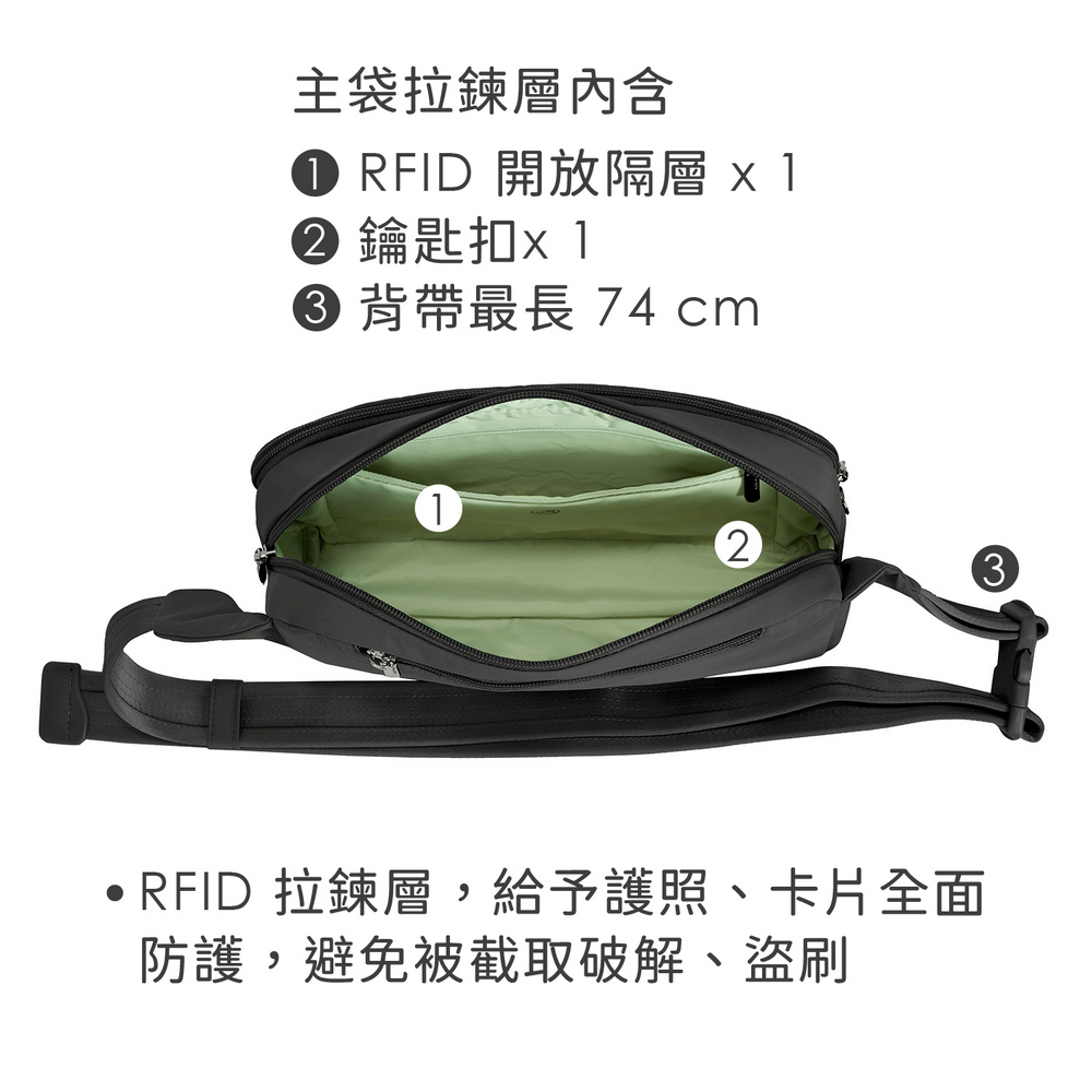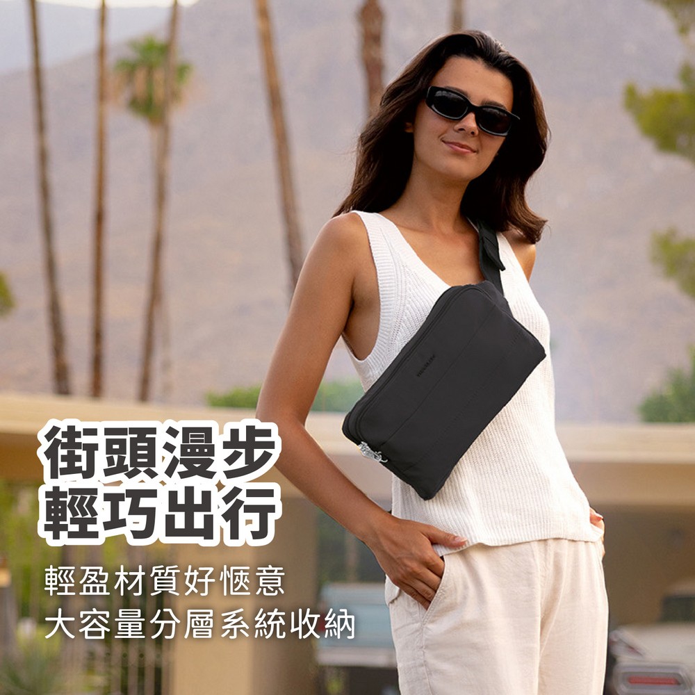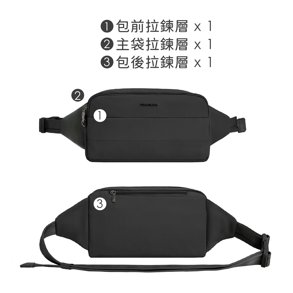 美國 TRAVELON - Roam 3層防盜斜背腰包(墨黑) / 防盜腰包