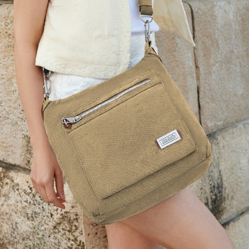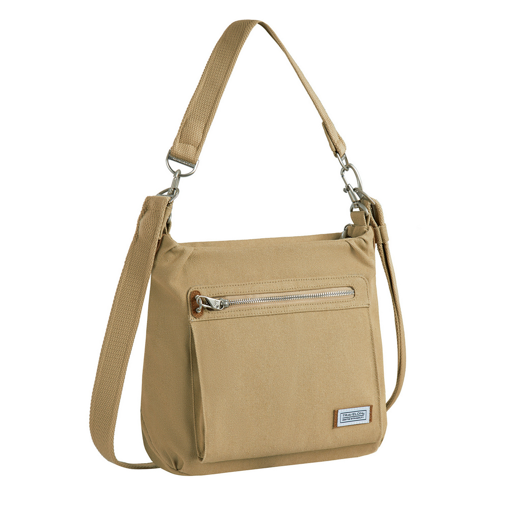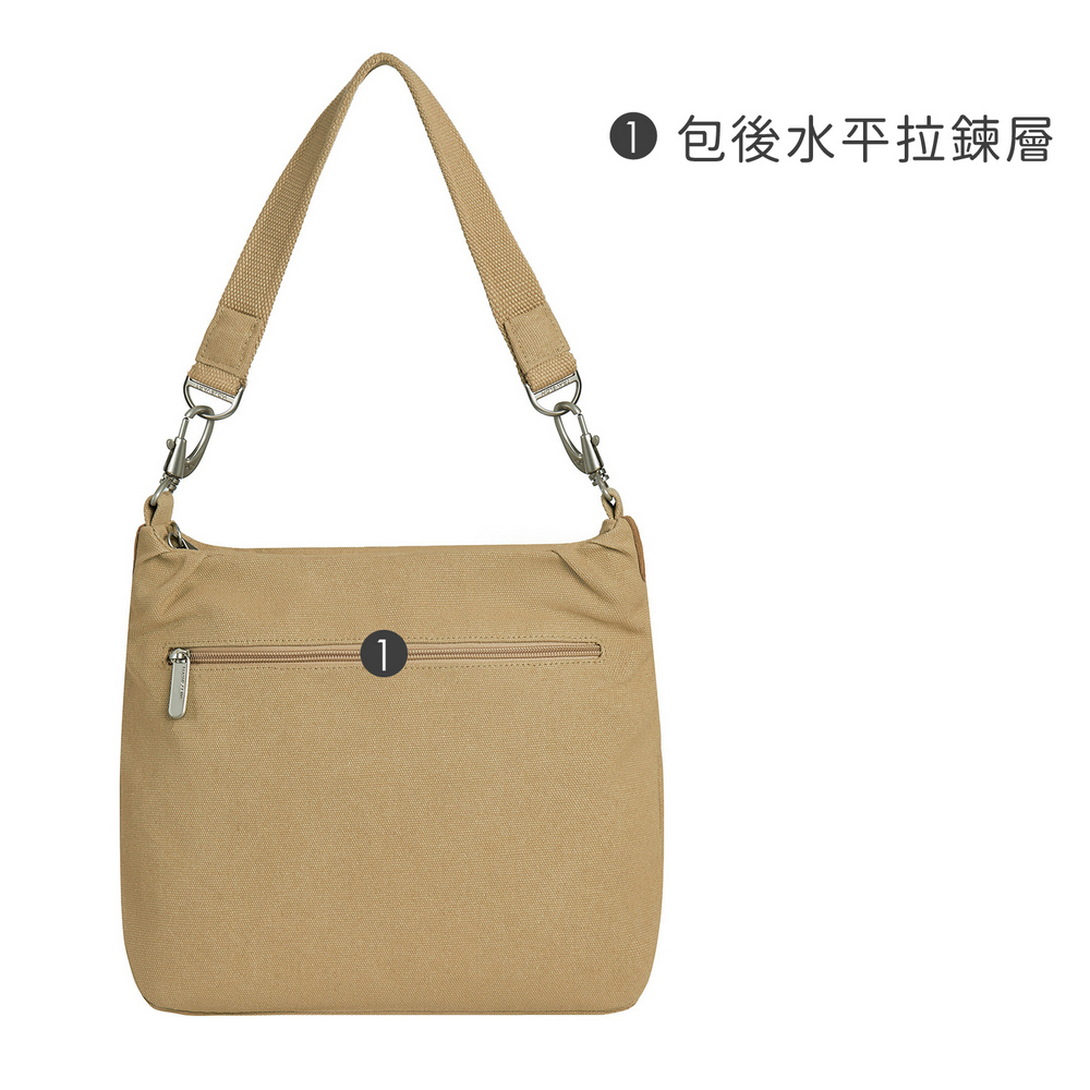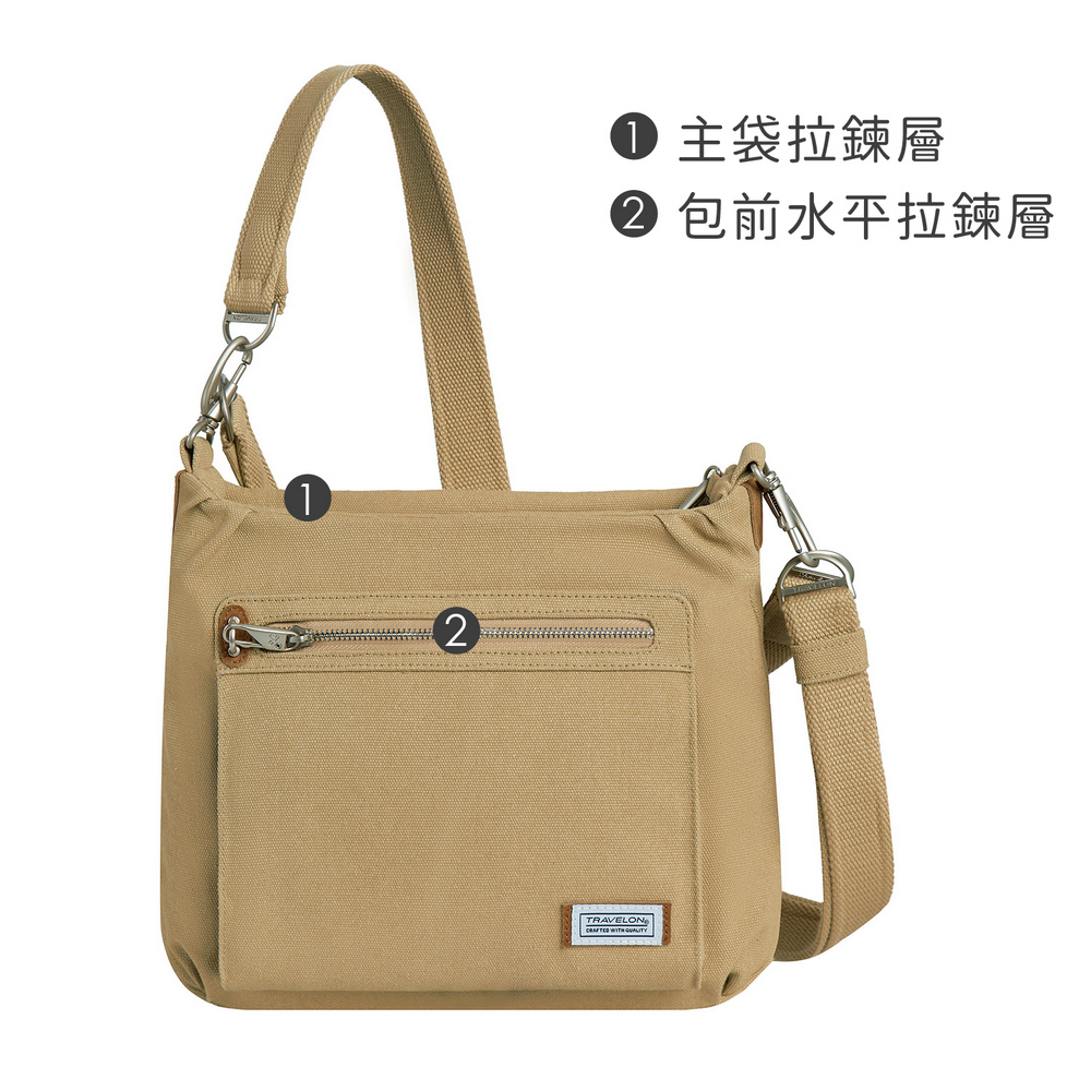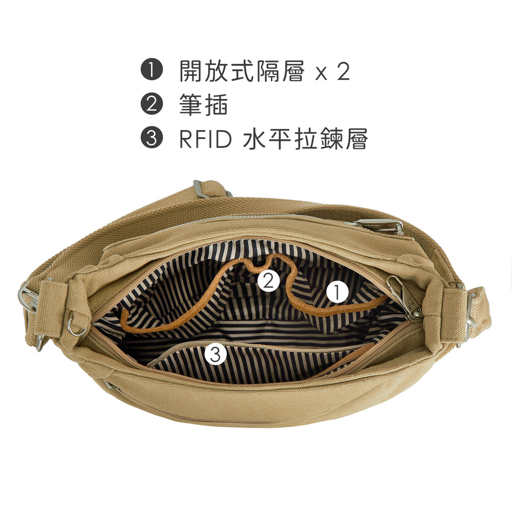 美國 TRAVELON - Heritage帆布3層防盜HOBO包(牛仔沙) / 側背包 斜肩包 單肩包 防割防搶