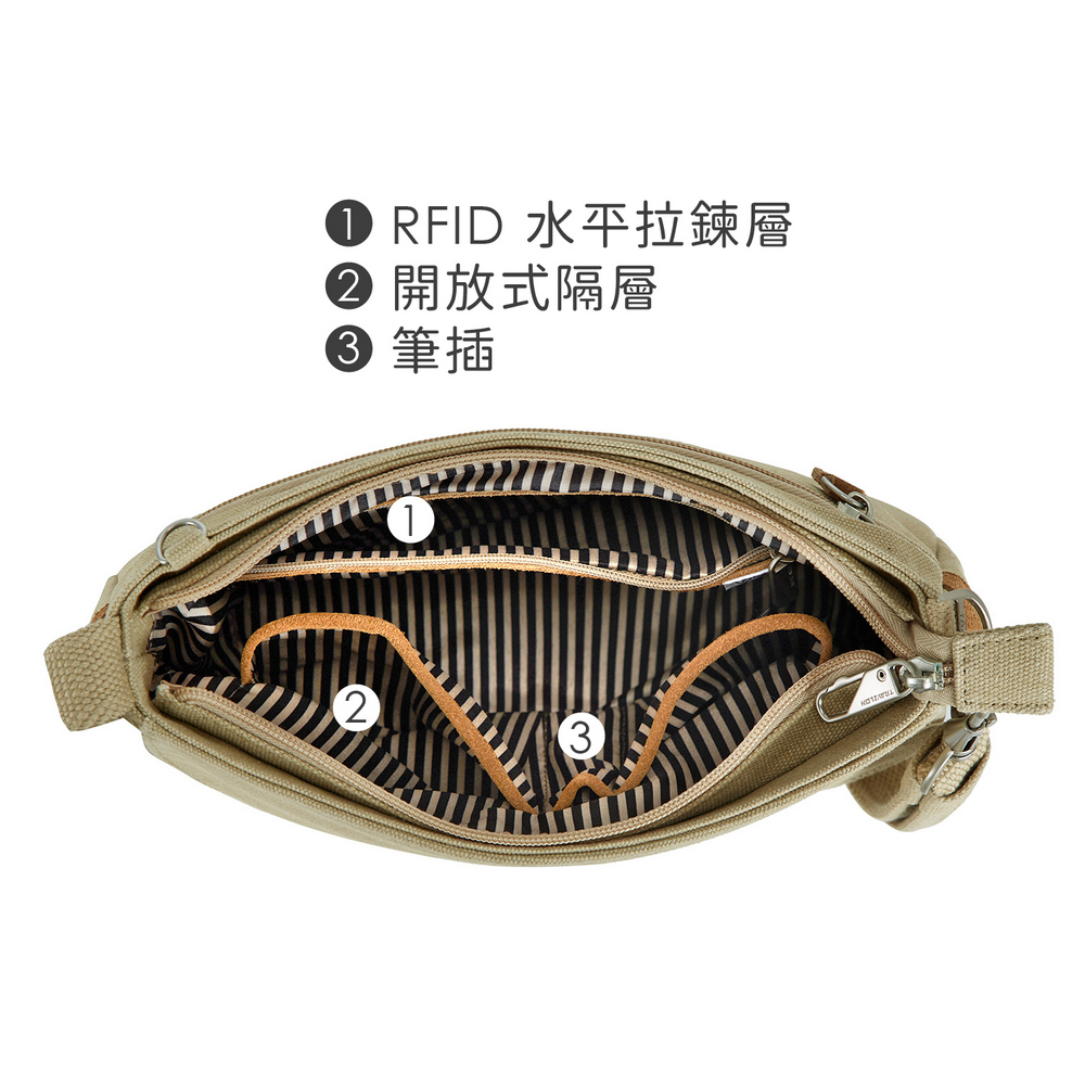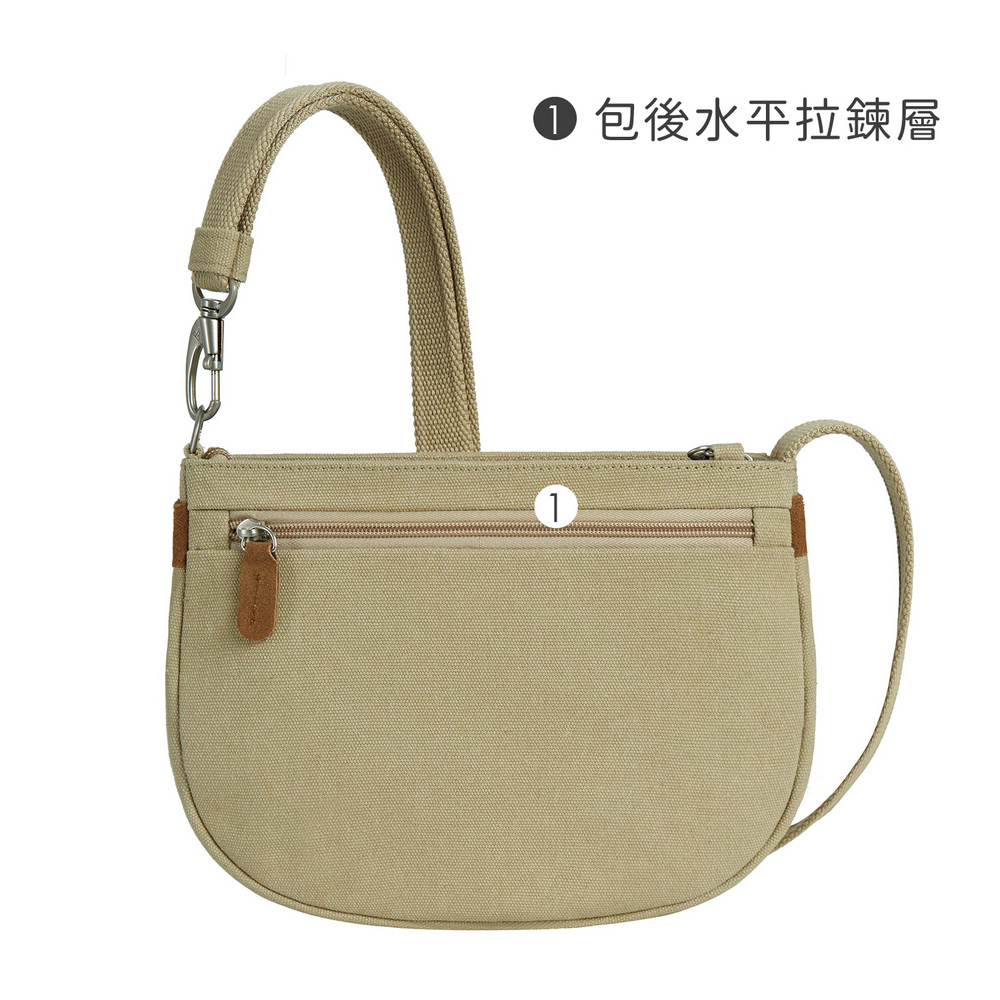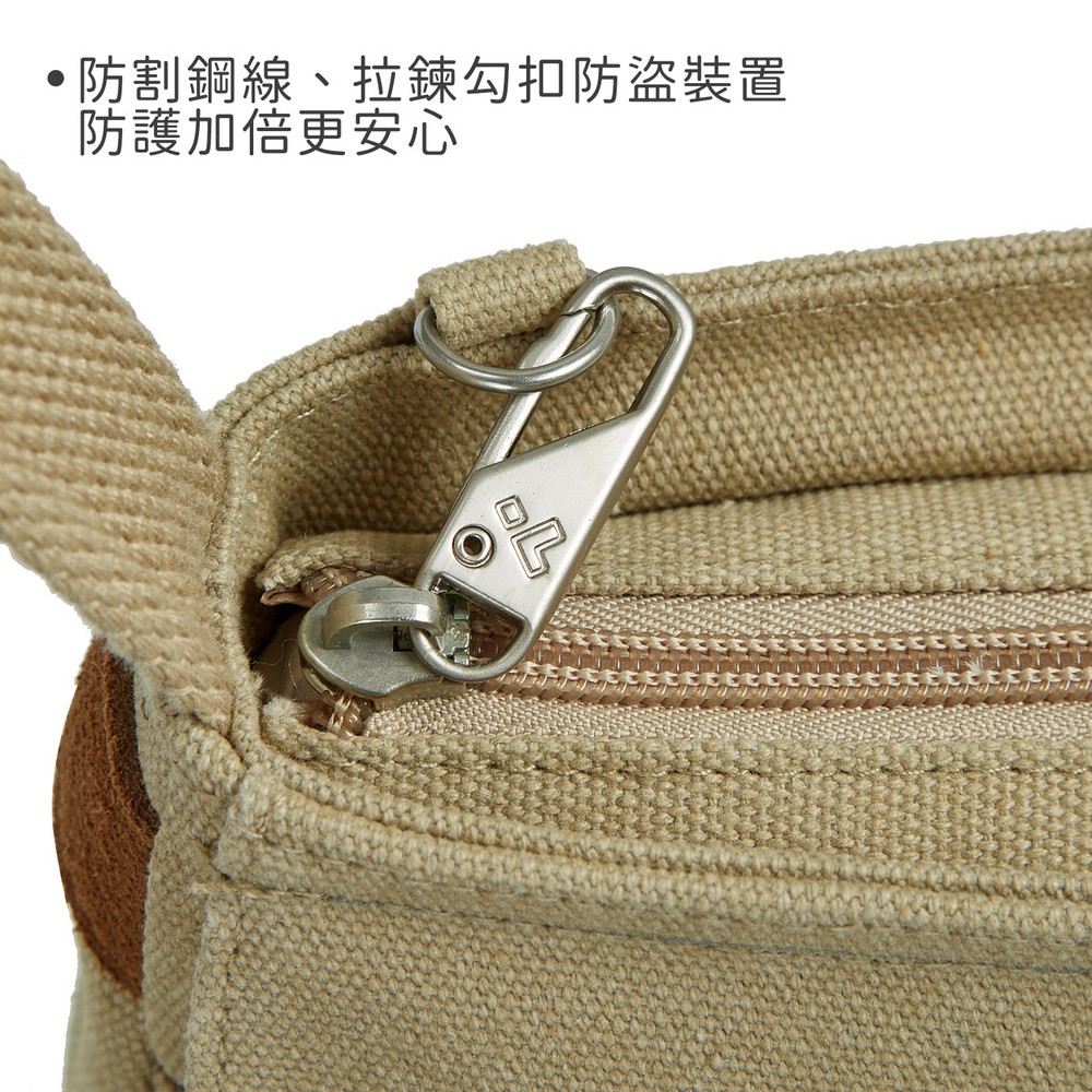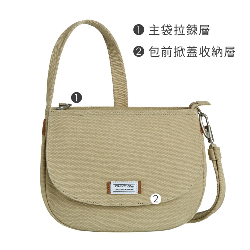 美國 TRAVELON - Heritage帆布3層輕便防盜斜背包(牛仔沙) / 側背包 斜肩包 小包 背帶包 防割防搶