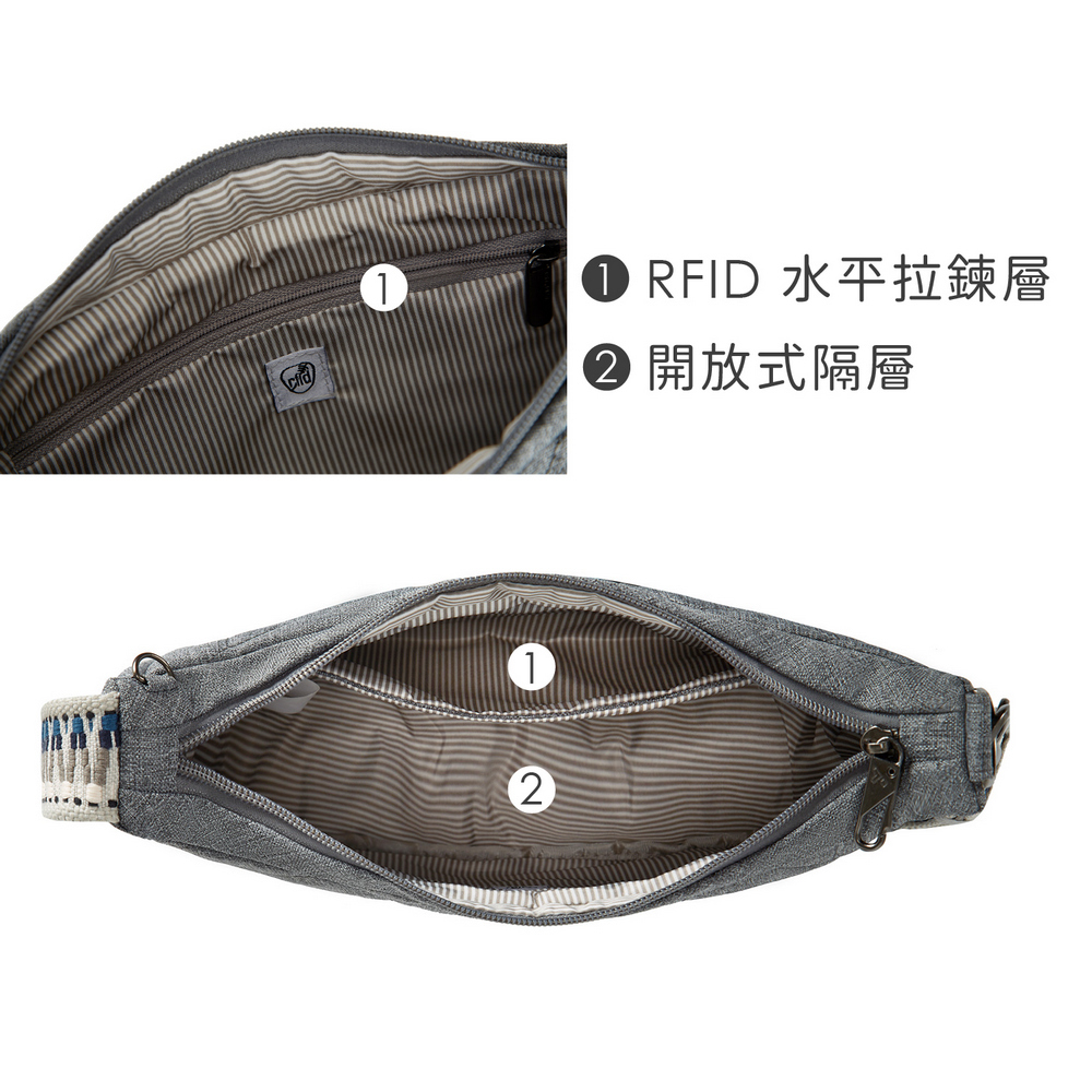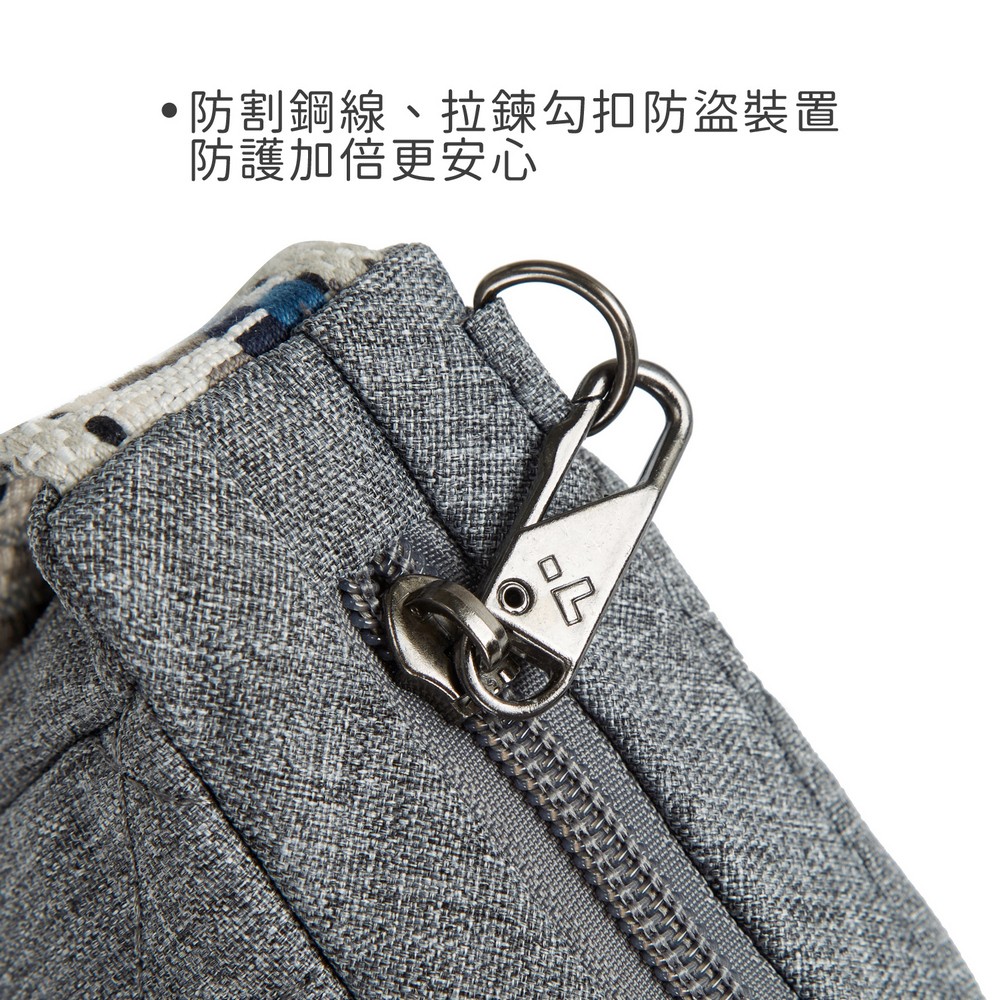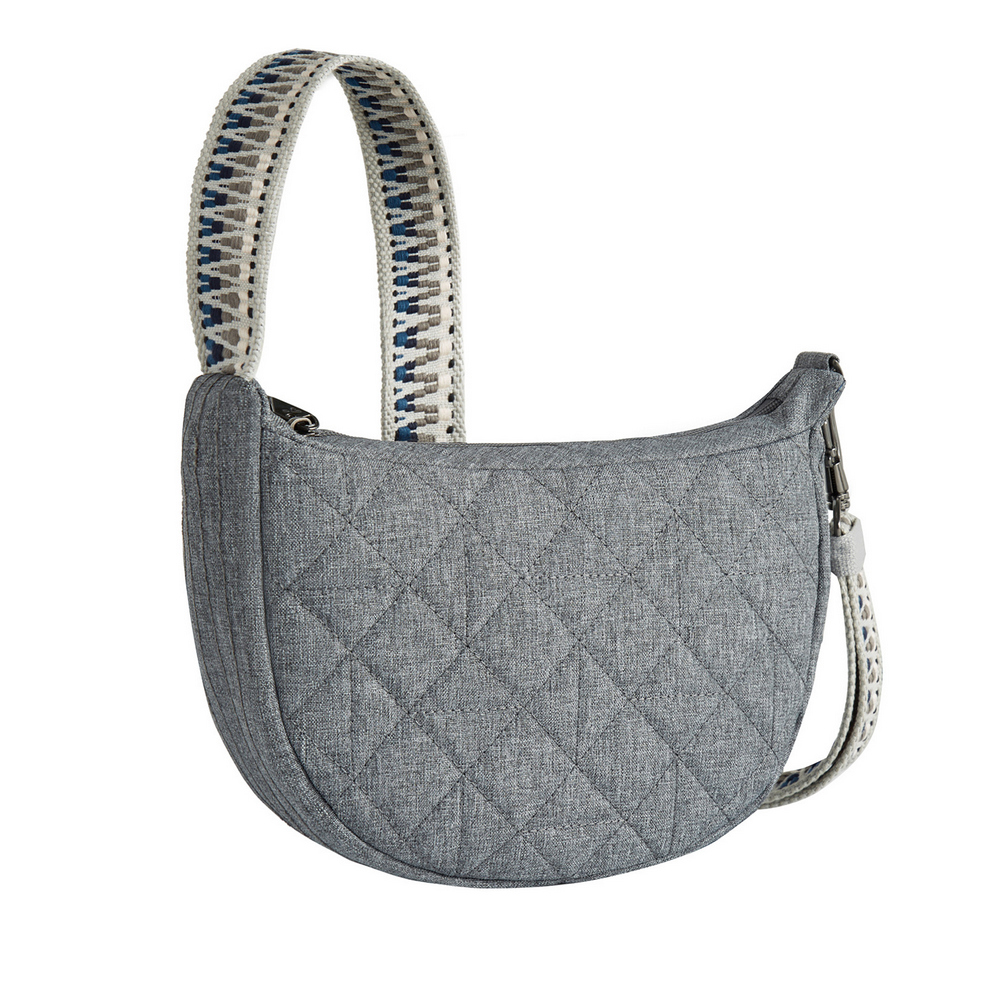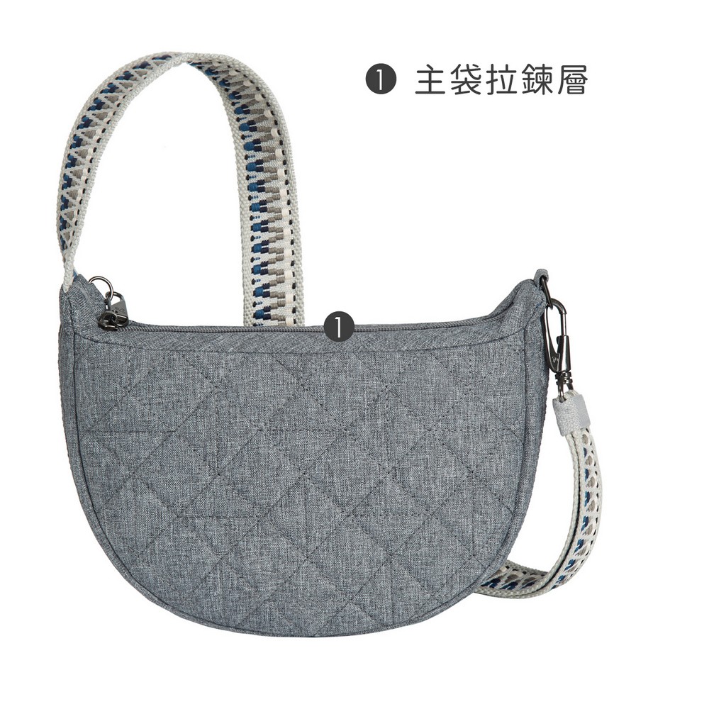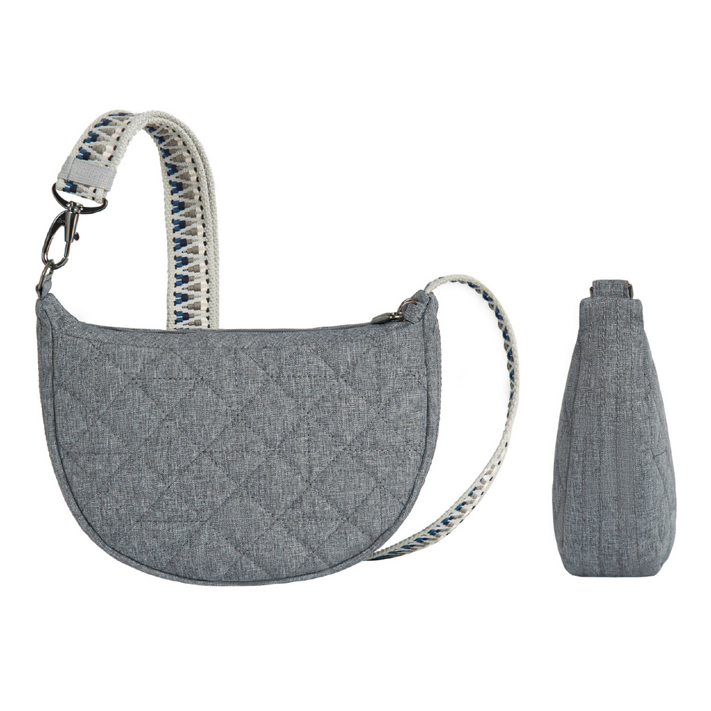 美國 TRAVELON - Boho防盜斜背彎月小包(格紋灰) / 側背包 斜肩包 背帶包 半月包 防割防搶