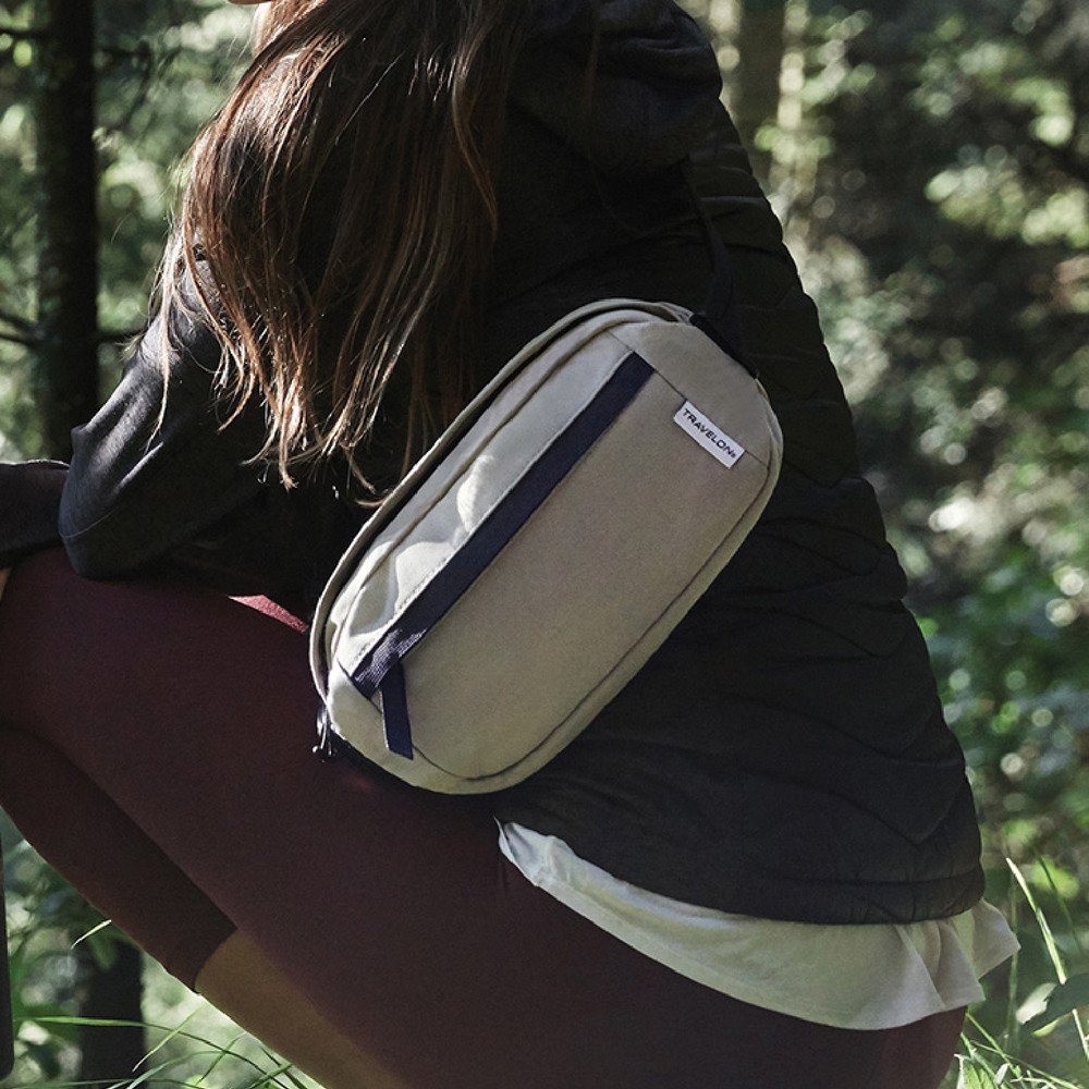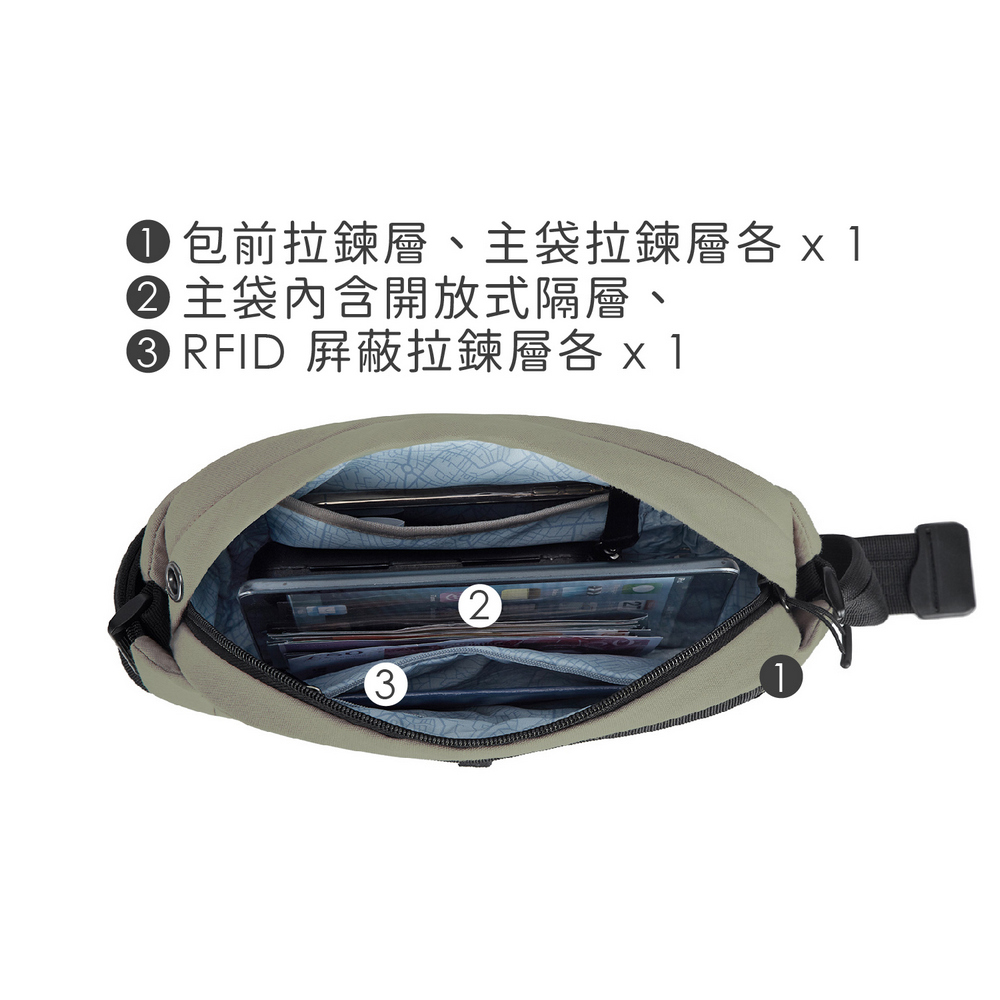 美國 TRAVELON - Origin雙層防盜斜背腰包(卡其) / 側背包 斜背包 背帶包 防割防搶
