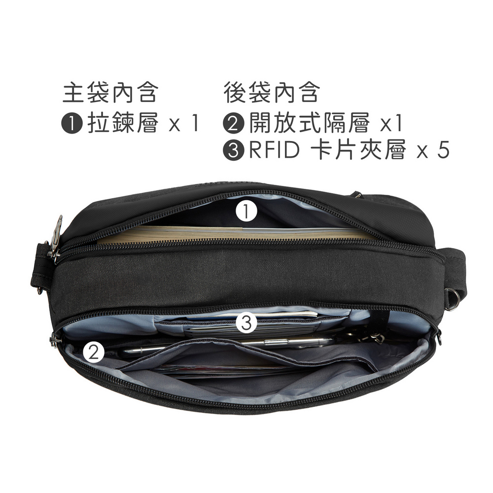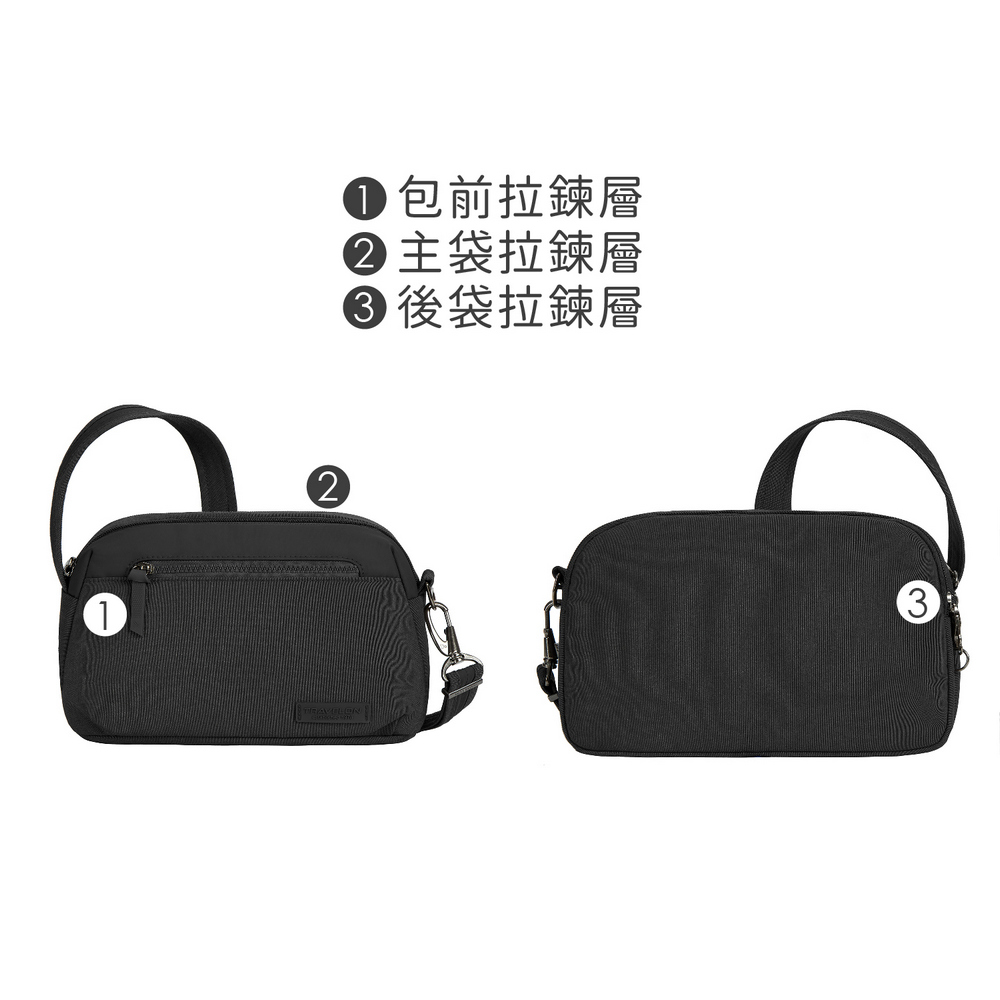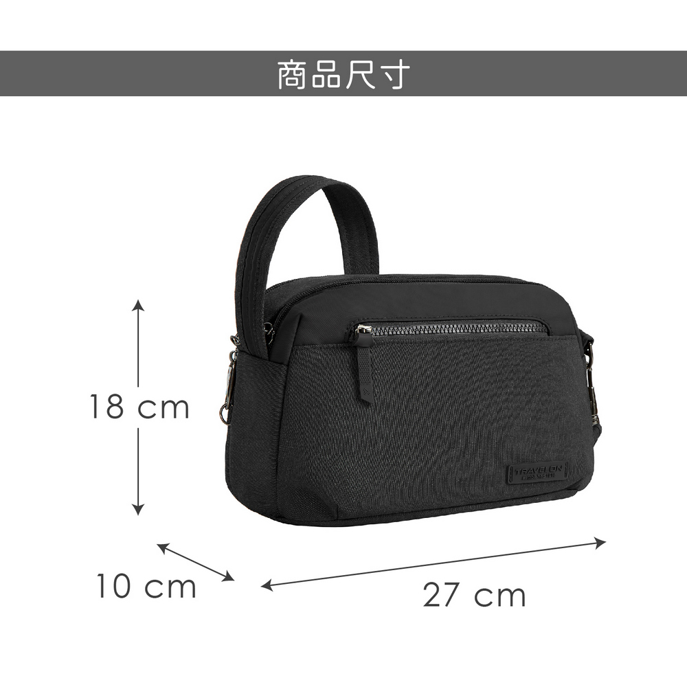 美國 TRAVELON - Metro 3層防盜隨身斜背包(黑) / 側背包 斜背包 背帶包 防割防搶