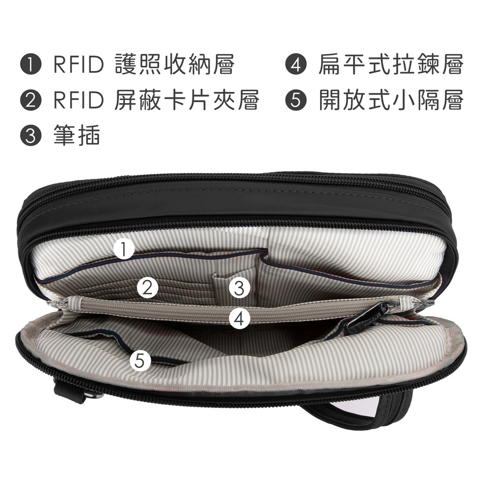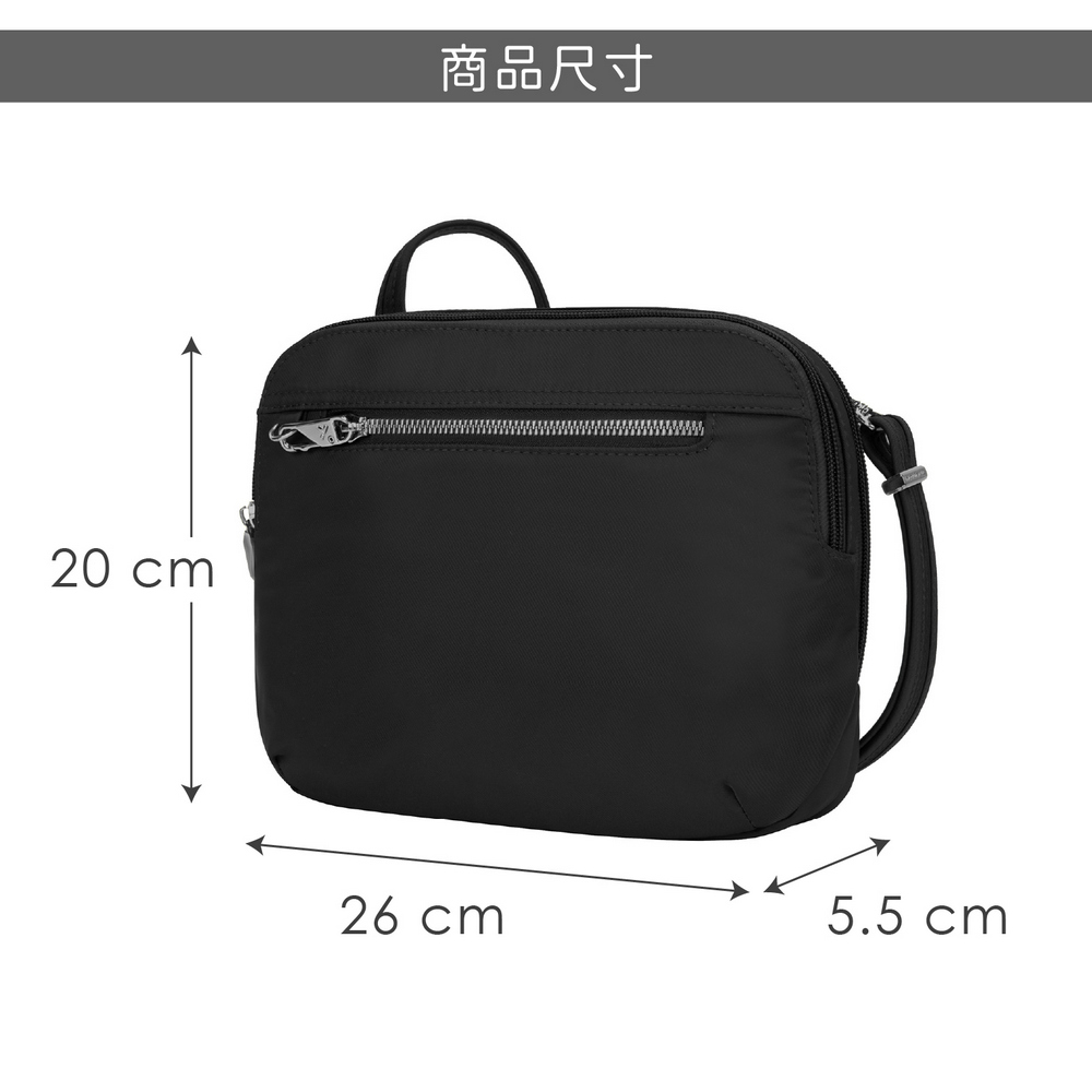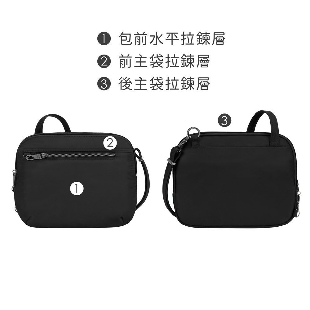 美國 TRAVELON - Tailored 3層隨身防盜斜背包(黑) / 側背包 斜背包 背帶包 防割防搶