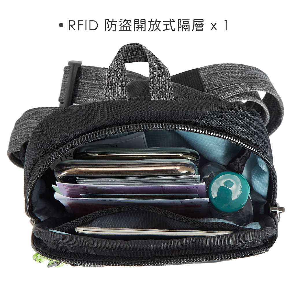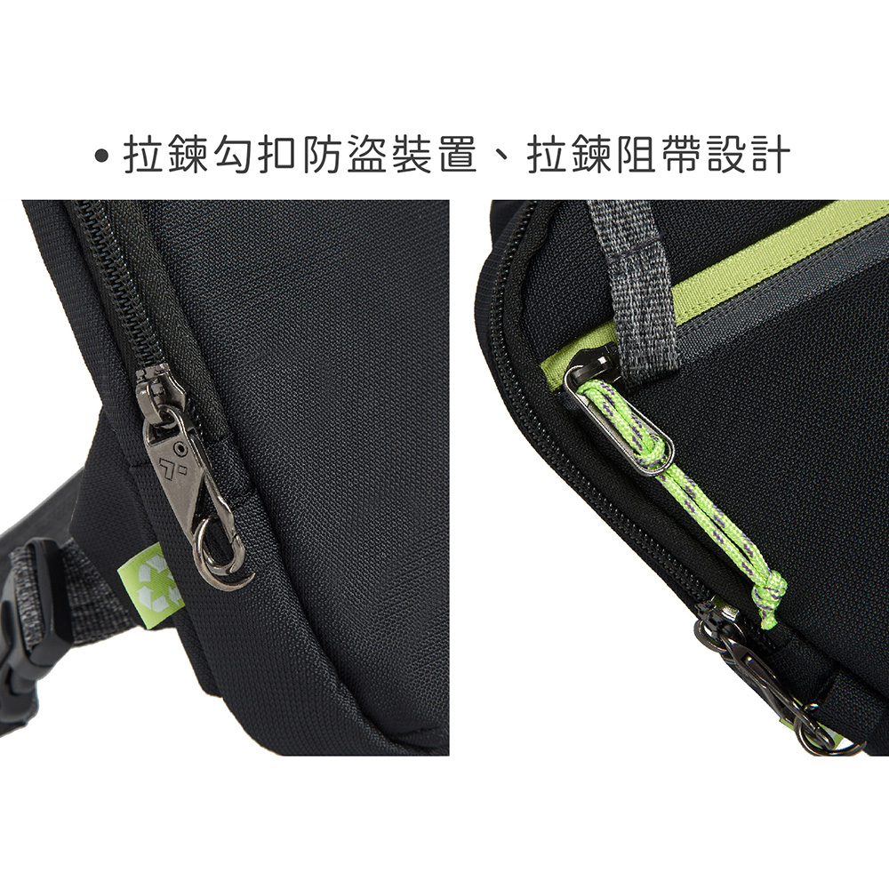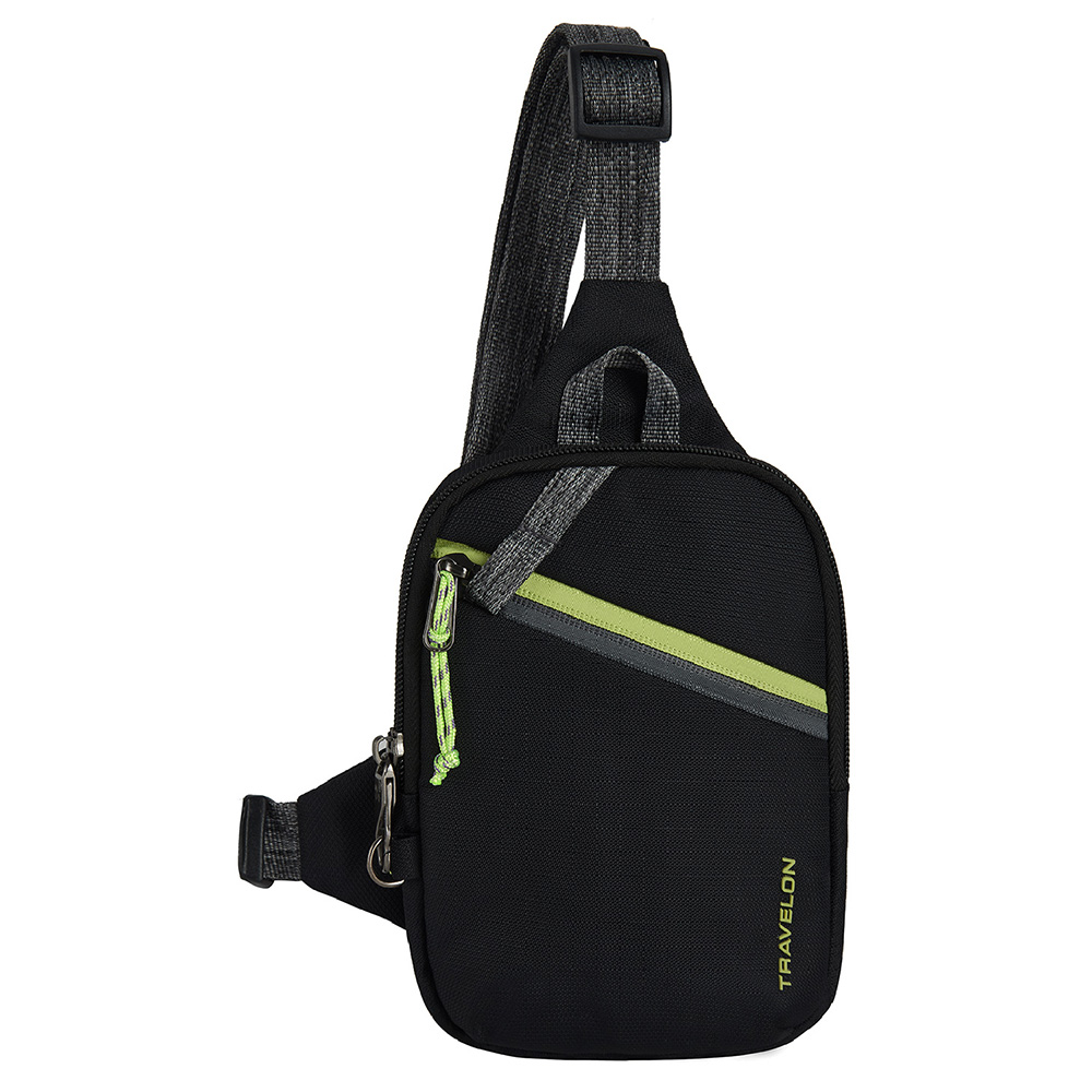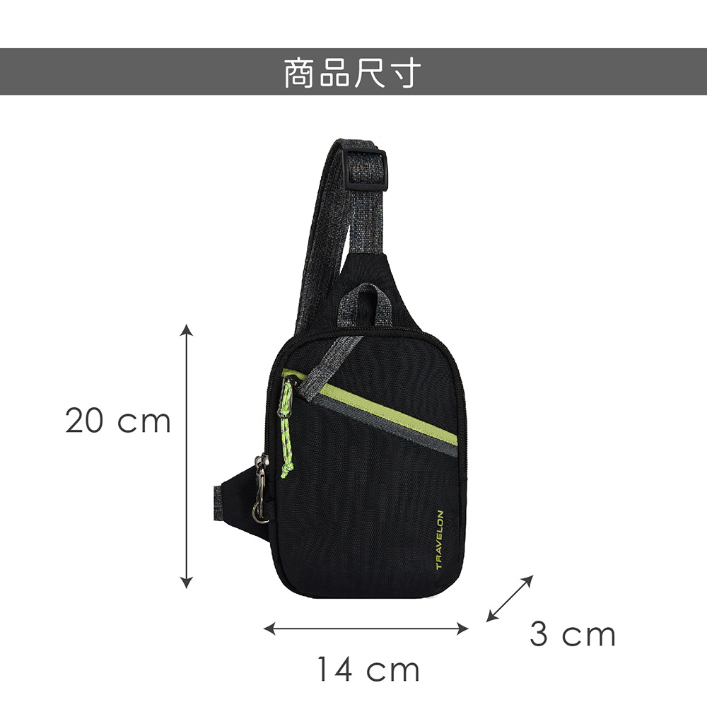 美國 TRAVELON - Greenlander防盜胸包(黑) / 側背包 斜背包 背帶包 防割防搶
