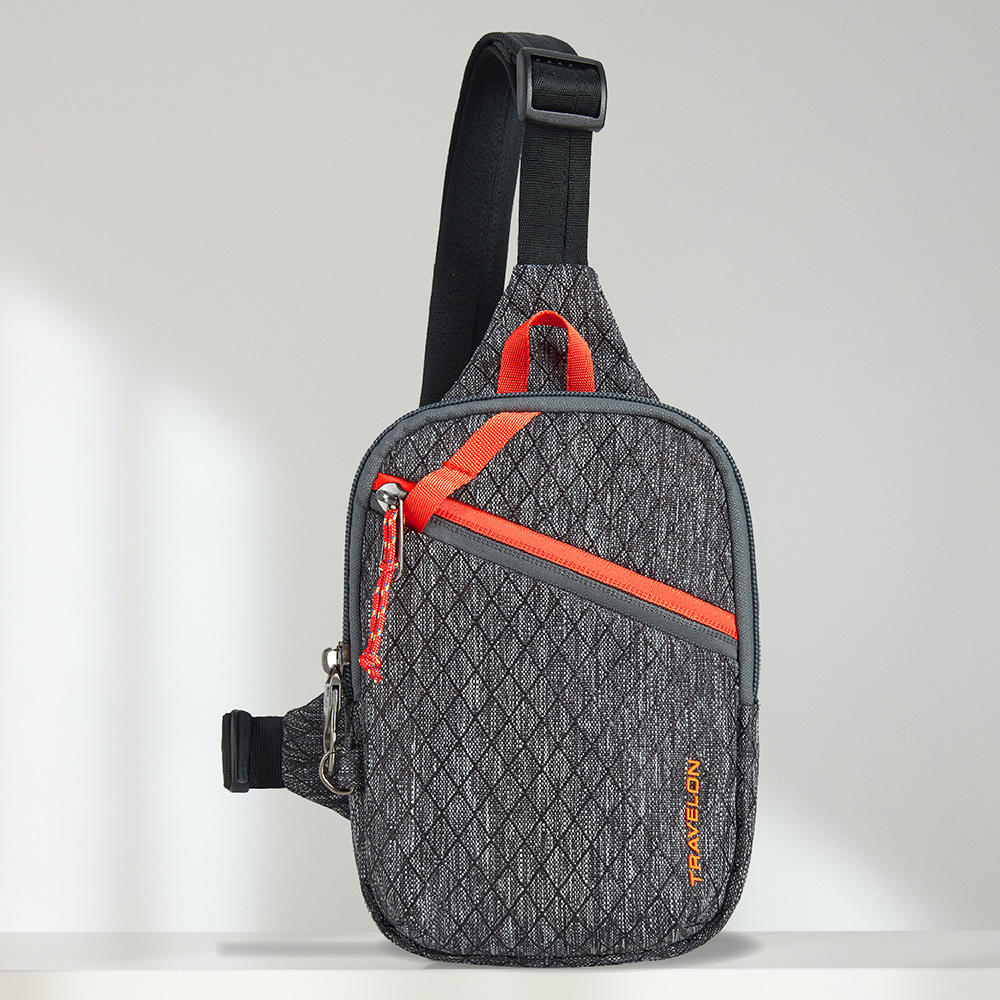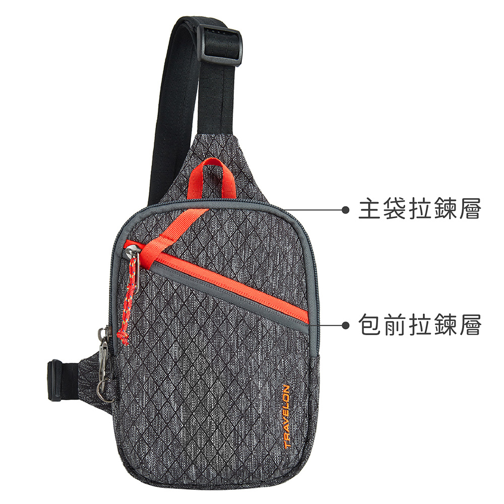 美國 TRAVELON - Greenlander防盜胸包(灰) / 側背包 斜背包 背帶包 防割防搶