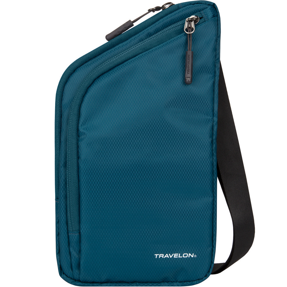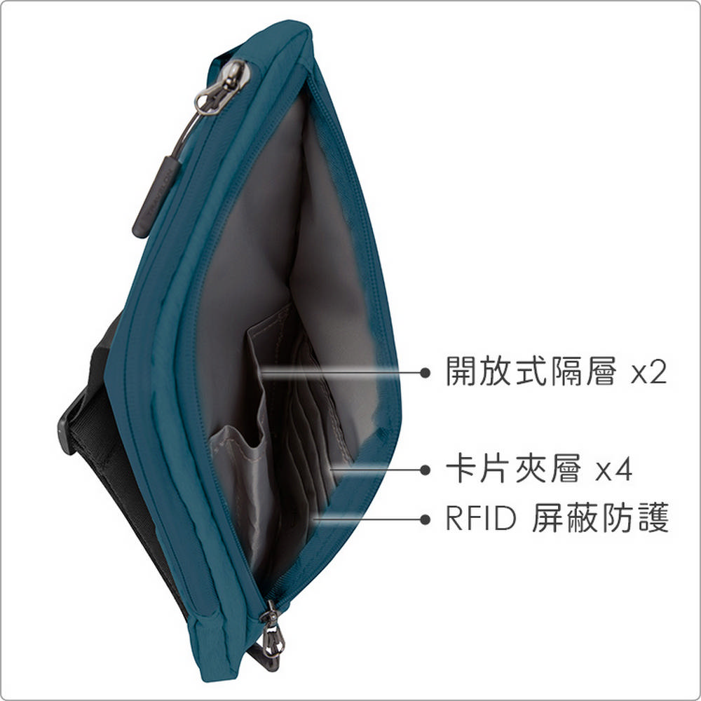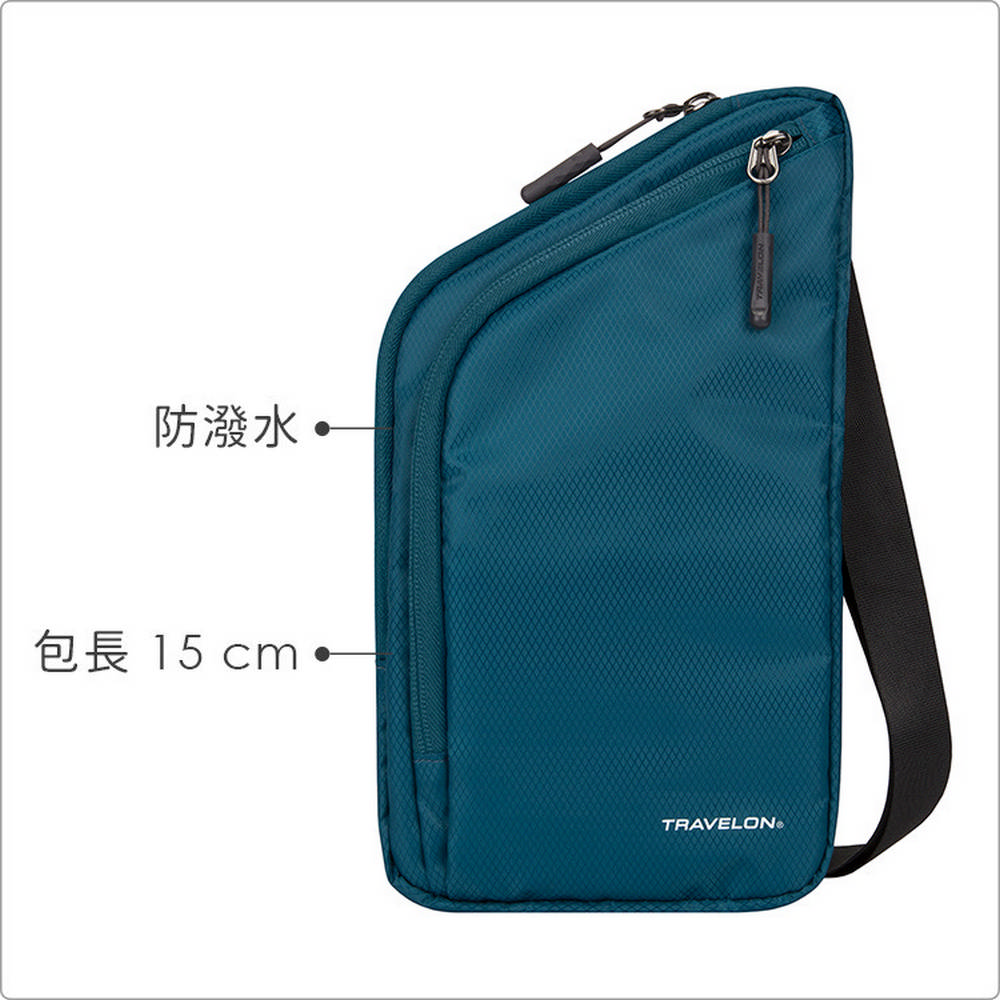 美國 TRAVELON - 輕便防盜斜背包(孔雀藍) / 側背包 斜背包 背帶包 防割防搶