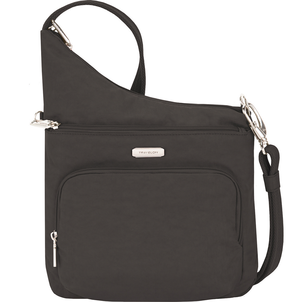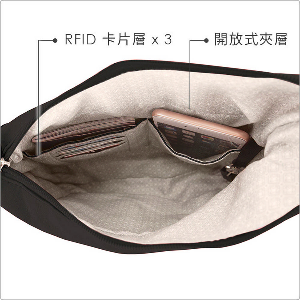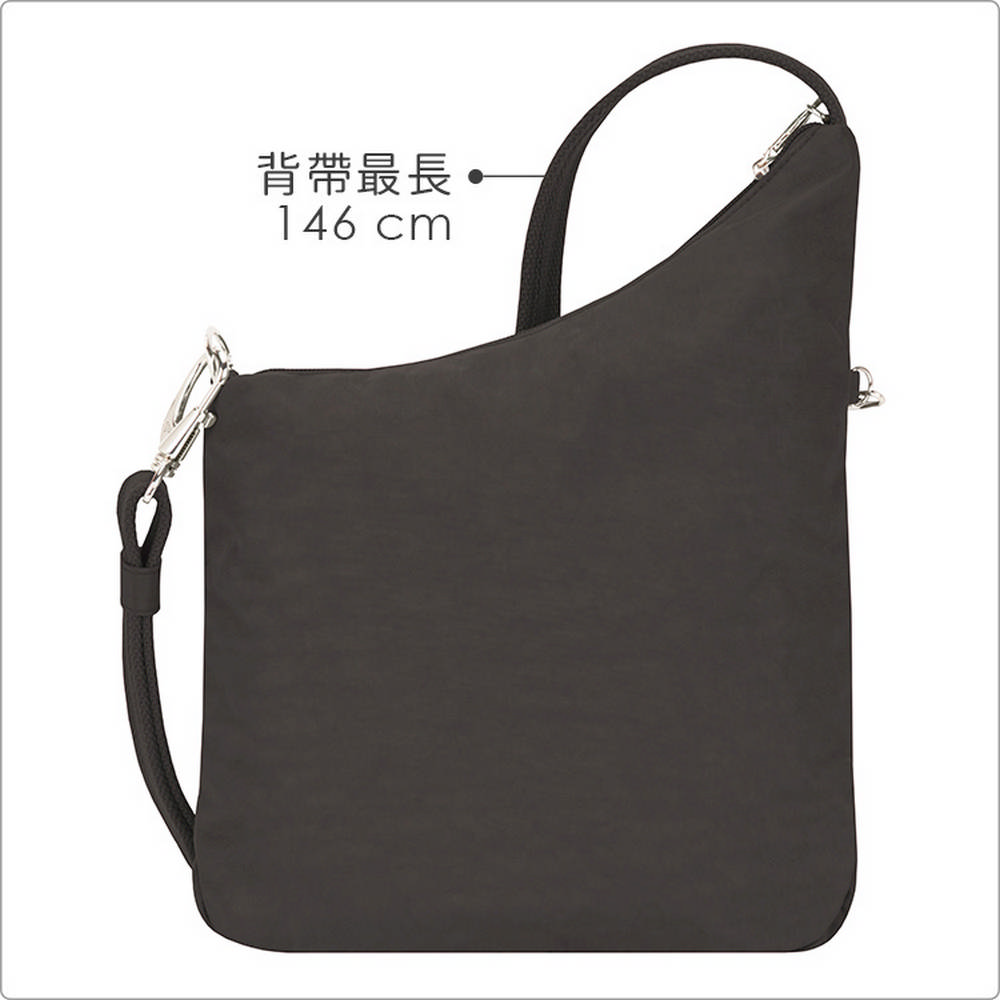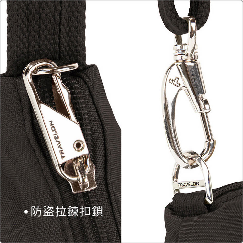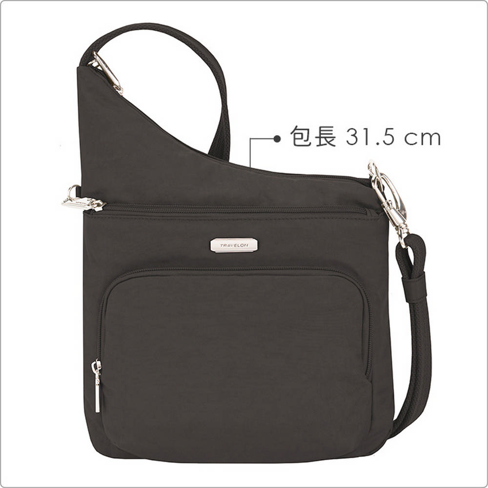 美國 TRAVELON - 簡約三層防盜斜背包(黑) / 側背包 斜背包 背帶包 防割防搶
