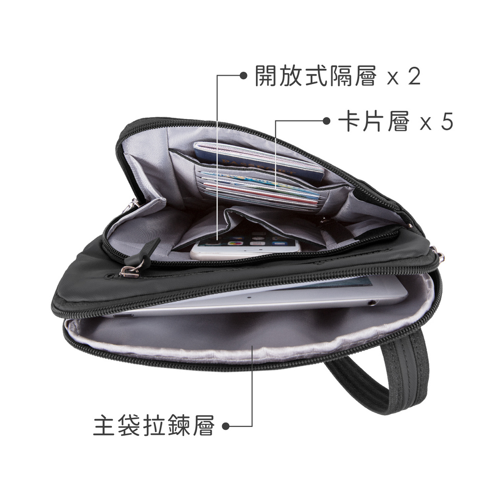 美國 TRAVELON - Metro隨身防盜斜背包(黑) / 側背包 斜背包 背帶包 防割防搶