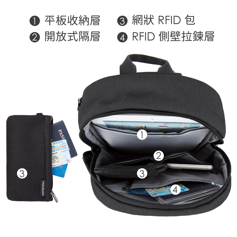 美國 TRAVELON - Metro單肩防盜斜背包(黑) / 側背包 斜背包 背帶包 防割防搶