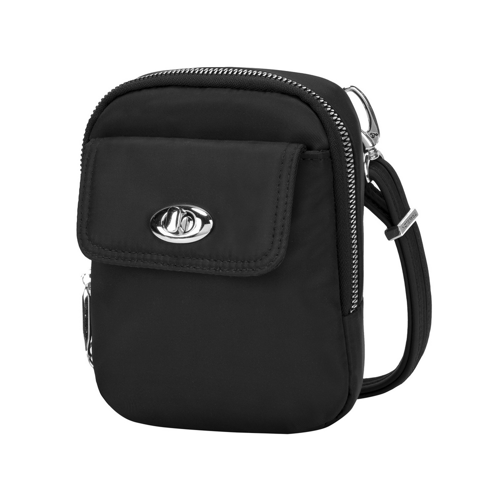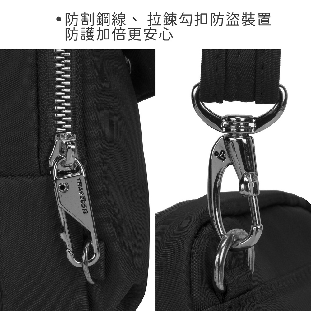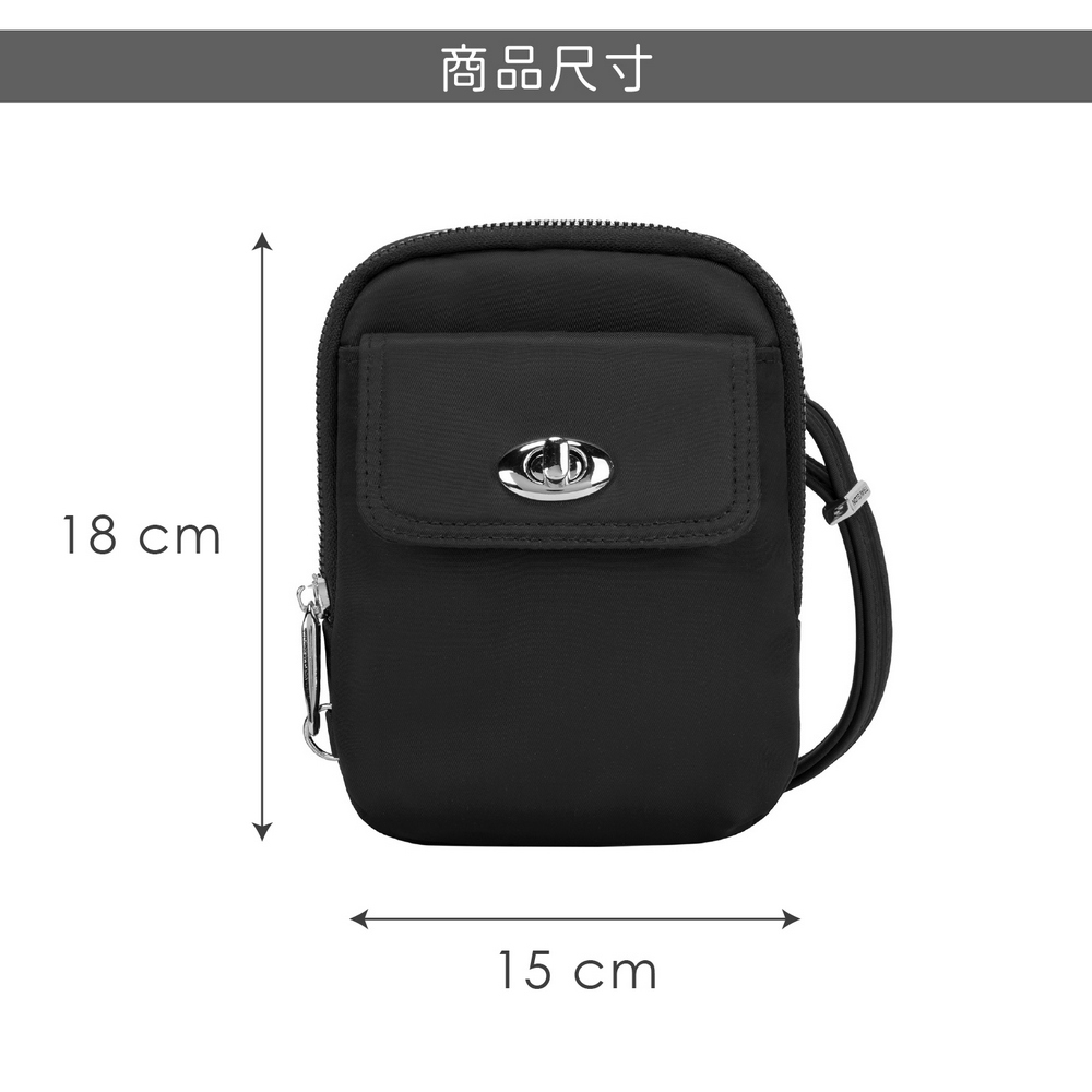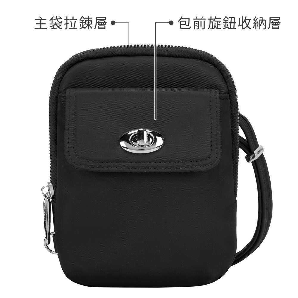 美國 TRAVELON - Tailored防盜斜背手機包(黑) / 側背包 斜背包 背帶包 防割防搶