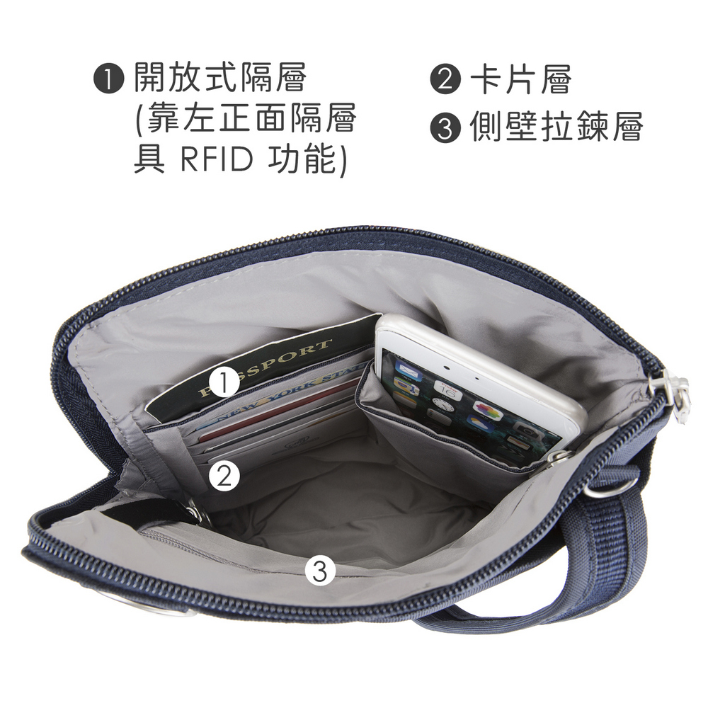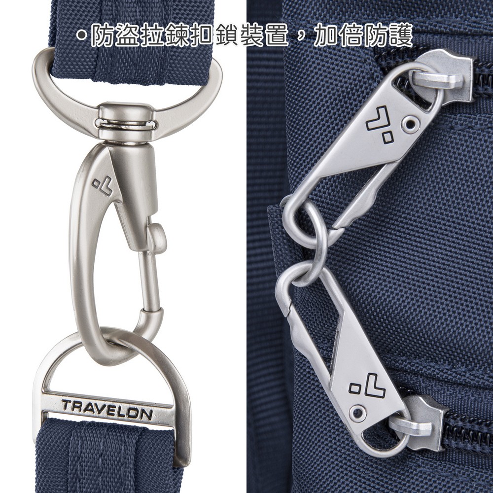 美國 TRAVELON - 四層防盜斜背包(藍) / 側背包 斜背包 背帶包 防割防搶