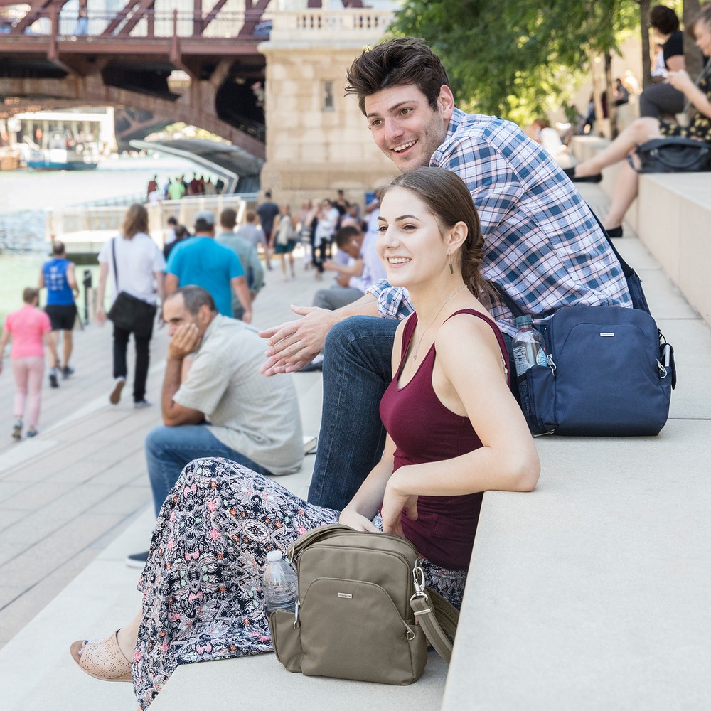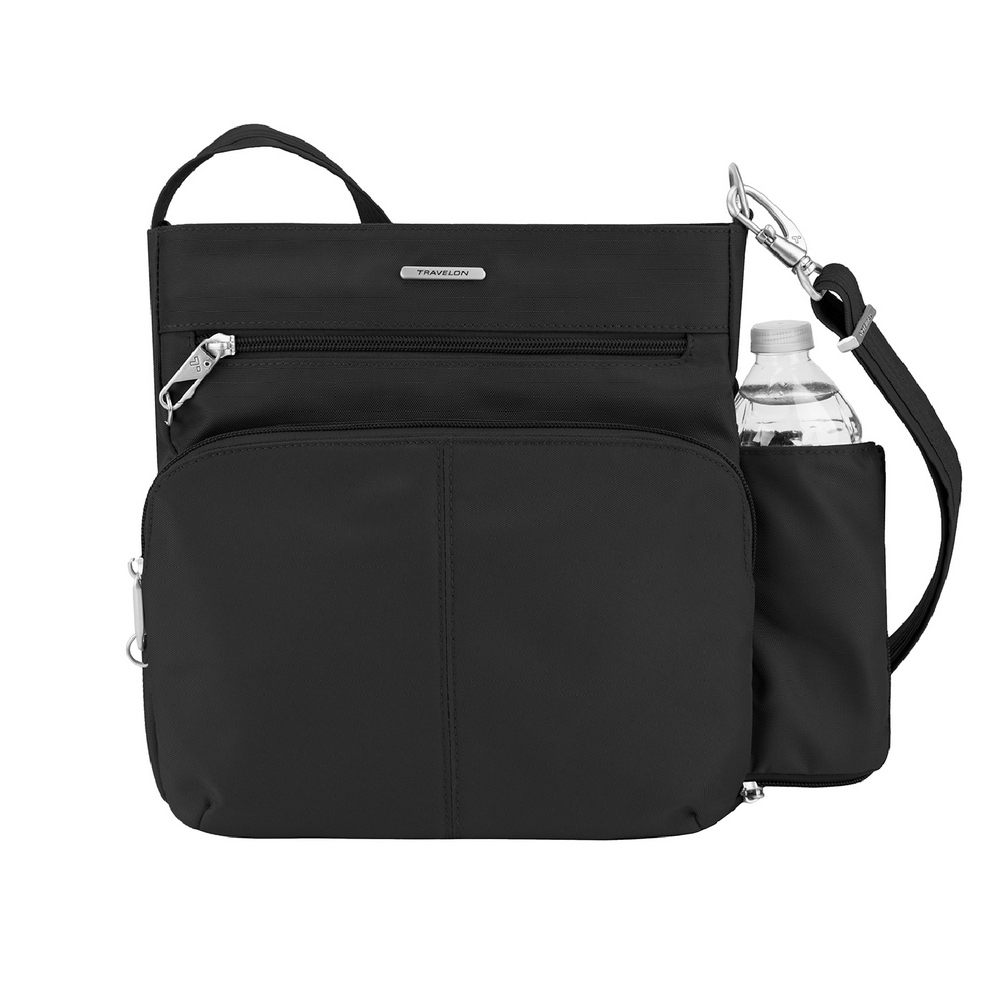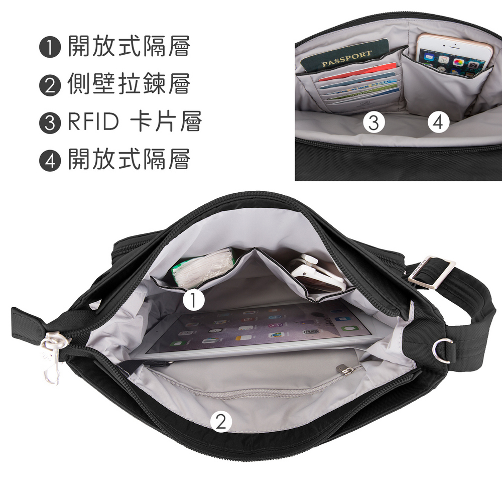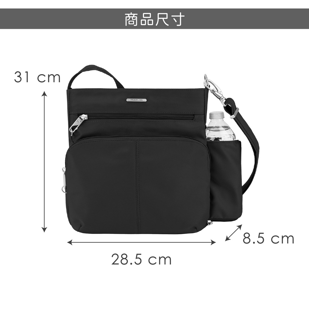 美國 TRAVELON - Classic四層防盜斜背包(黑) / 側背包 斜背包 背帶包 防割防搶