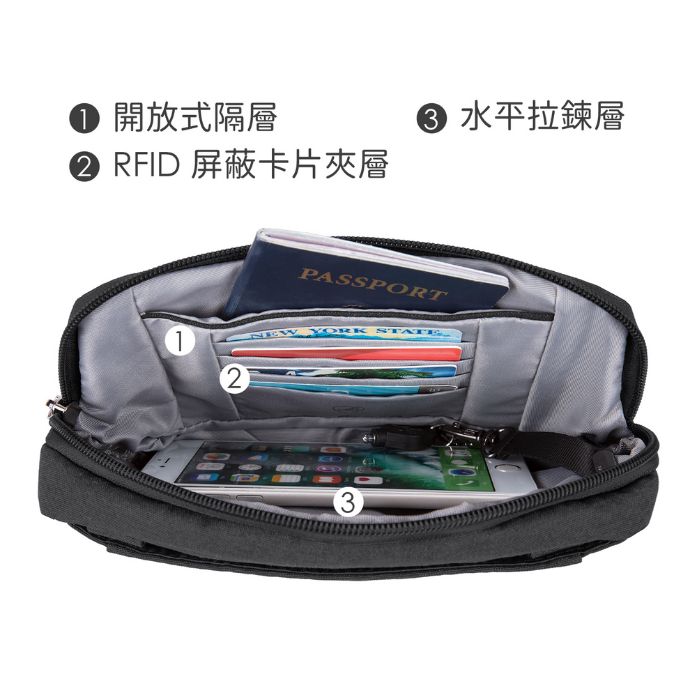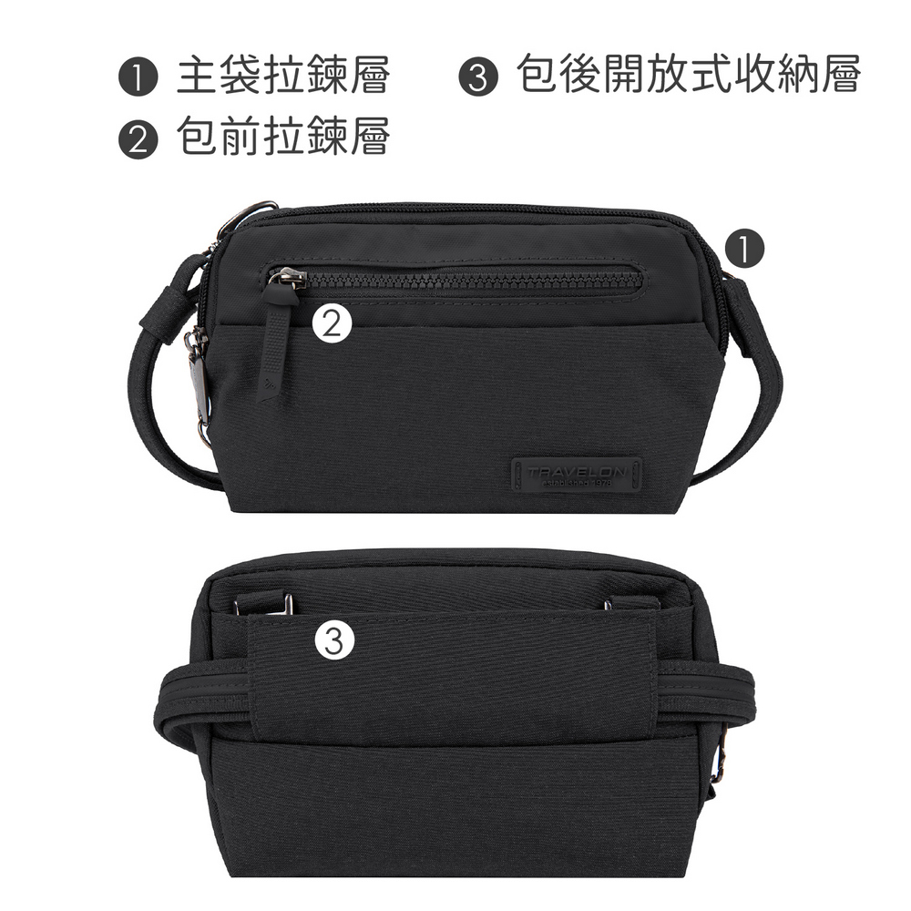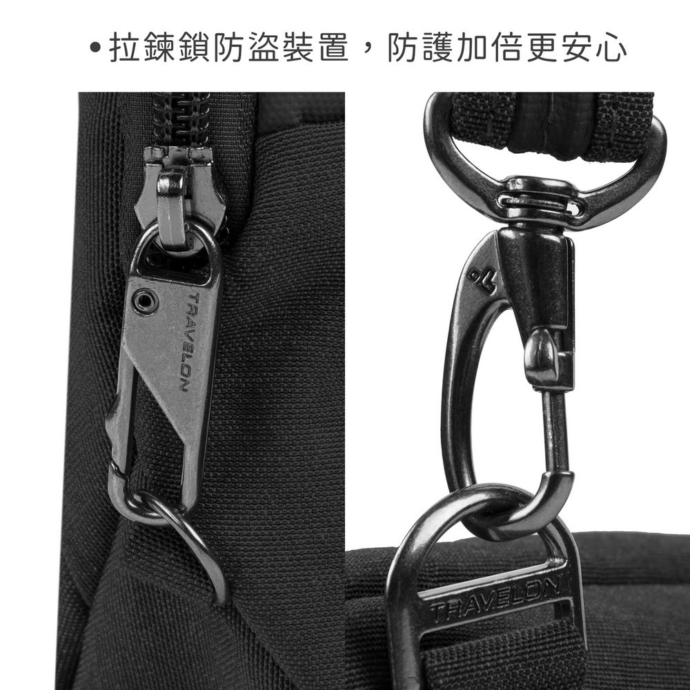 美國 TRAVELON - metro防盜斜背腰包(黑) / 側背包 斜背包 背帶包 防割防搶